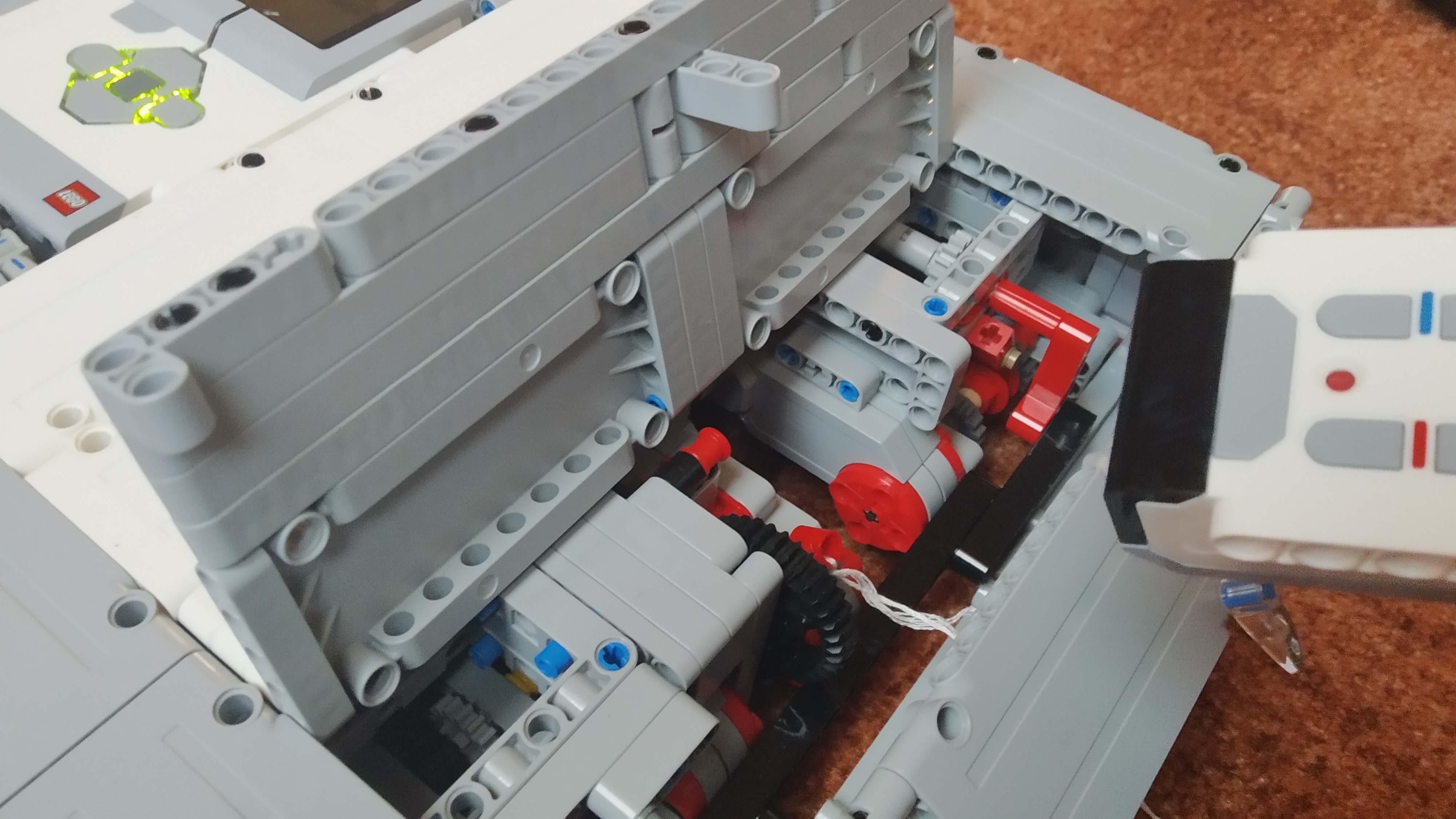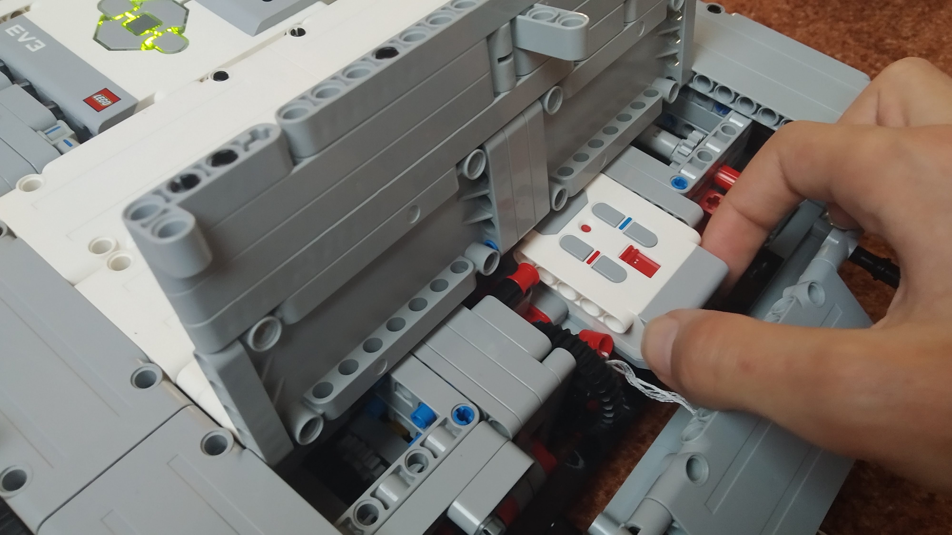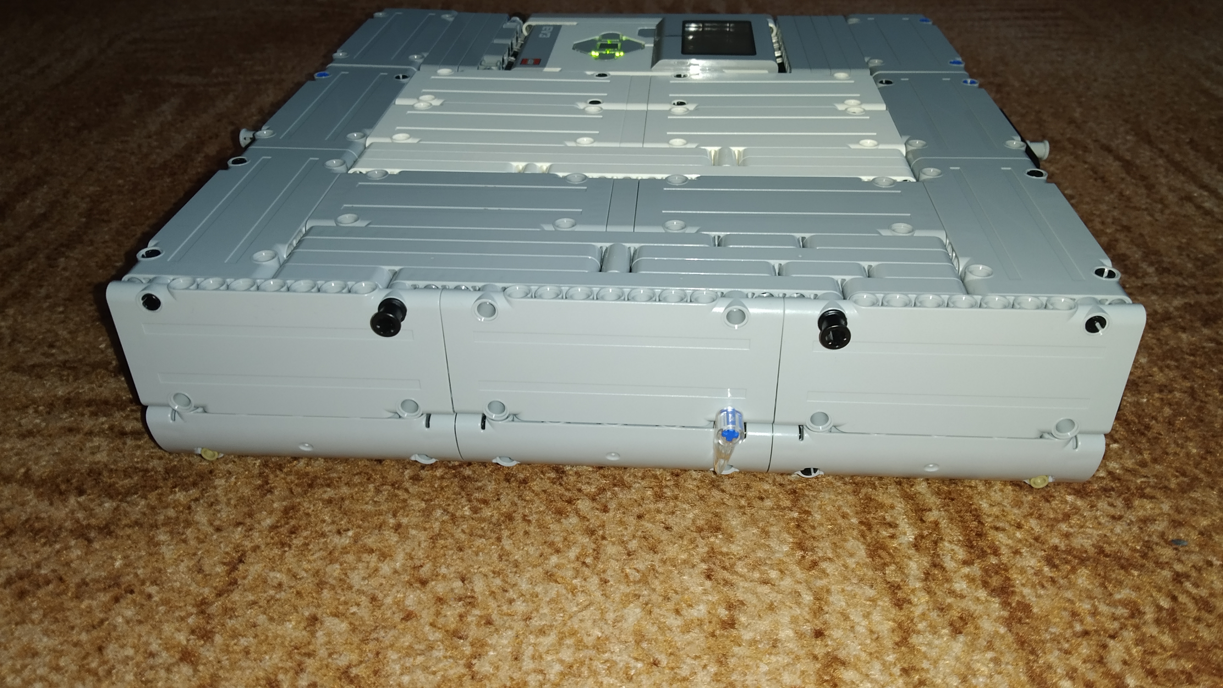 Dobrý deň, sme tím DonBot a toto je náše riešenie na úlohu Ratrak.Ratrak sa pohybuje pomocou dvoch gumených pásov, preskakovaniu pri vyššej záťaži zabraňuje pruženie s tromi nastaviteľnými úrovňami. Telo robota je veľmi široké a dlhé a pri malej výške je ťažisko v ideálnej polohe pre čo najlepšiu stabilitu na svahu. O pohon sa starajú dva veľké motory, a taktiež automatická dvojstupňová prevodovka. Prevody sú 9:1 (slabší ale rýchlejší) a 15:1 (silnejší ale pomalší), prehadzovanie riadi jeden stredný motor. Motorom na pohyb pomáha aj navijak s menším prevodom, poháňaný taktiež jedným veľkým motorom. Medzi ľavým motorom a navijakom je miesto pre diaľkové ovládanie, ktorým je možné robota ovládať. Prítomný je otvor pre navijak a tiež dvierka na ukrytie ovládača. V zadnej časti robota je prijímač (infračervený senzor) a dvierka na pohodlnejšie nabíjanie. Informácie o náklone poskytujú 2 gyro senzory.Posielame 2 verzie programu: starší program nedokázala EV3 kocka dobre spracovať, preto sme ho museli celý prerobiť. Tento starší program zobrazoval údaje o náklone (v novom programe sa už gyrosenzory nepoužívajú), rýchlosti motorov, prevodovom stupni a polohe navijaka, mal dokonca aj pohyblivý nadpis :) Podarilo sa nám ho raz spustiť, potom to však už na druhý deň nebolo možné :(