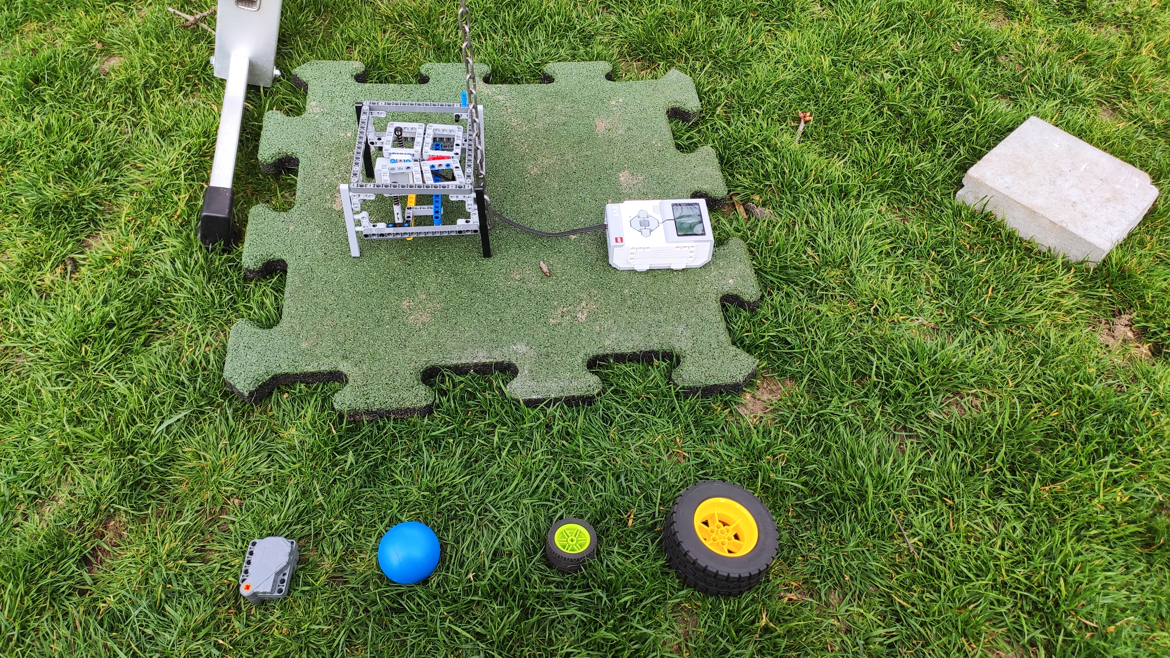 Na meranie sme skúšali použiť 2 farebné senzory, potom 2 ultrazvukové senzory, touch senzor a gyro senzor. Najlepšia sa nám ukázala kombinácia farebný senzor a gyro senzor.