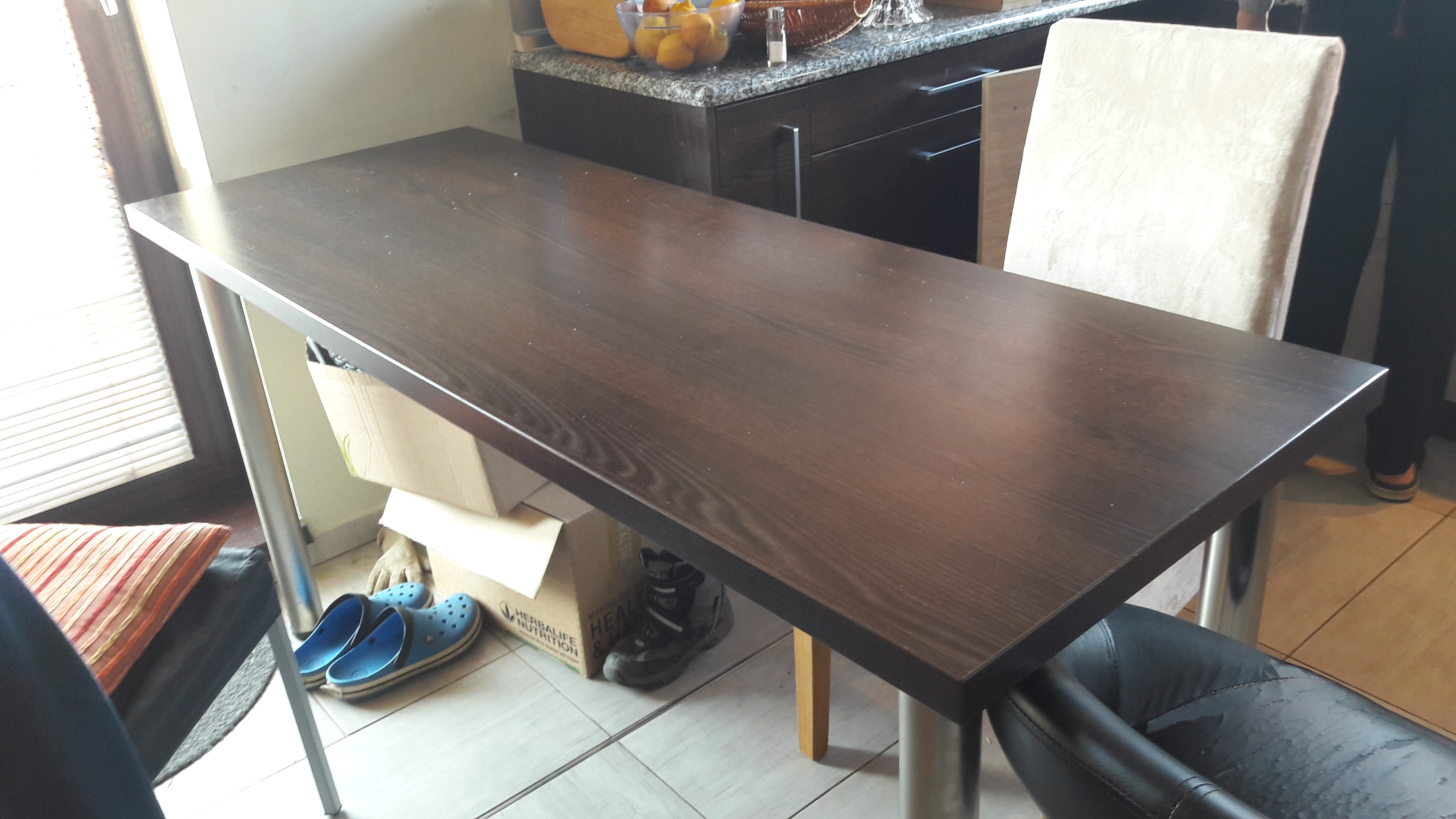 5. Zarovnáme sa na kraji a zopakujeme kroky 2, 3, 4 a týmto zmeriame ďalší rozmer stola.