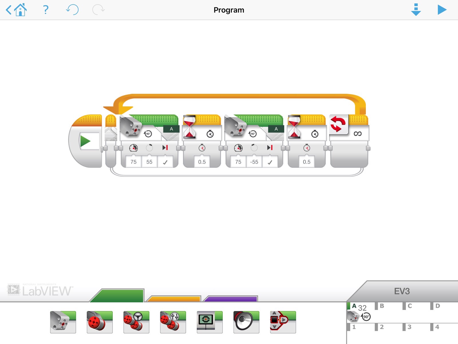 V programe sa striedajú bloky motorov: large motor posunie a malý motor otočí.