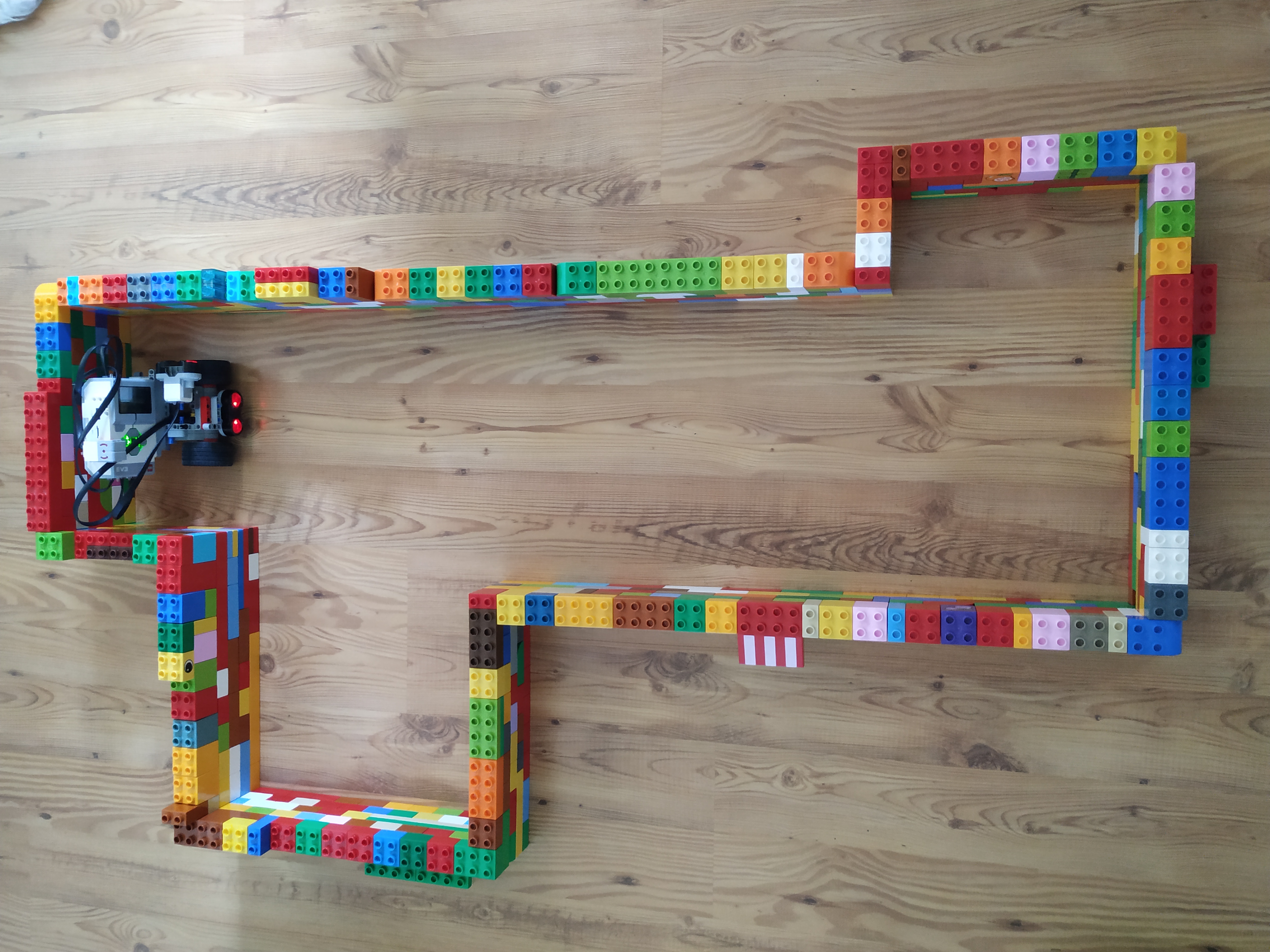 Nas mapovaci robot má dva large servo motory na pohyb vpred, dva ultrazvukové senzory na snímanie vzdialeností od dvoch stien a jeden infračervený senzor (už sme nemali viac ultrazvukových senzorov) aby robot nenarazil do steny pred sebou.