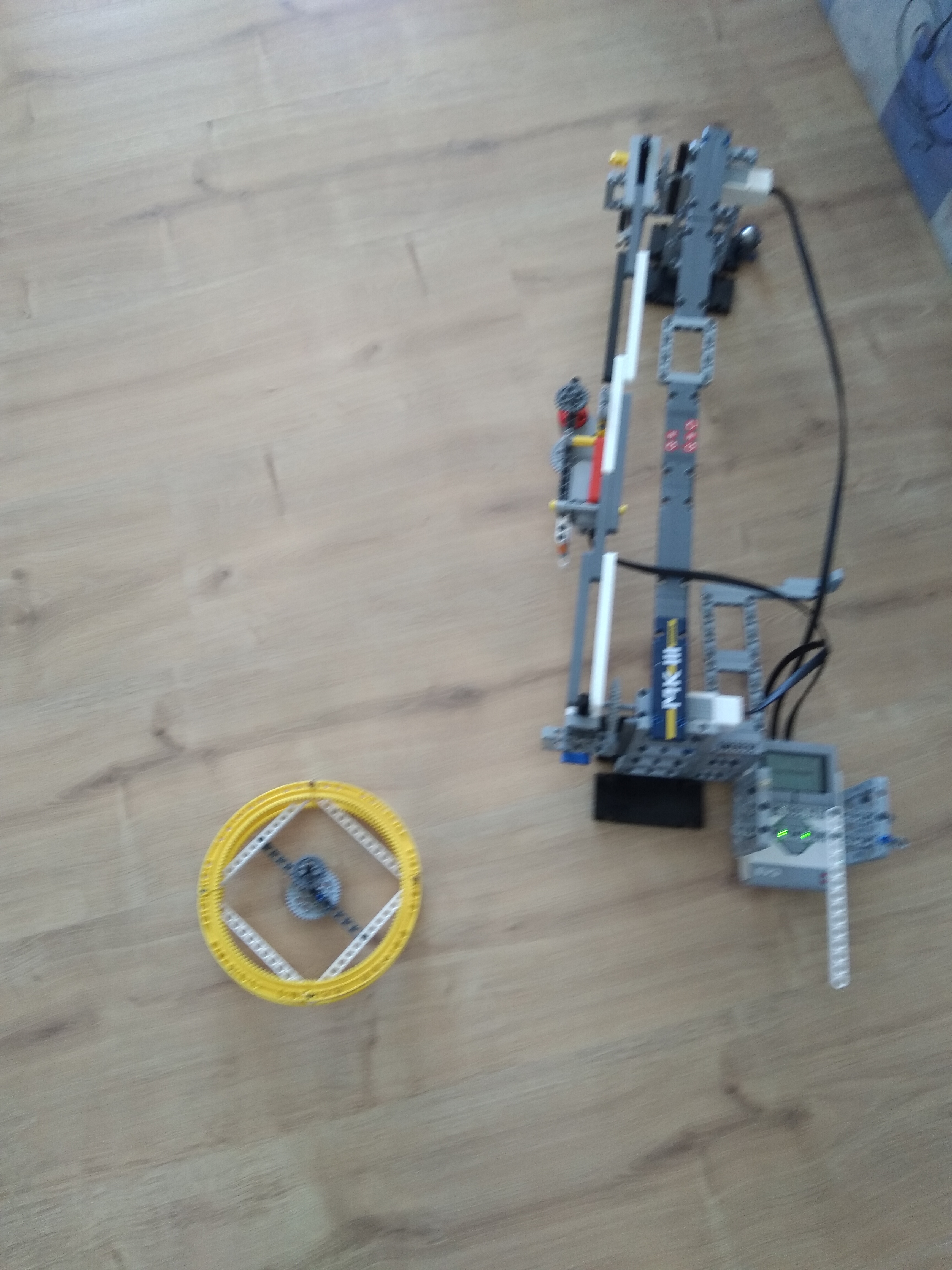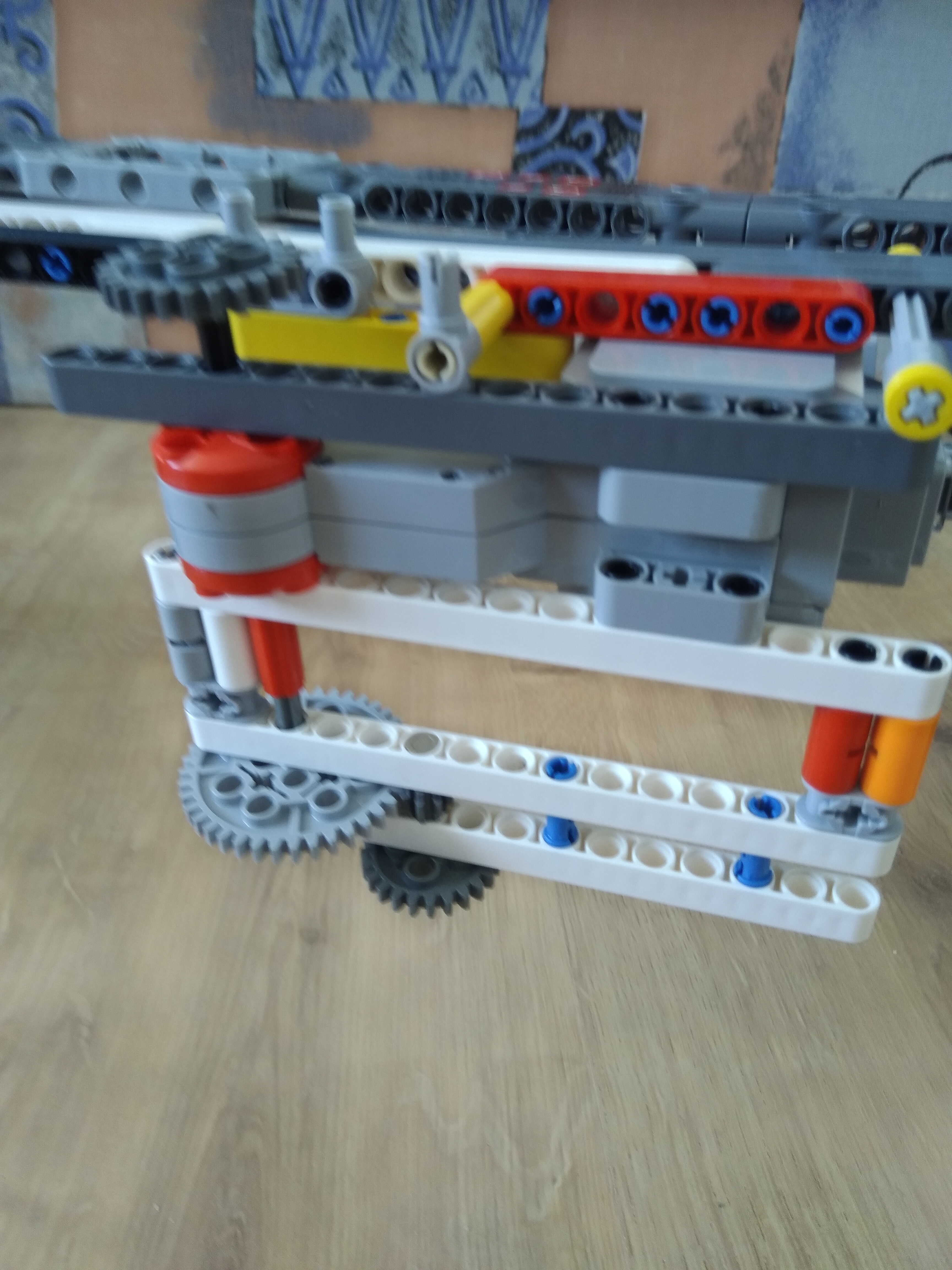 - malý motor ktorý bol upevnený na robotovi roztočil pomocou zrýchleného prevodu koleso a veľký motor medzi tým pohol piest a tak robot vyhodil jedno koliesko z prevodu takže koleso bolo nezávislé od motora.