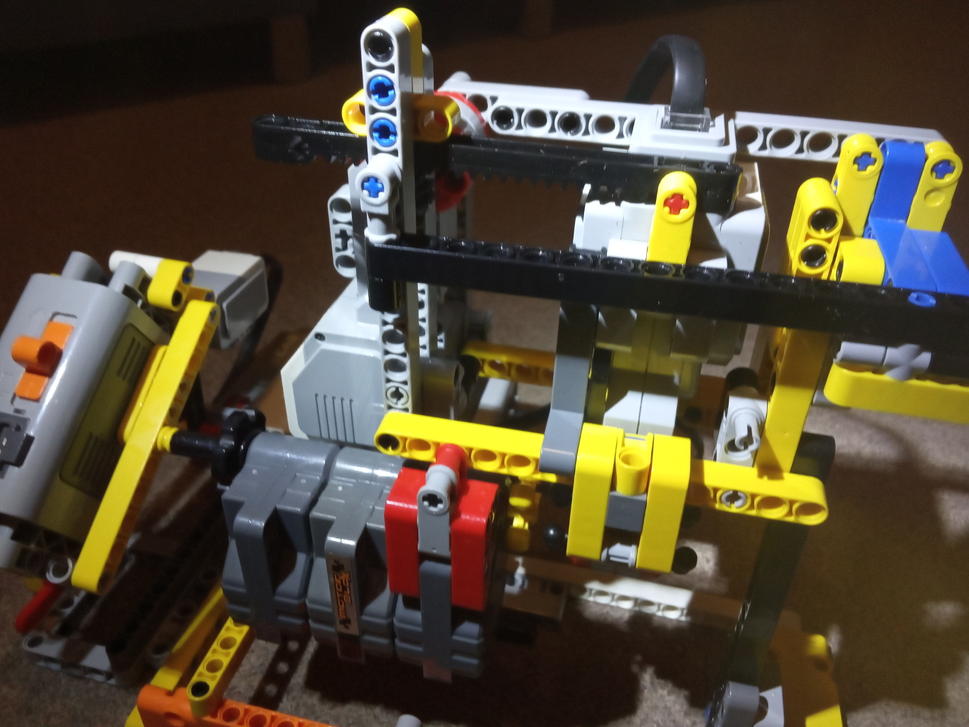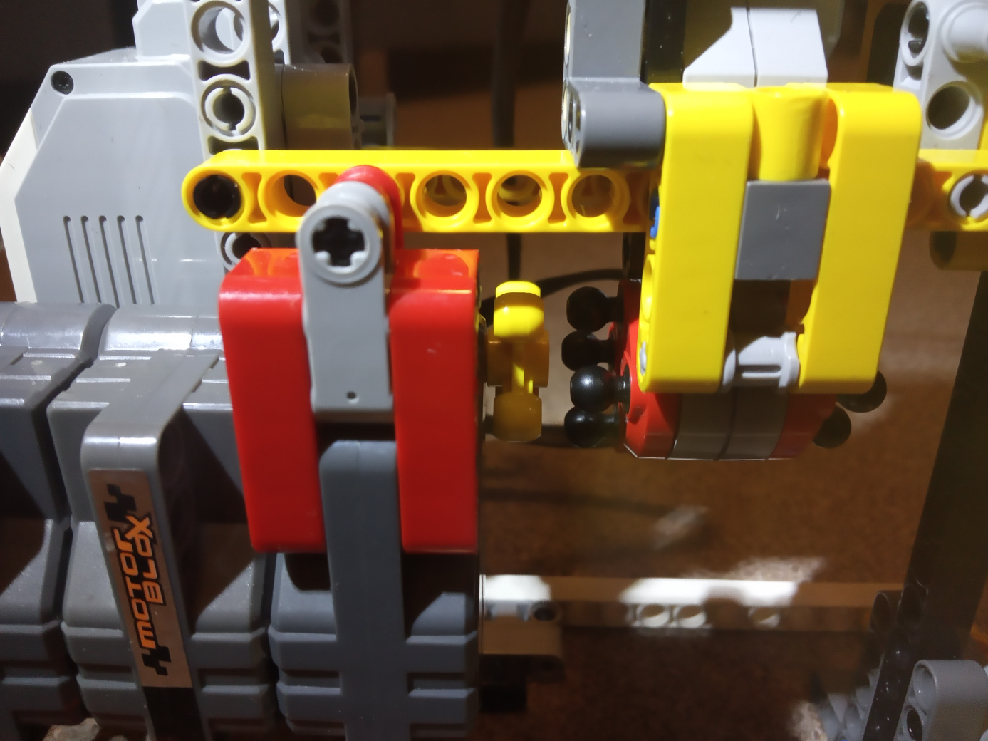 1. Veľmi pekný mechanizmus, aj celkom vtipný nápad s tým objektom na roztočenie. Ale vidíte, že nie je celkom rovnomerný a preto sa ani nevydrží dlho točiť. 2. Za úlohu Zotrvačník získavate 2,8b. Váš zotrvačník nevydržal rotovať najdlhšie, ale páčia sa mi detailné fotky robota. Súčasťou riešenia nebola fotka tímu. 3. Určite ste svoj model vylepšovali. Dalo by sa pohrať aj s optimálnejším vyváženim telesa :) 4. Máš pravdu, žel LEGOvý pružinový motor nie je zotrvačník no a veď preto ani dosiahnutý čas nie je nijak výrazný. Ale aj tak je to pekná práca, ďakujeme!