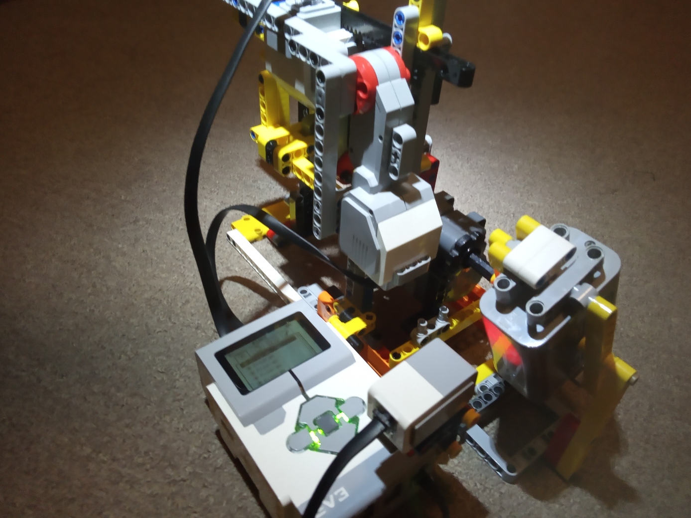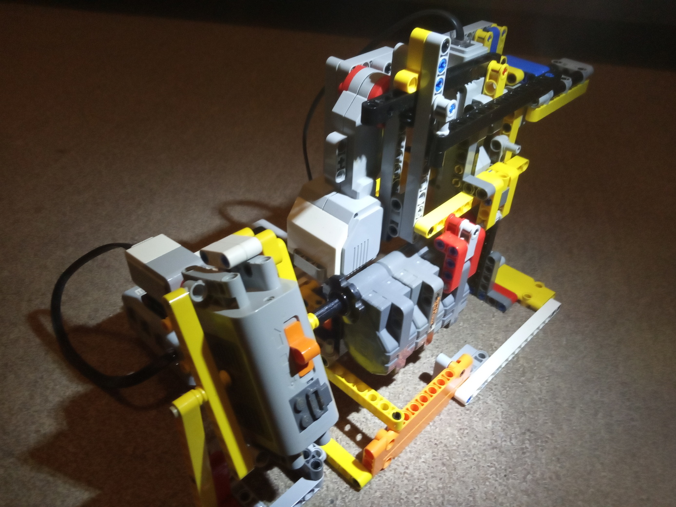 Motor C pritlaci zdroj, ktory natiahne legovy pruzinovy motorcek, ktory nie je zotrvacnik a nasledne sa odpoji. Timer bezi od chvile odpojenia a color senzor meria cas otocky a ked otocka trva viac ako dve sekundy timer sa zastavy a zobrazi na displaji celkovy cas. Robot vyuziva gulickove piny a gulickove kolieska je to velmi efektivne.