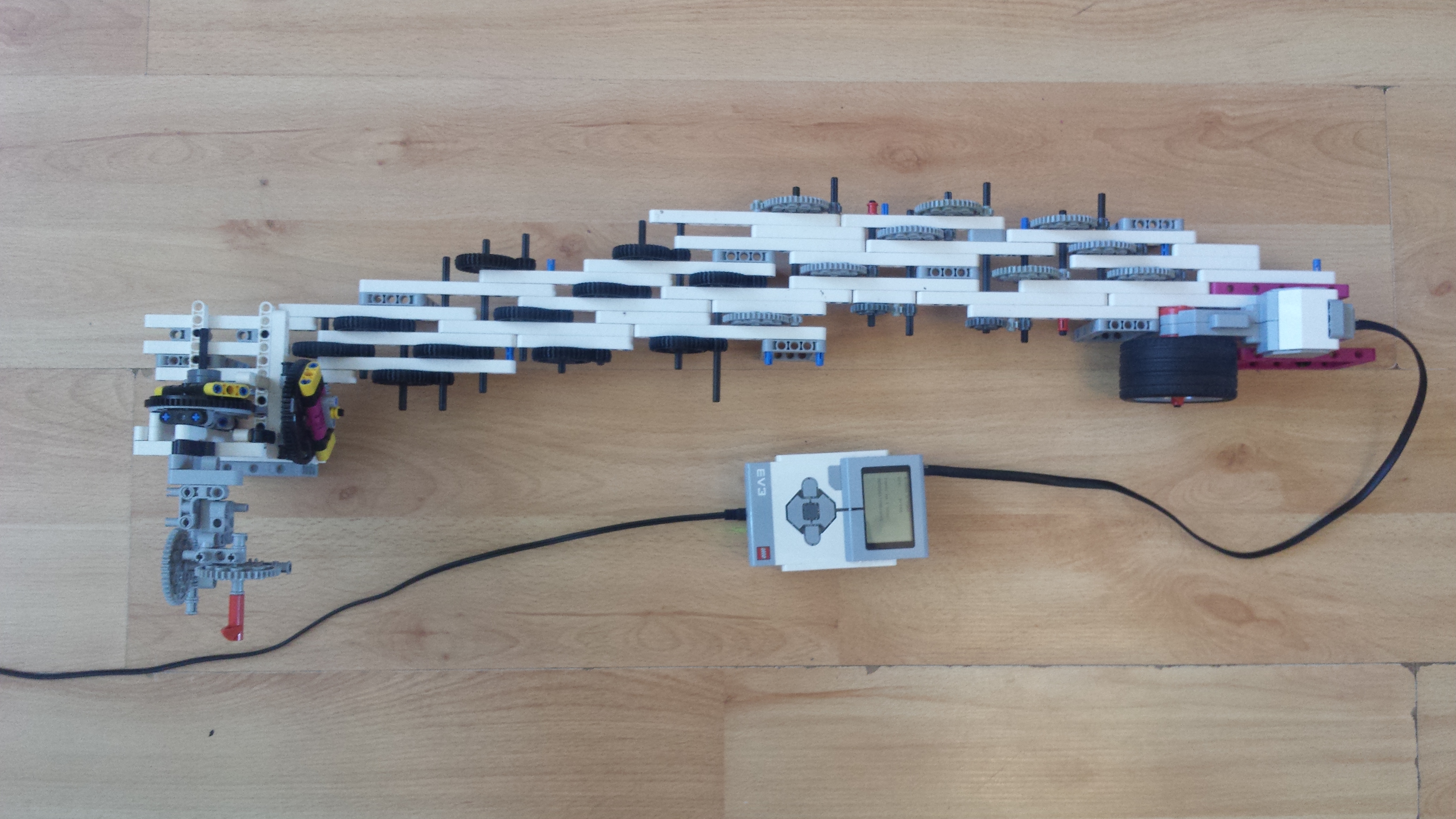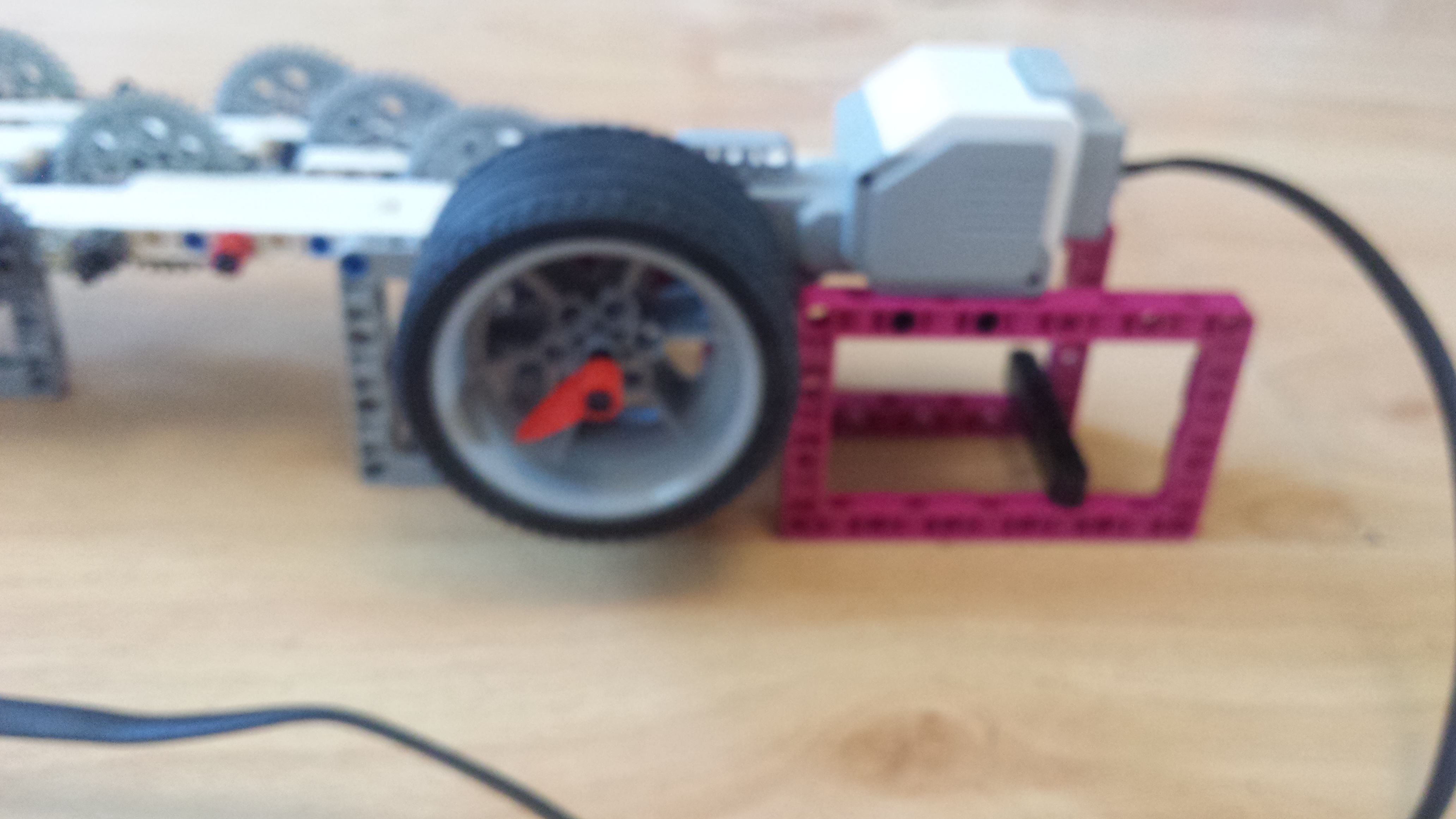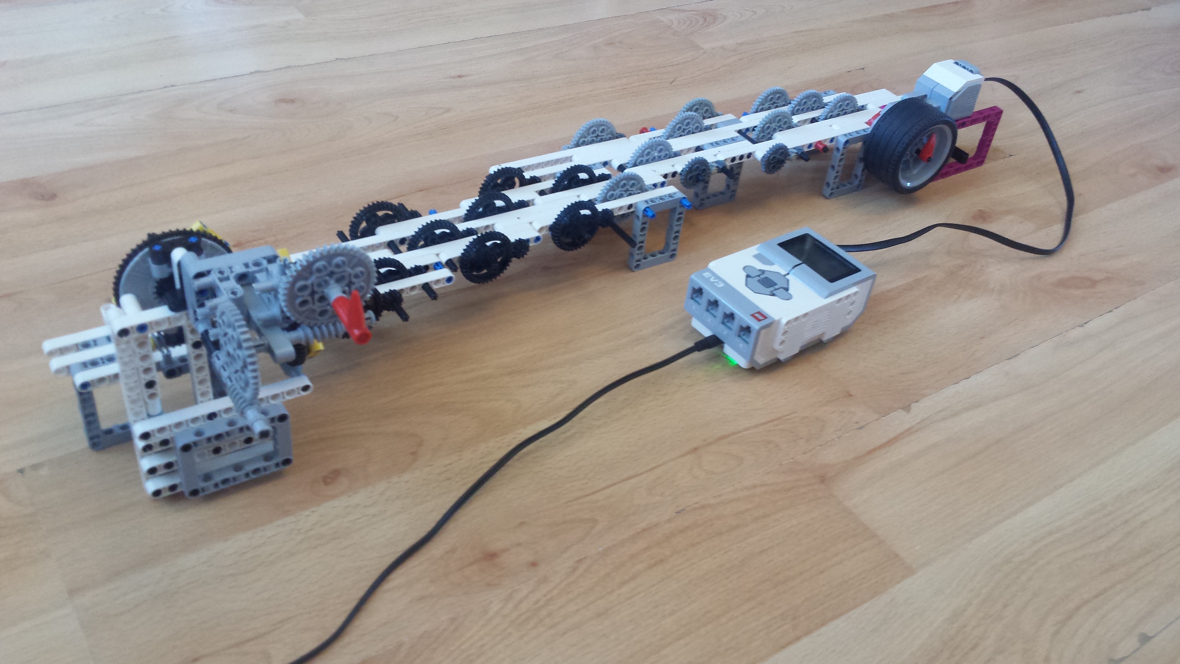 Náš robot sa skladá z jednej kocky EV3, jedného veľkého motora a prevodov.