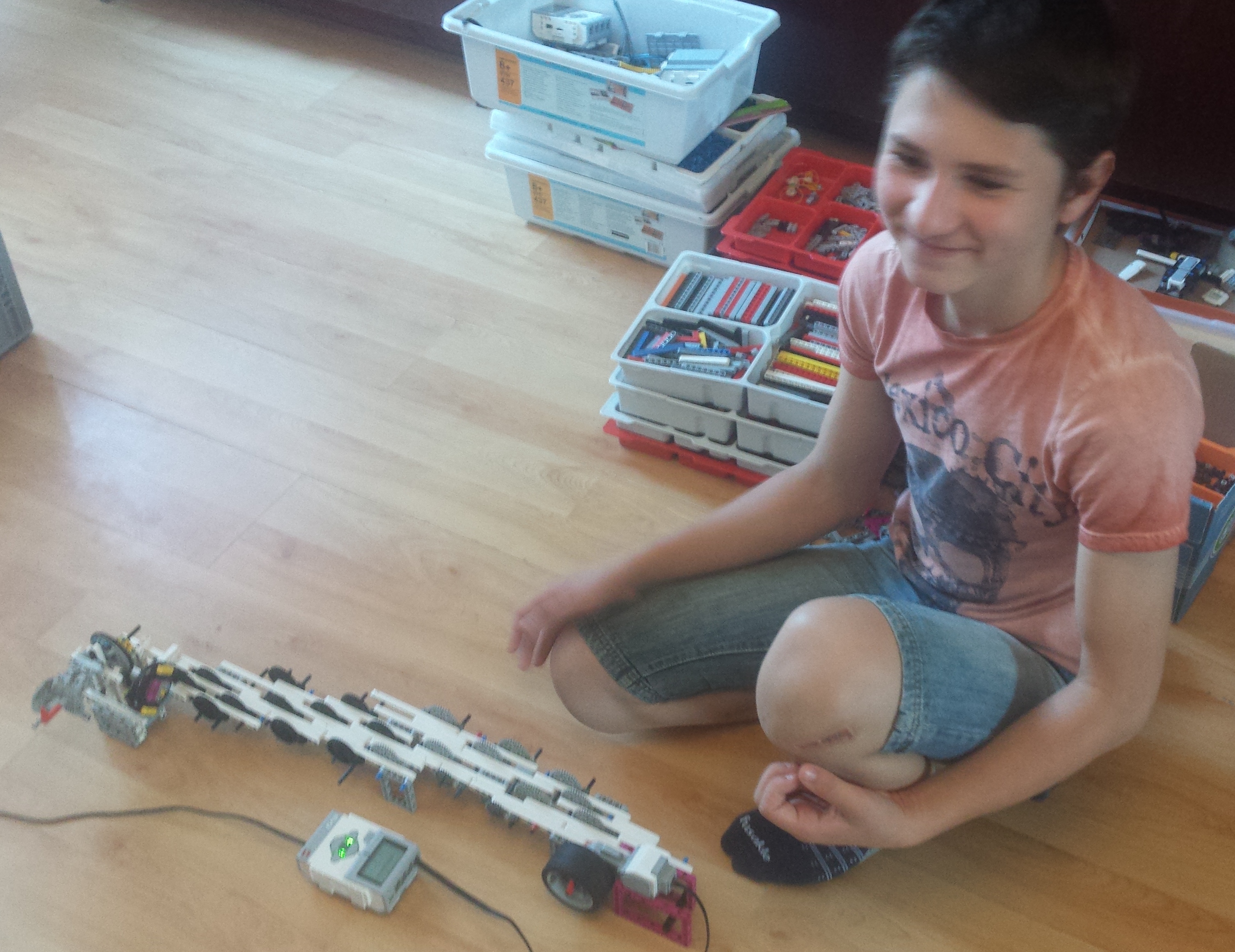 1. Prevody máte nádherné, aj zrejme jednu z najdlhších teoretických periód, Žiaľ nesplnili ste všetky podmienky zadania, kde píše, že "zmerajte dokázateľný pravidelný otočný pohyb zariadenia, aj keby to malo trvať týždne". Z vášho videa a opisu nevidno, že by ste sa pokúšali zistiť, či sa posledné koliesko vôbec hýbe. Nemusí to byť totiž také jednoznačné, motorček nemusí mať dostatočnú silu na to, aby potočil všetkými kolieskami keď na to príde čas. 2. Super, že ste použili viaceré kolieska na spomalenie. Vyzerá byť aj podľa výpočtov ozaj pomalý. 3. Za úlohu Najpomalší zmerateľný pohyb získavate 3b. Páči sa mi detailná sieť ozubených koliesok, ktoré vytvárajú mechanizmus točiaci sa až nepredstaviteľný počet rokov. 4. Pekná práca, máme veľkú radosť a ďakujeme. Len pripomínam, že v zadaní bola jedna veta: "cieľom bude vytvoriť čo najpomalší pohyb, ktorý sa ešte stále dá zmerať" a to meranie som tam nikde nenašiel (výpočet a meranie sú dve rôzne veci).