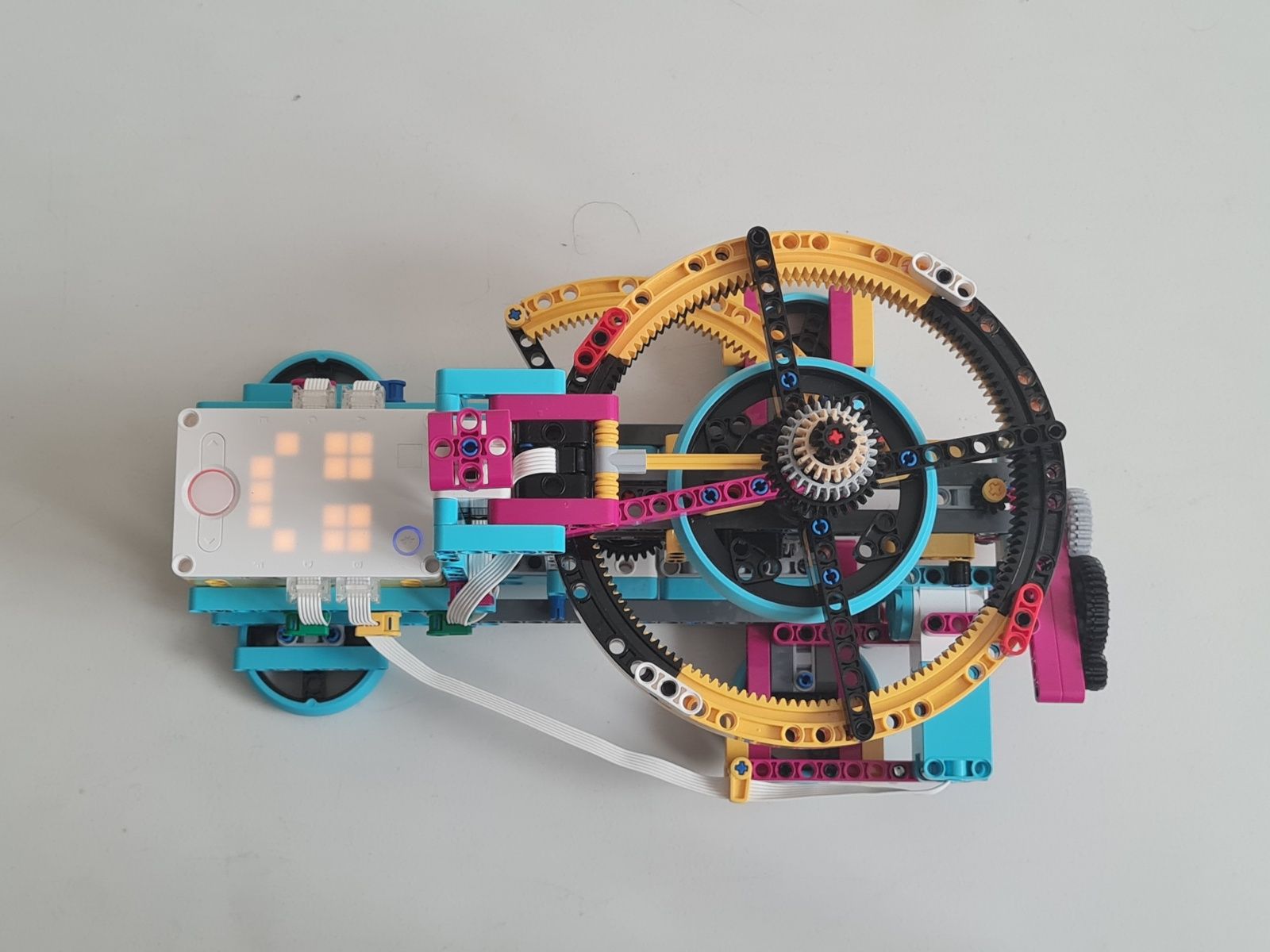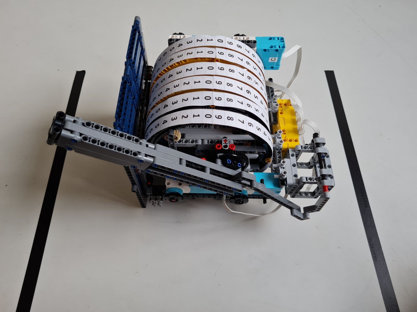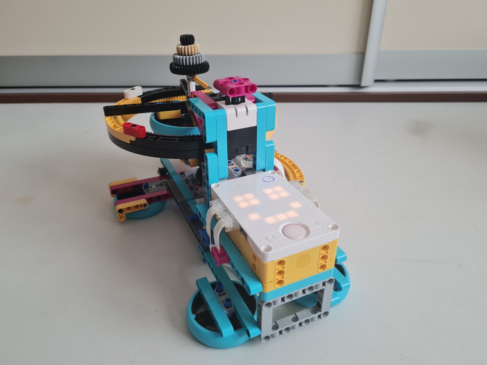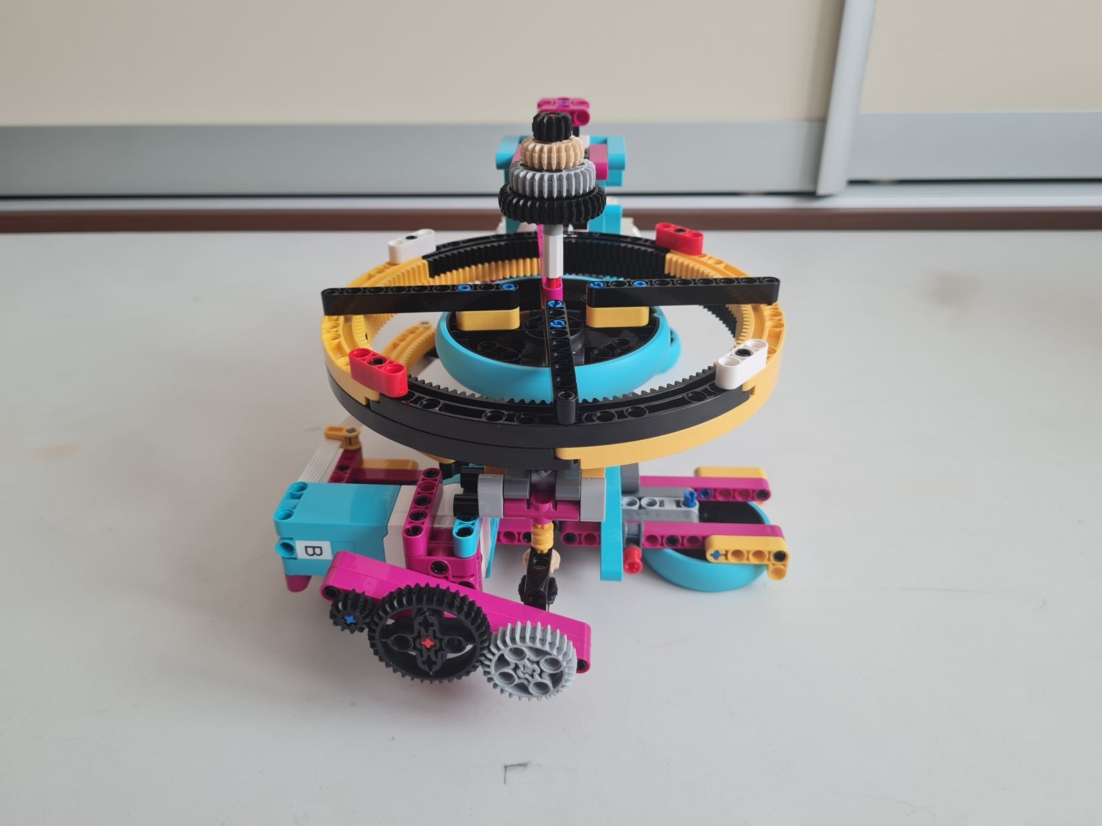 Robot je zostrojený najmä z dielov stavebnice Lego Spike Prime. Tlačidlami na riadiacej jednotke sa volí hodnota čísla N, ktoré určuje na koľko častí je koleso rulety rozdelené. Jeden fialový trám na kolese rulety vyznačuje polohu 0°, od ktorej sú v protismere hodinových ručičiek usporiadané diely, na ktoré bolo koleso rulety rozdelené číslom N postupne od 1 do N. Prvý diel na pravo od fialového trámu je vždy číslo 1 a diel hneď naľavo od fialového trámu je číslo N. Pre čo najpresnejšie určenie polohy, v ktorej koleso rulety zastalo sa pomocou stredného motora a prevodov zapadajúcich do vnútorného ozubenia na kolese rulety vráti koleso do polohy 0°. Z počtu vykonaných otáčok stredného motora a prevodového pomeru sa určí poloha, v ktorej koleso rulety predtým zastalo. Po zvolení čísla N sa po stlačení snímača sily veľkým motorom so štvrť kruhovým trámom s vnútorným ozubením roztočí koleso rulety. Sila roztočenia kolesa rulety je určená náhodne zo zadaného rozsahu aby sa nestávalo, že koleso bude zastavovať v rovnakej polohe.