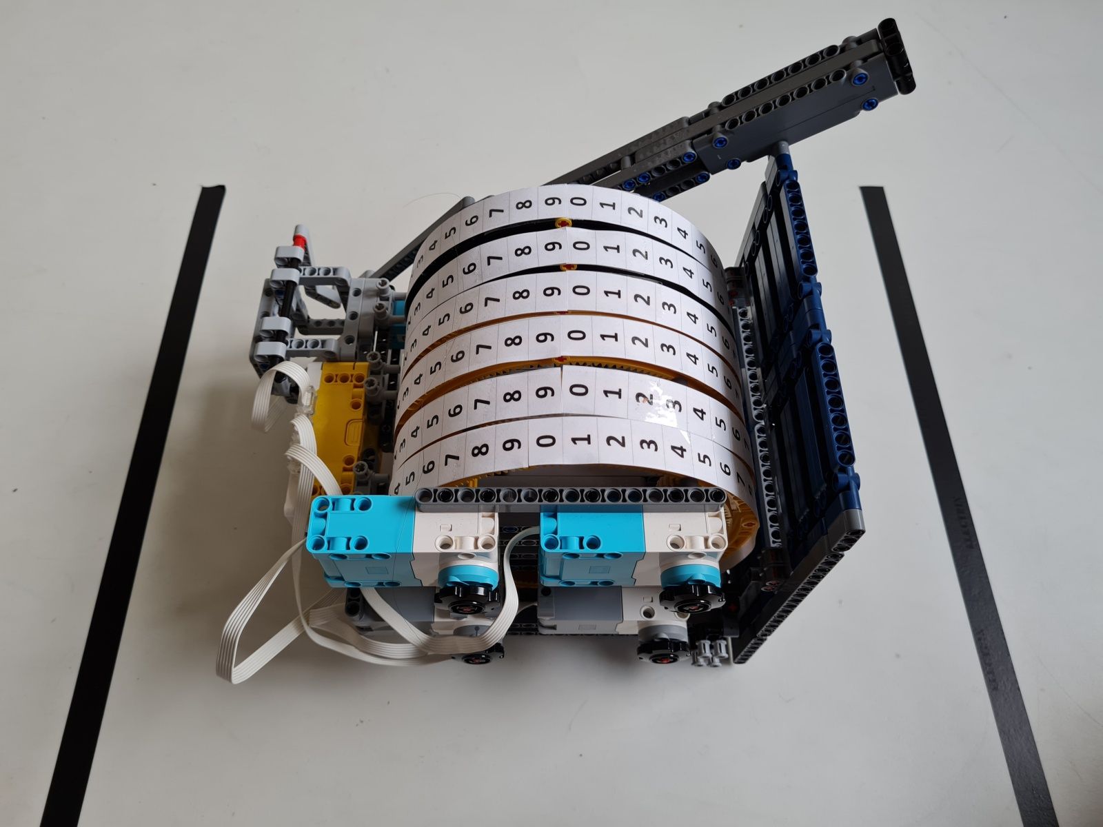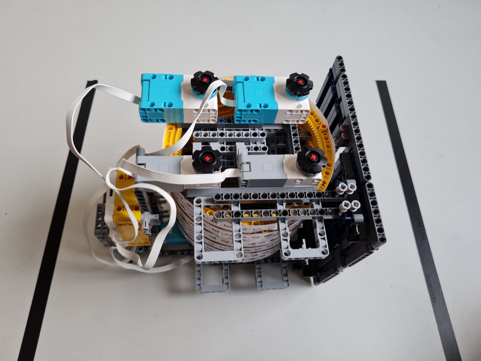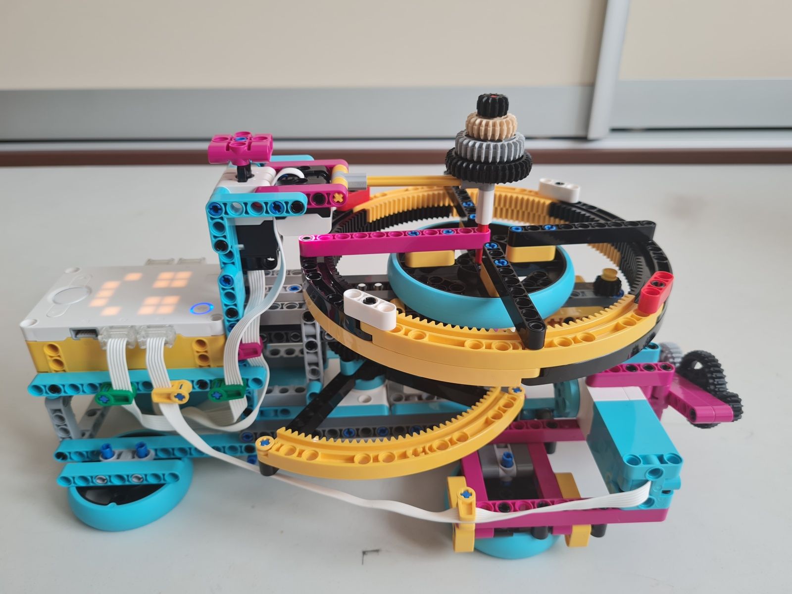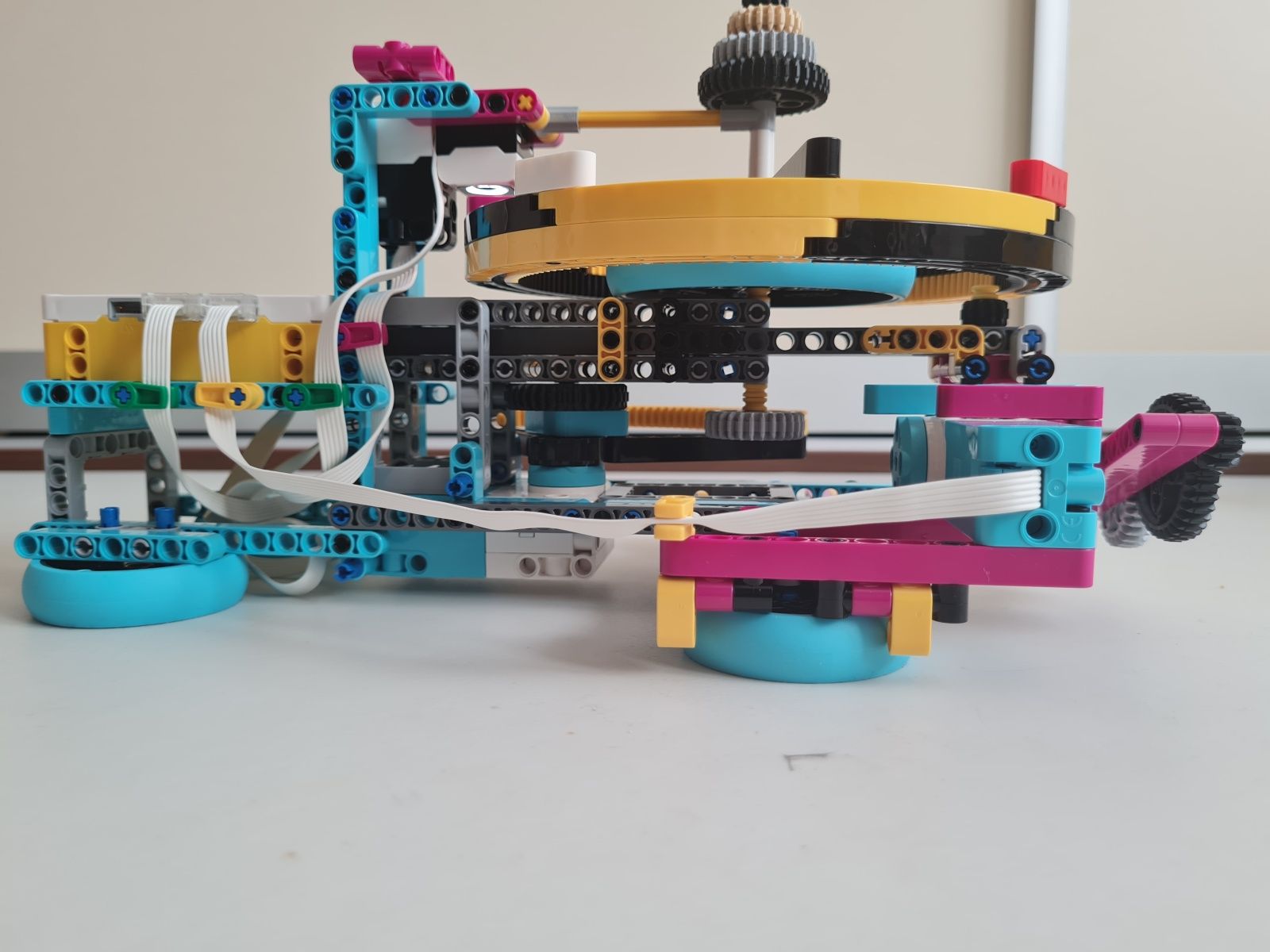 Robot je zostrojený najmä z dielov stavebnice Lego Spike Prime. Tlačidlami na riadiacej jednotke sa volí hodnota čísla N, ktoré určuje na koľko častí je koleso rulety rozdelené. Jeden fialový trám na kolese rulety vyznačuje polohu 0°, od ktorej sú v protismere hodinových ručičiek usporiadané diely, na ktoré bolo koleso rulety rozdelené číslom N postupne od 1 do N. Prvý diel na pravo od fialového trámu je vždy číslo 1 a diel hneď naľavo od fialového trámu je číslo N. Pre čo najpresnejšie určenie polohy, v ktorej koleso rulety zastalo sa pomocou stredného motora a prevodov zapadajúcich do vnútorného ozubenia na kolese rulety vráti koleso do polohy 0°. Z počtu vykonaných otáčok stredného motora a prevodového pomeru sa určí poloha, v ktorej koleso rulety predtým zastalo. Po zvolení čísla N sa po stlačení snímača sily veľkým motorom so štvrť kruhovým trámom s vnútorným ozubením roztočí koleso rulety. Sila roztočenia kolesa rulety je určená náhodne zo zadaného rozsahu aby sa nestávalo, že koleso bude zastavovať v rovnakej polohe.