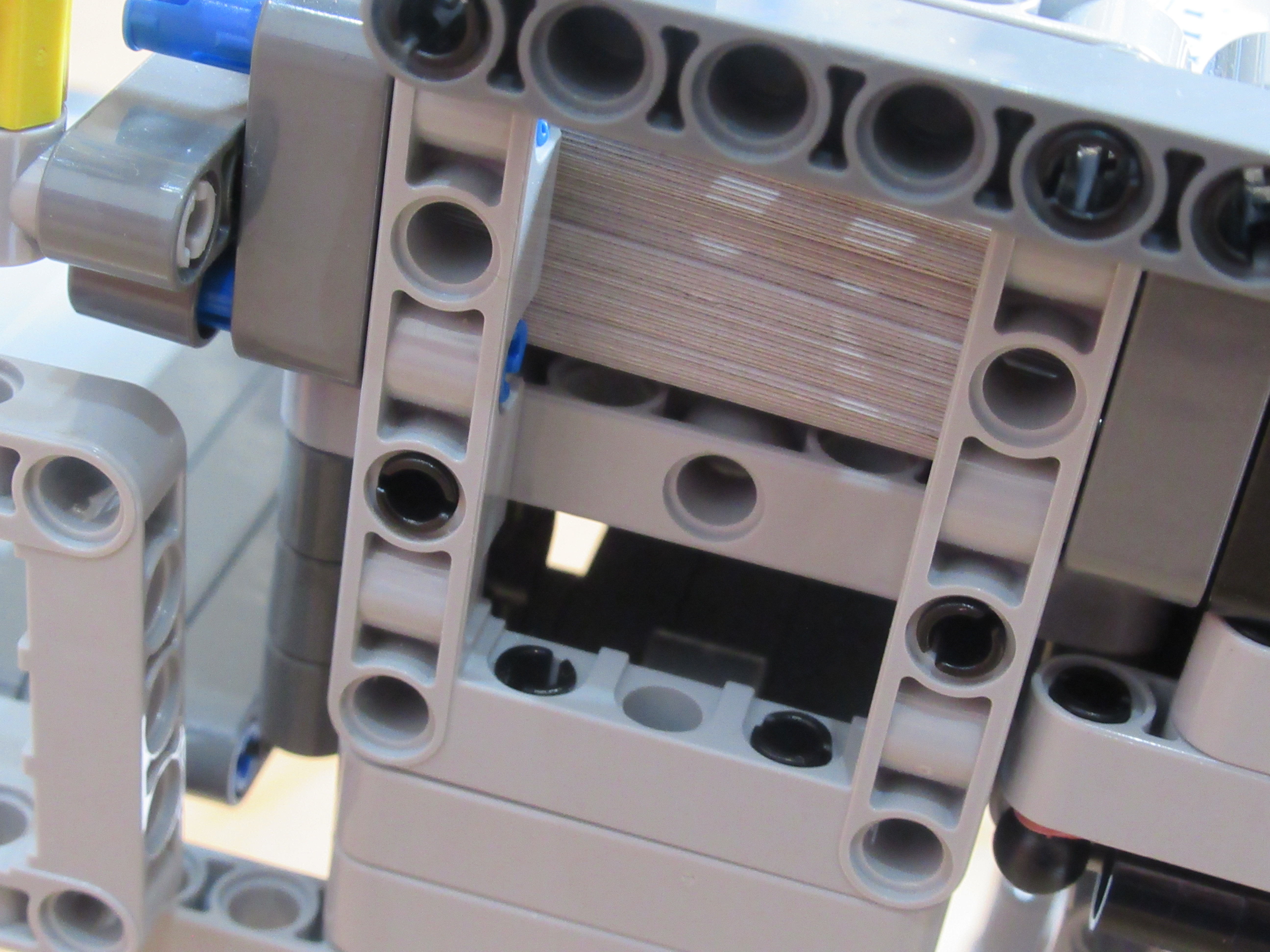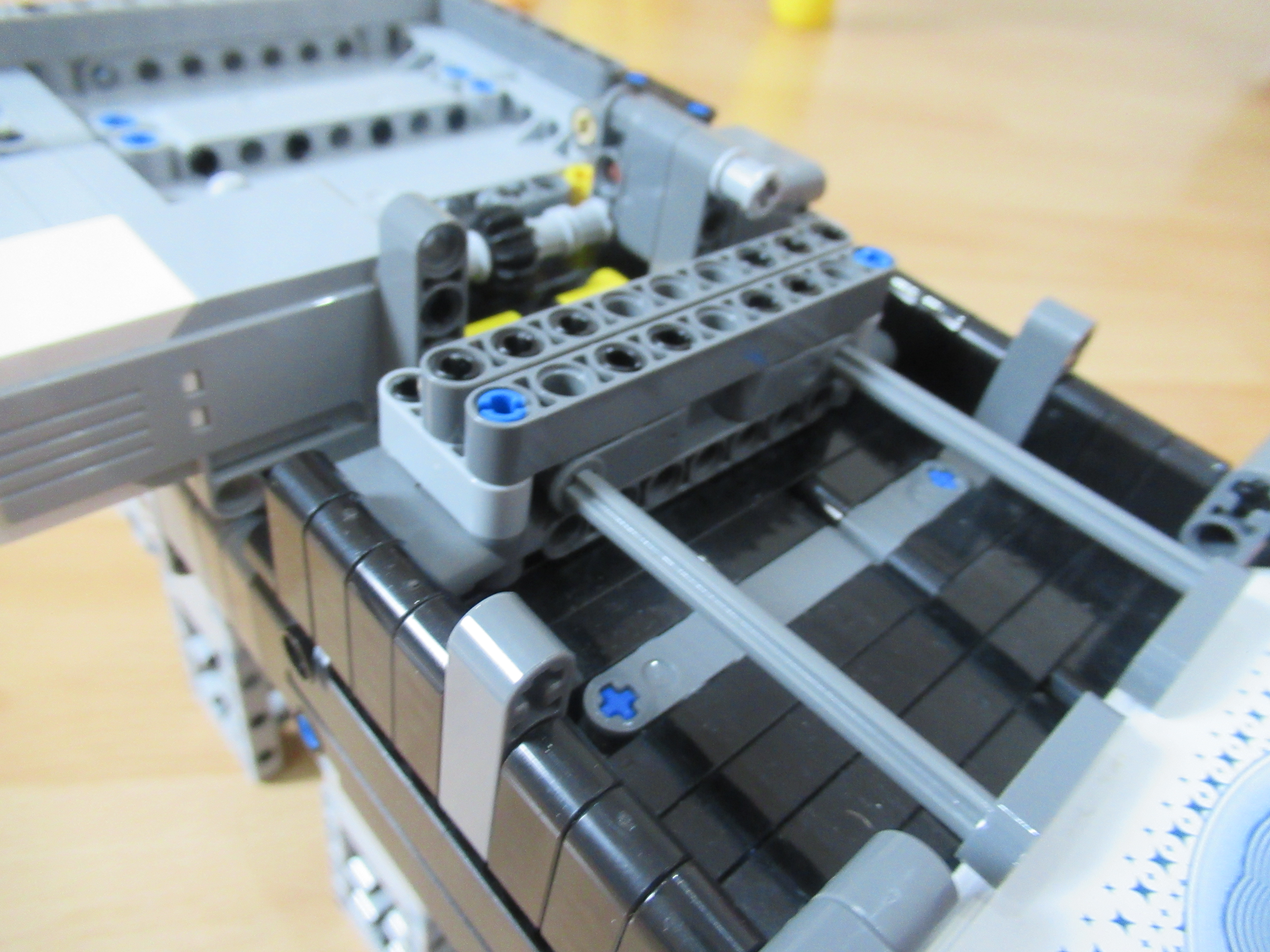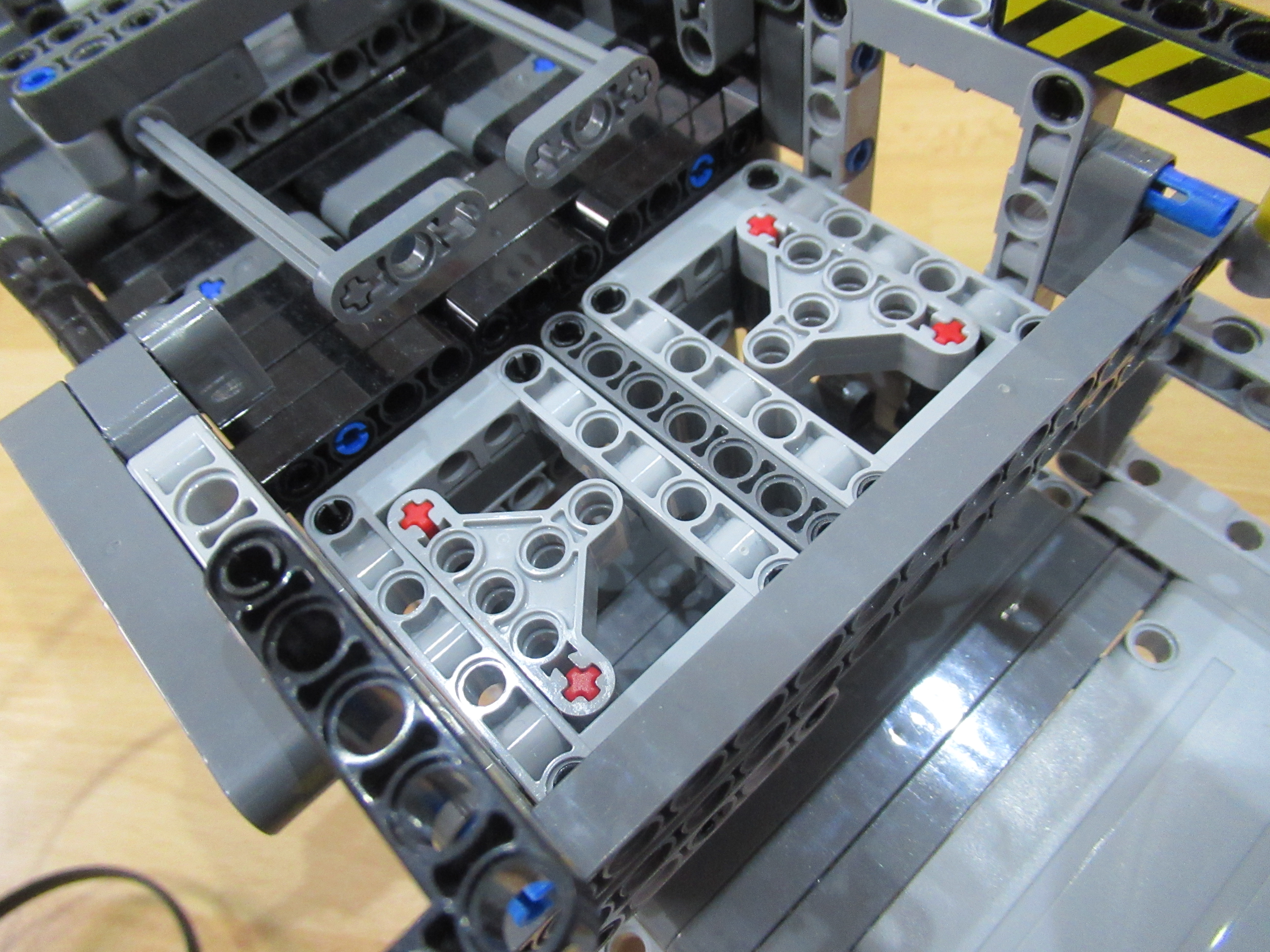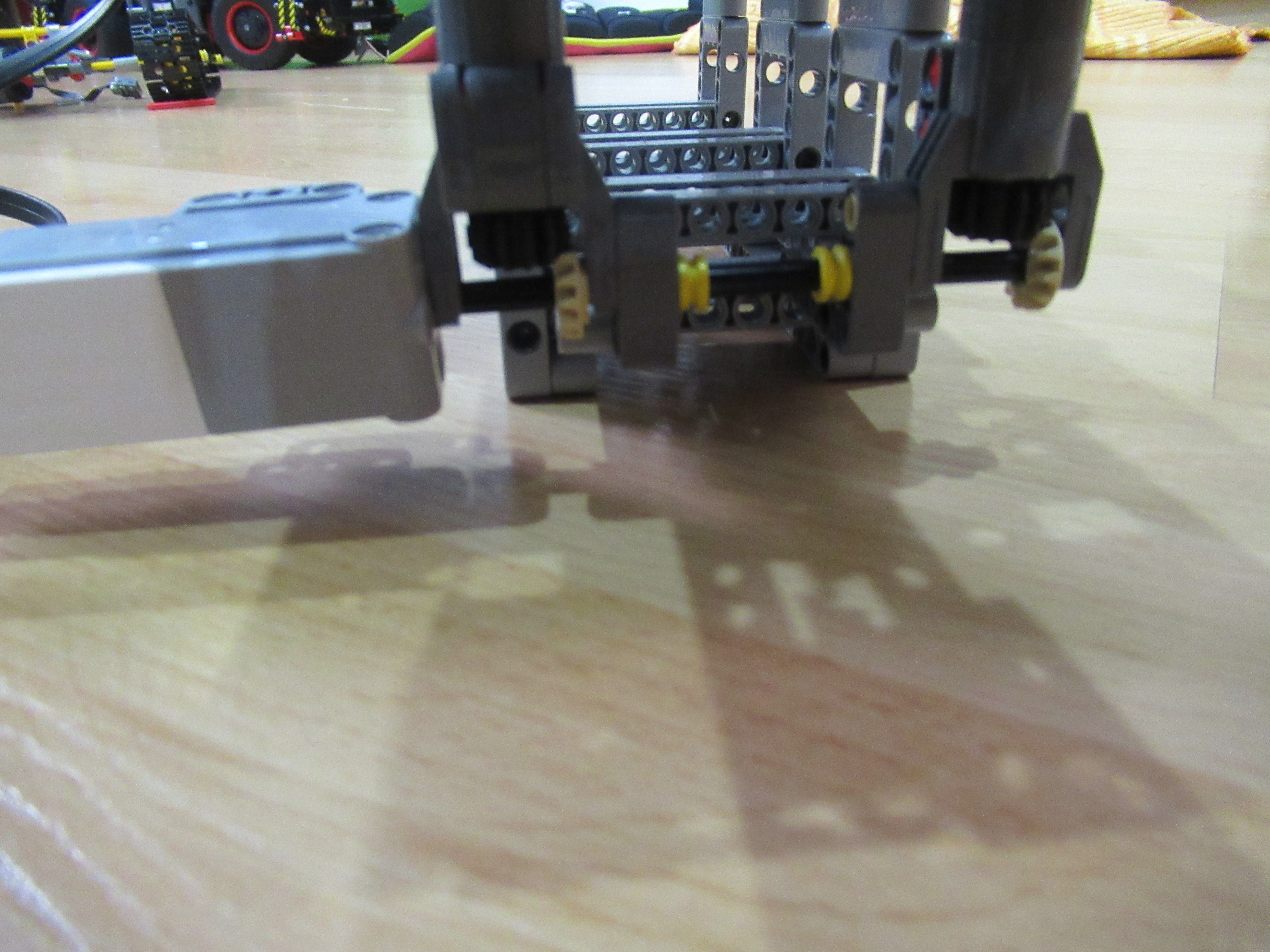 Náš robot sa skladá z dvoch médium motorov, z ktorých jeden má za úlohu zhadzovať niekoľko vrchných kariet zvrchu balíčku kariet a druhý mu ten balíček postupne dvíha hore, aby mohol zhadzovať karty, ktoré ešte treba premiešať.