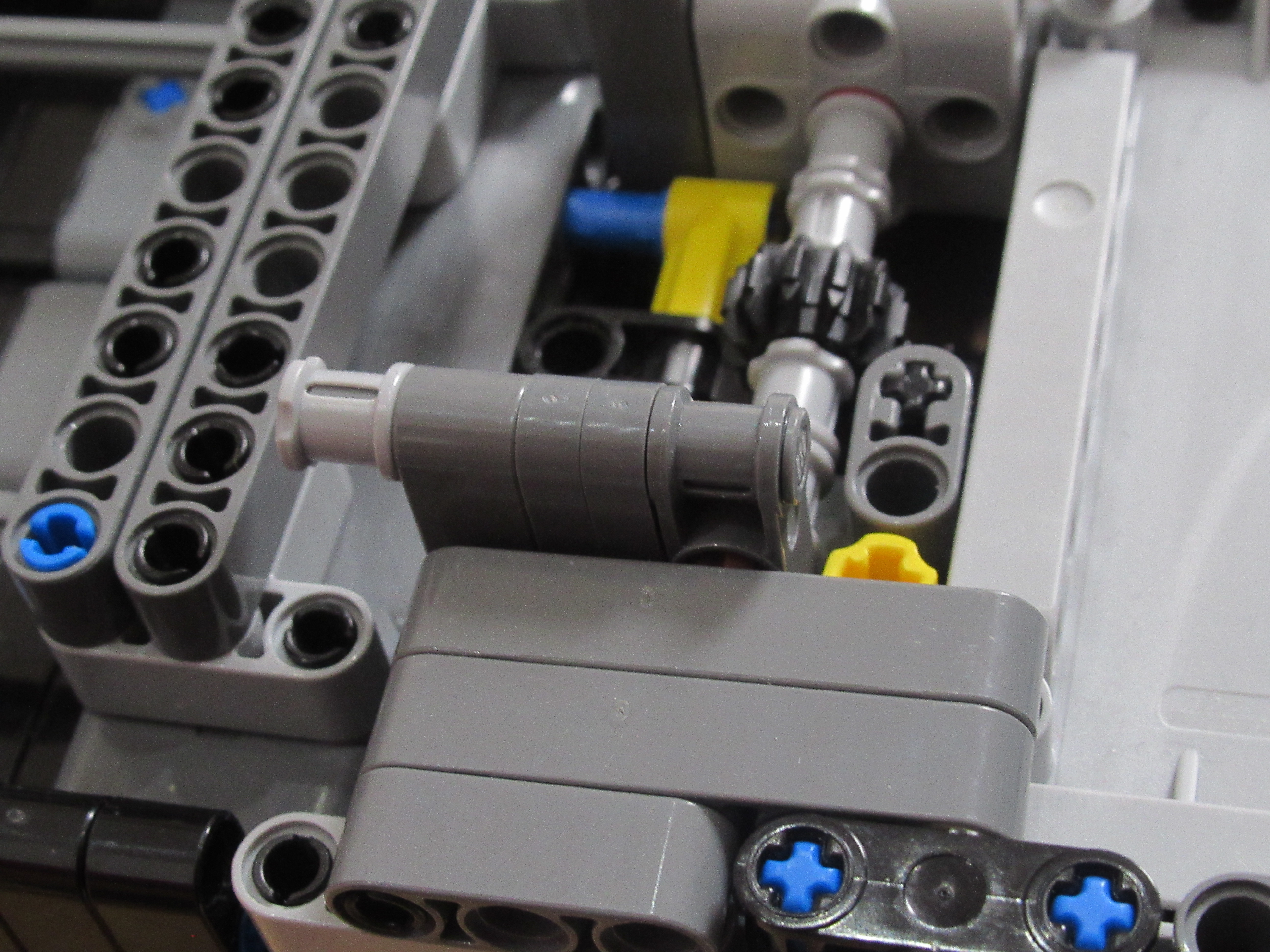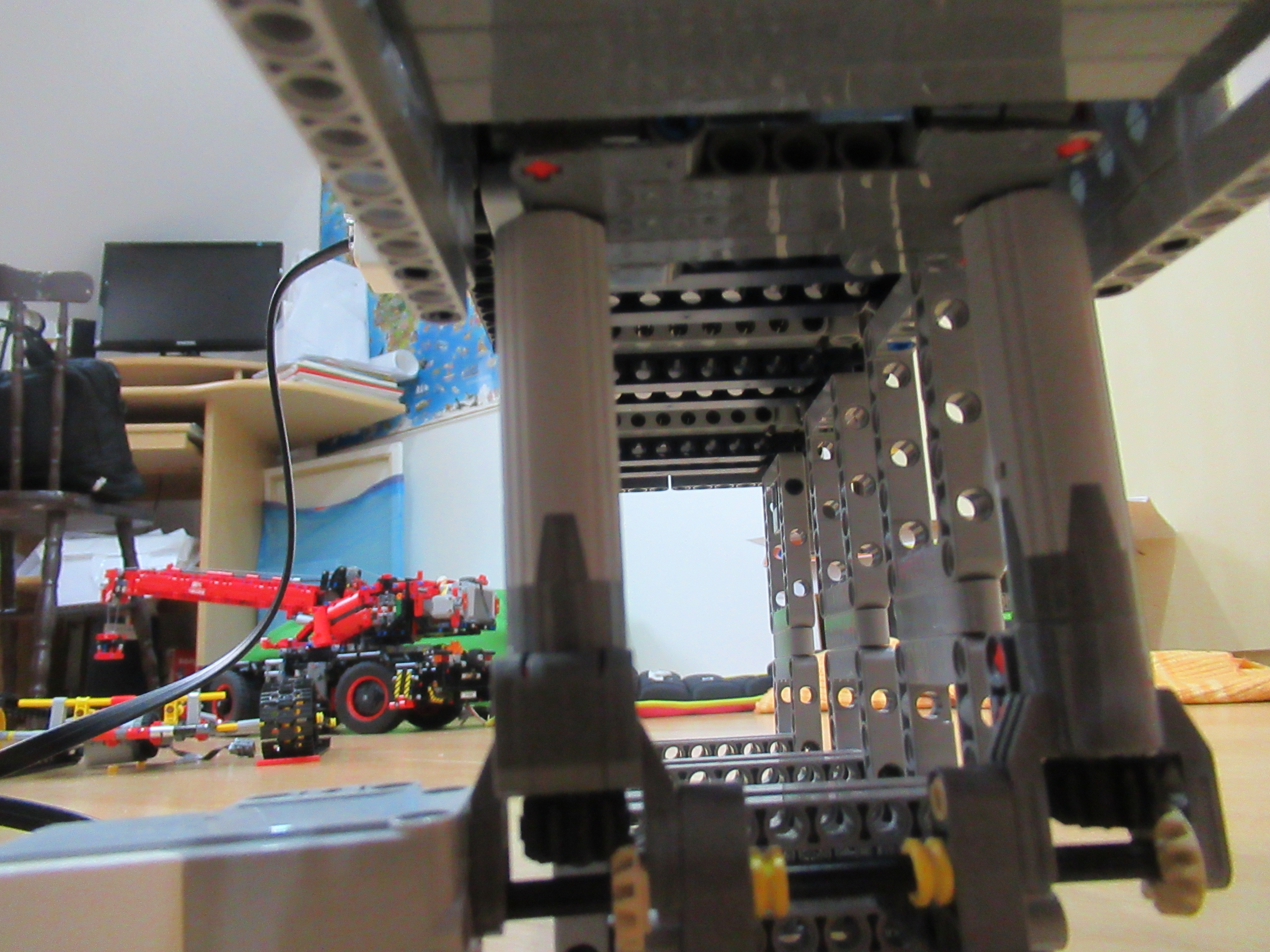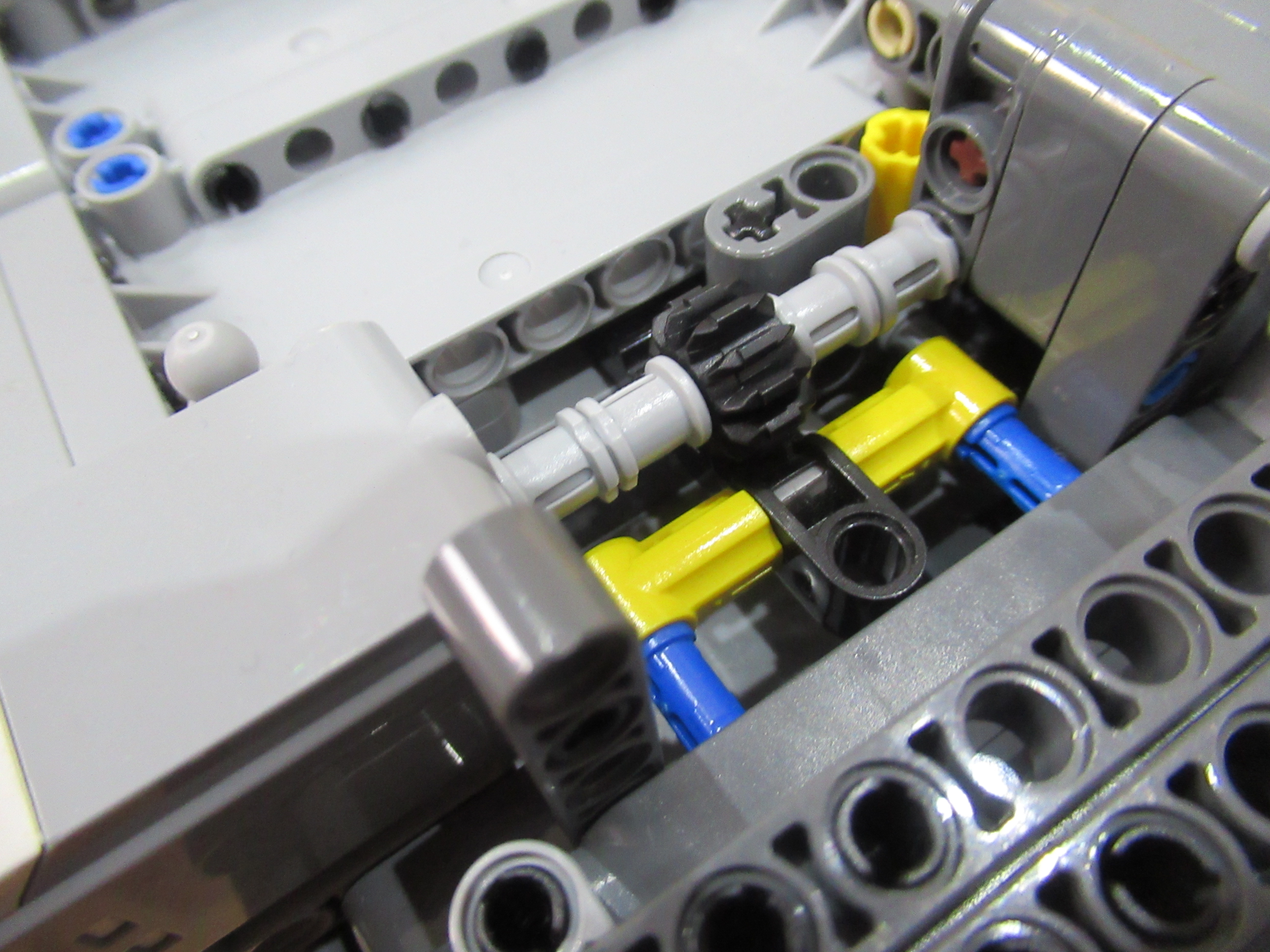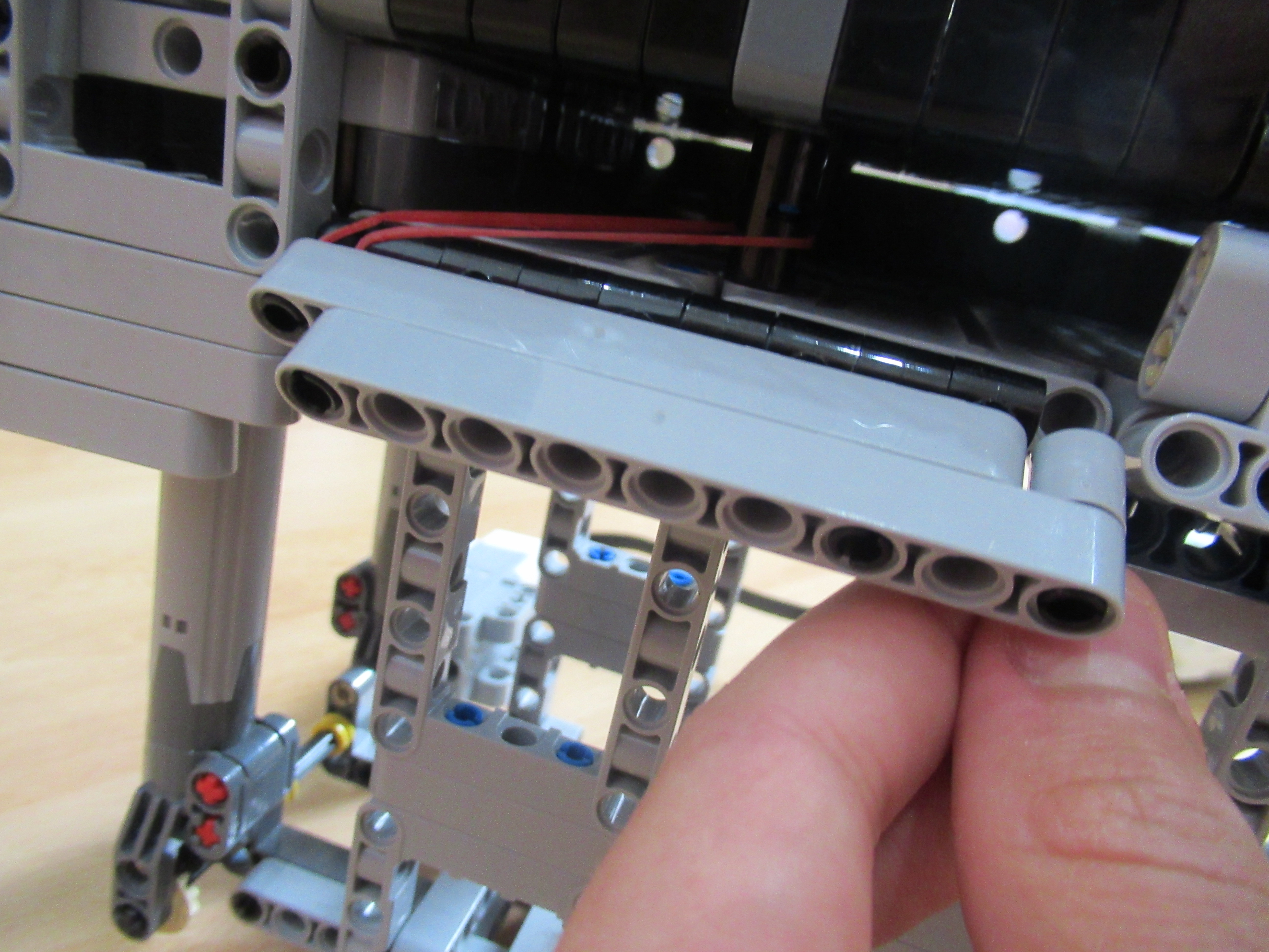 Náš robot sa skladá z dvoch médium motorov, z ktorých jeden má za úlohu zhadzovať niekoľko vrchných kariet zvrchu balíčku kariet a druhý mu ten balíček postupne dvíha hore, aby mohol zhadzovať karty, ktoré ešte treba premiešať.