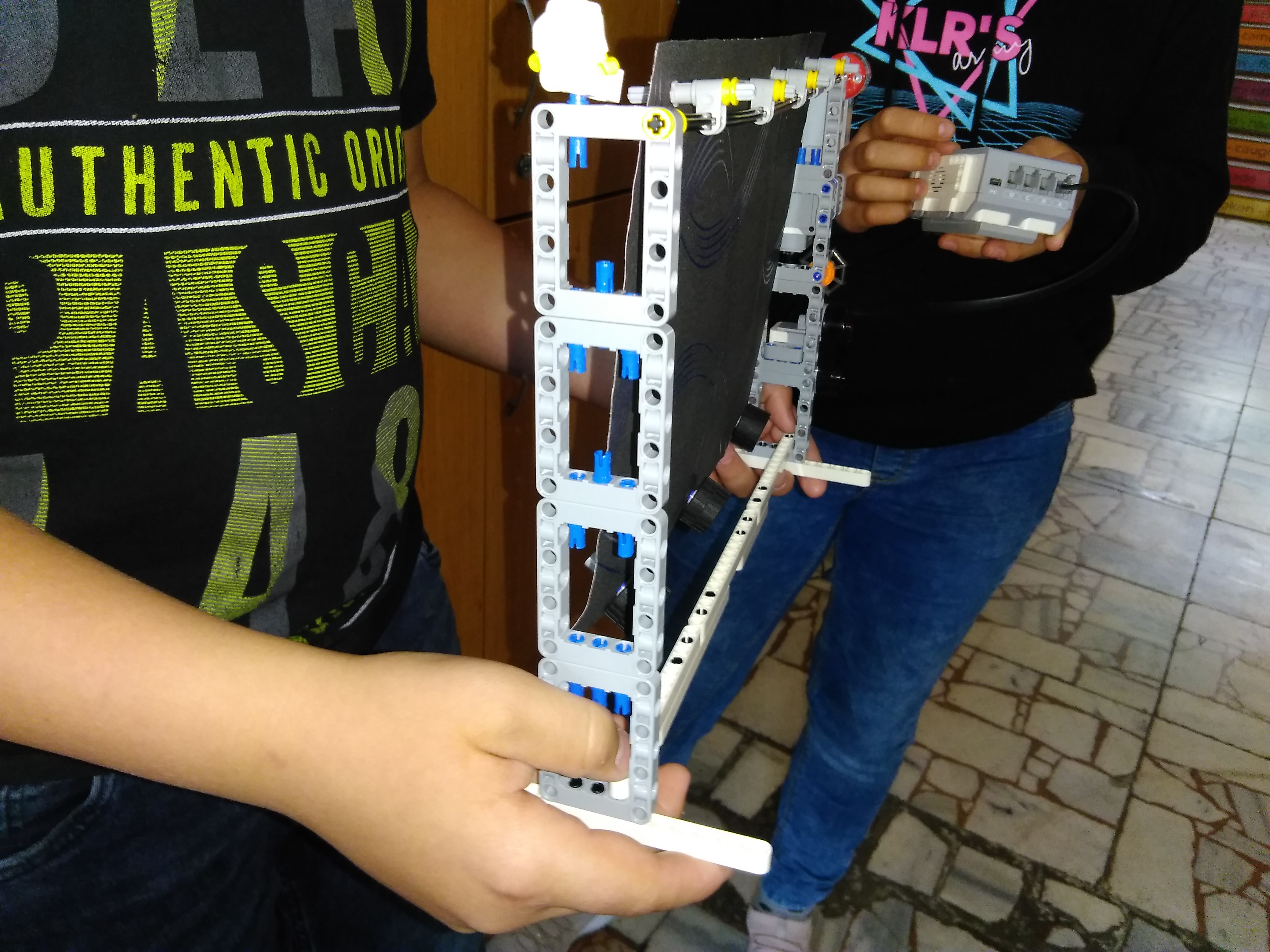 1. Veľmi pekná opona, aj vo veľkých divadlách je opona samostatné umelecké dielo. Pekne spravené časovanie. 2. Za úlohu Opona získavate 3b. Páči sa mi, že ste vo videu popísali ako opona funguje a vytvorili ste aj otváranie/zatváranie opony na základe času ale aj na základe mávnutia. 3. Pekne vysvetlená konštrukcia modelu aj programu. Reakcie sú rýchle, čo je spôsobené asi aj menšou veľkosťou modelu. Na ukážku to bohato stačí. V realitie to herci isto ocenia, keď nemusia čakať večnosť na zatiahnutie opony a hneď môžu začať s presunom. 4. Ďakujeme, zaujímavo ste to vymysleli. Možno by režisér chcel aj niečo iné ako preskočiť jedno číslo v programe, lebo situácie na javisku môžu byť aj neočakávané a vyžadujú si celkom iné pokračovanie predstavenia. Páči sa mi, že opona sa vyroluje rýchlo a spoľahlivo.