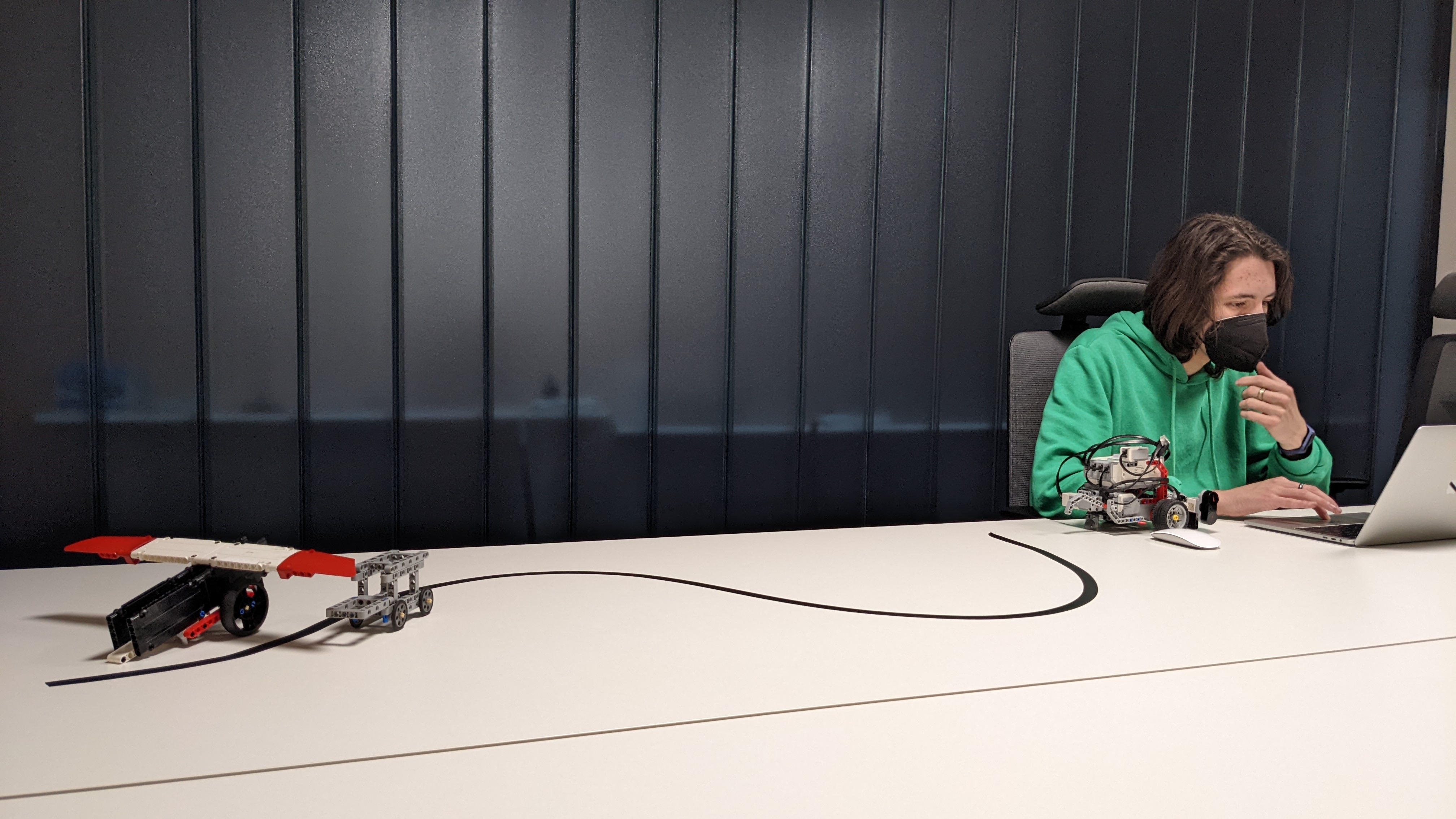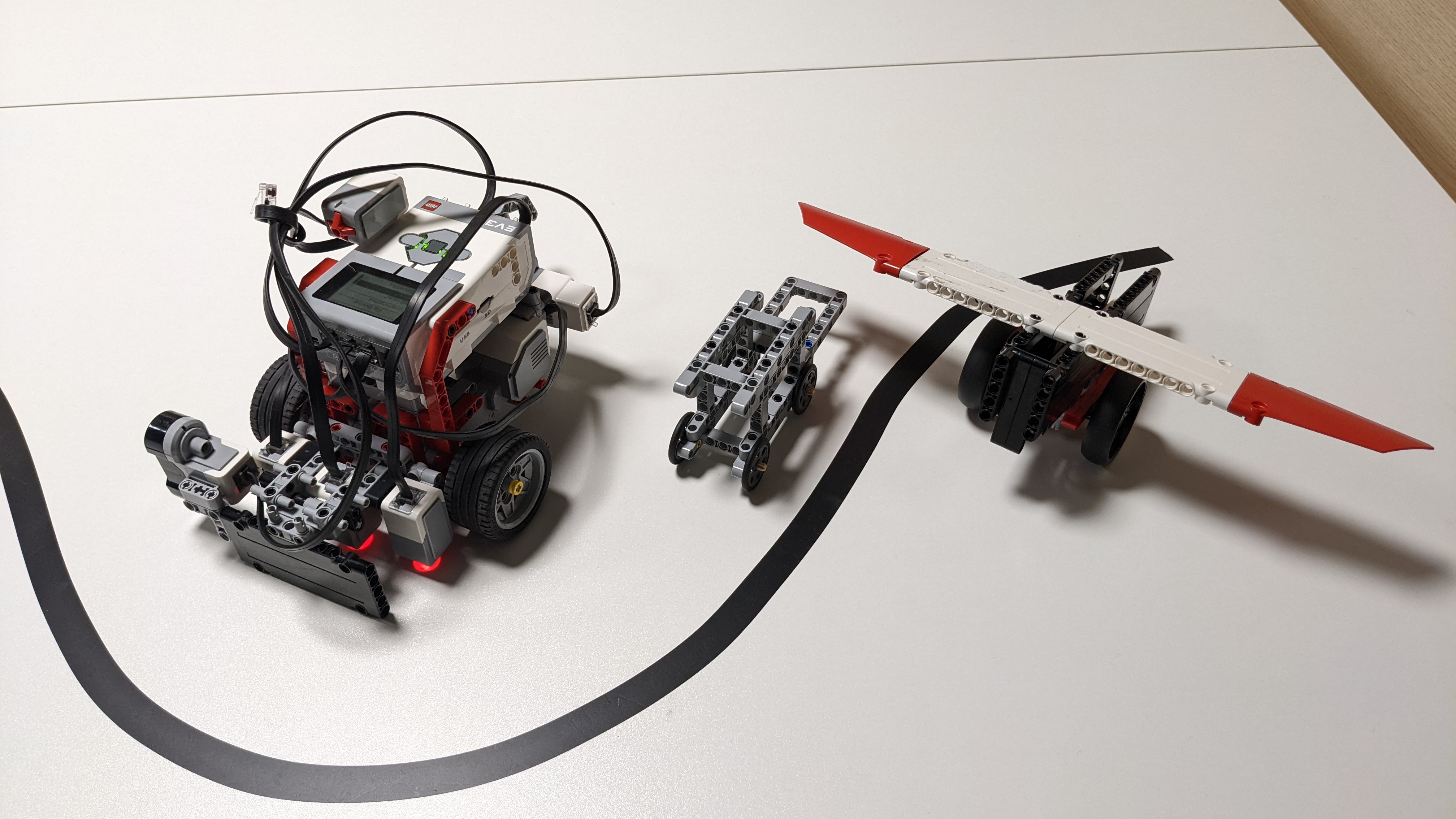 1. Veľmi pekný, jednoduchý a spoľahlivý robot, ktorý vozík dovezie na miesto a pekne sa vráti späť. 2. Za úlohu Zimná olympiáda - zajace získavate 3b. Dokonalé riešenie úlohy. Veľmi pekný popis riešenia, detailné fotky robota a ukážkovo natočené riešenie. 3. Fajne riešenie. Pekne vysvetlené umiestnenie senzorov. Na videu program funguje. Možno by si mohol nabudúce skúsiť aj rôzne umiestnenia lietadla, aby bolo jasné, že senzory a program a konštrukcia fungujú spolu spoľahlivo. 4. Super. Tešíme sa! :-) Inak nie je to PID regulátor ale iba P regulátor, ale to nevadí.