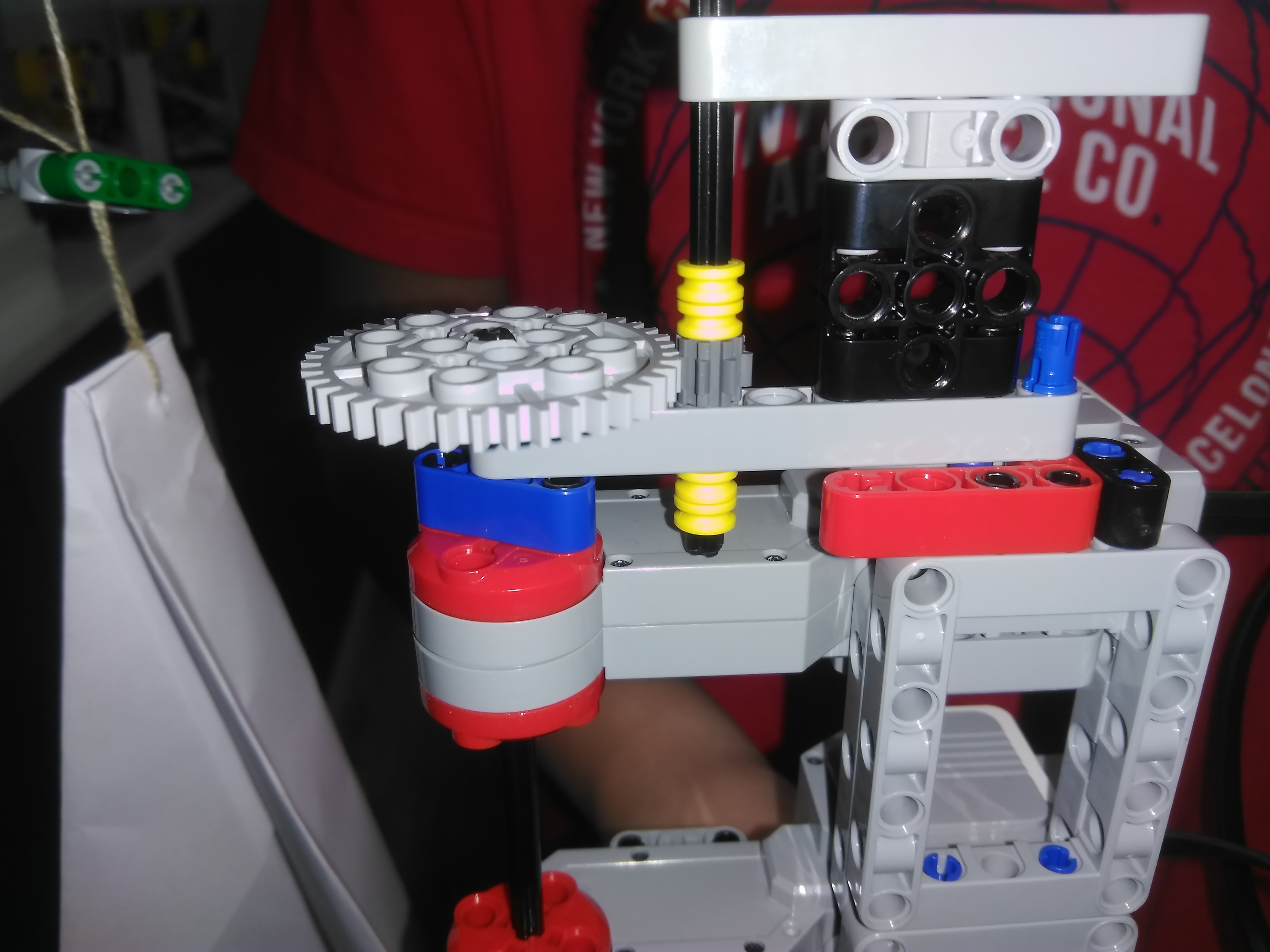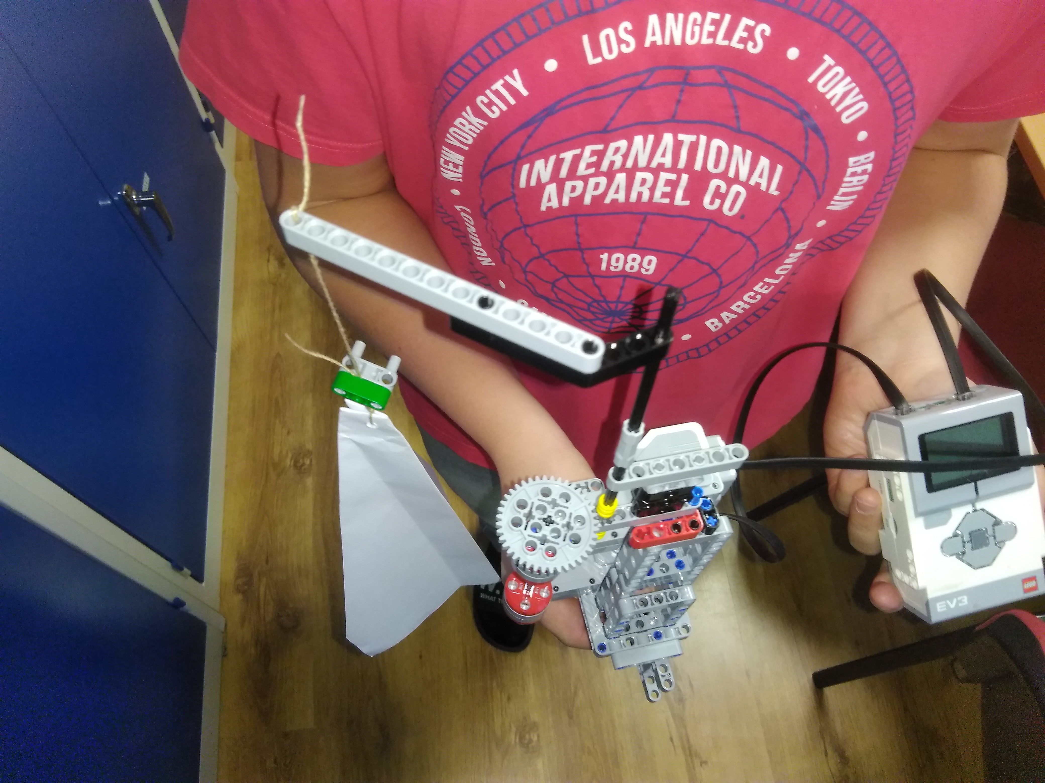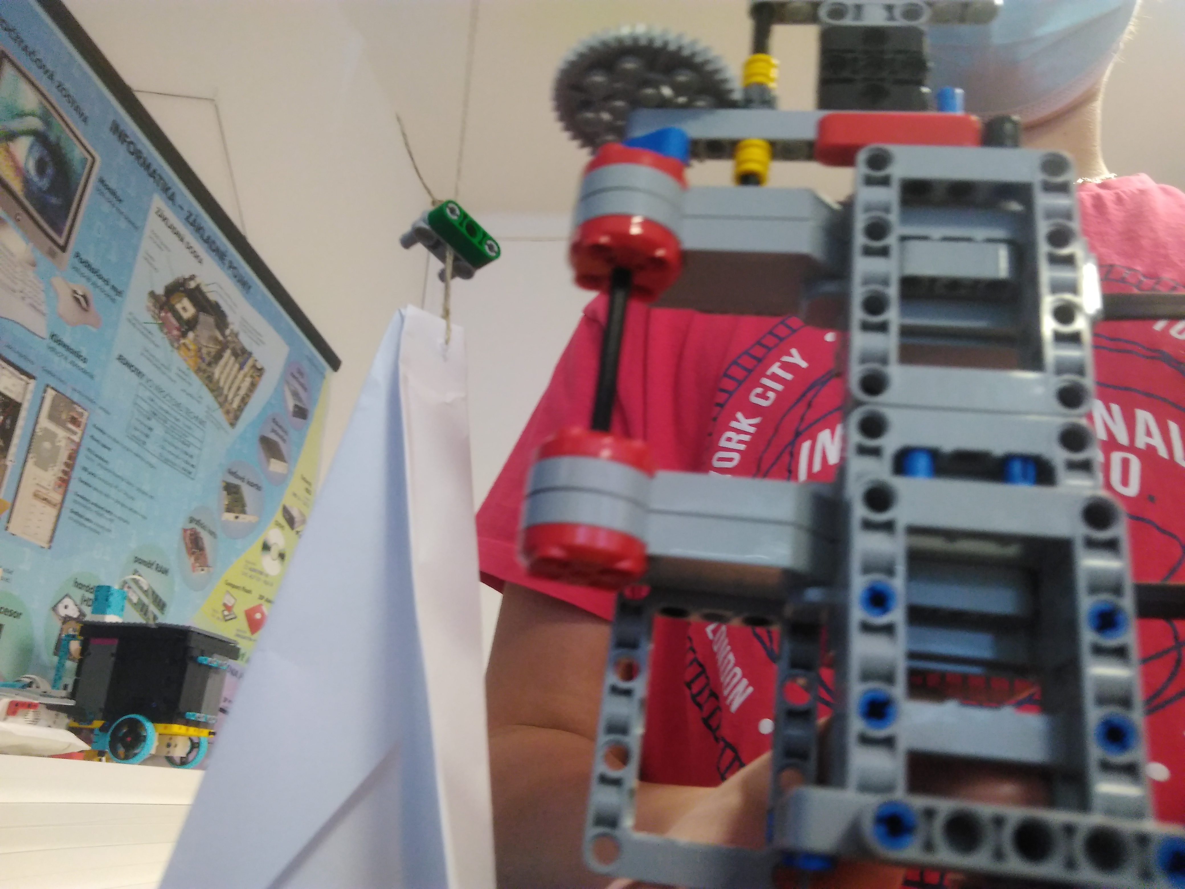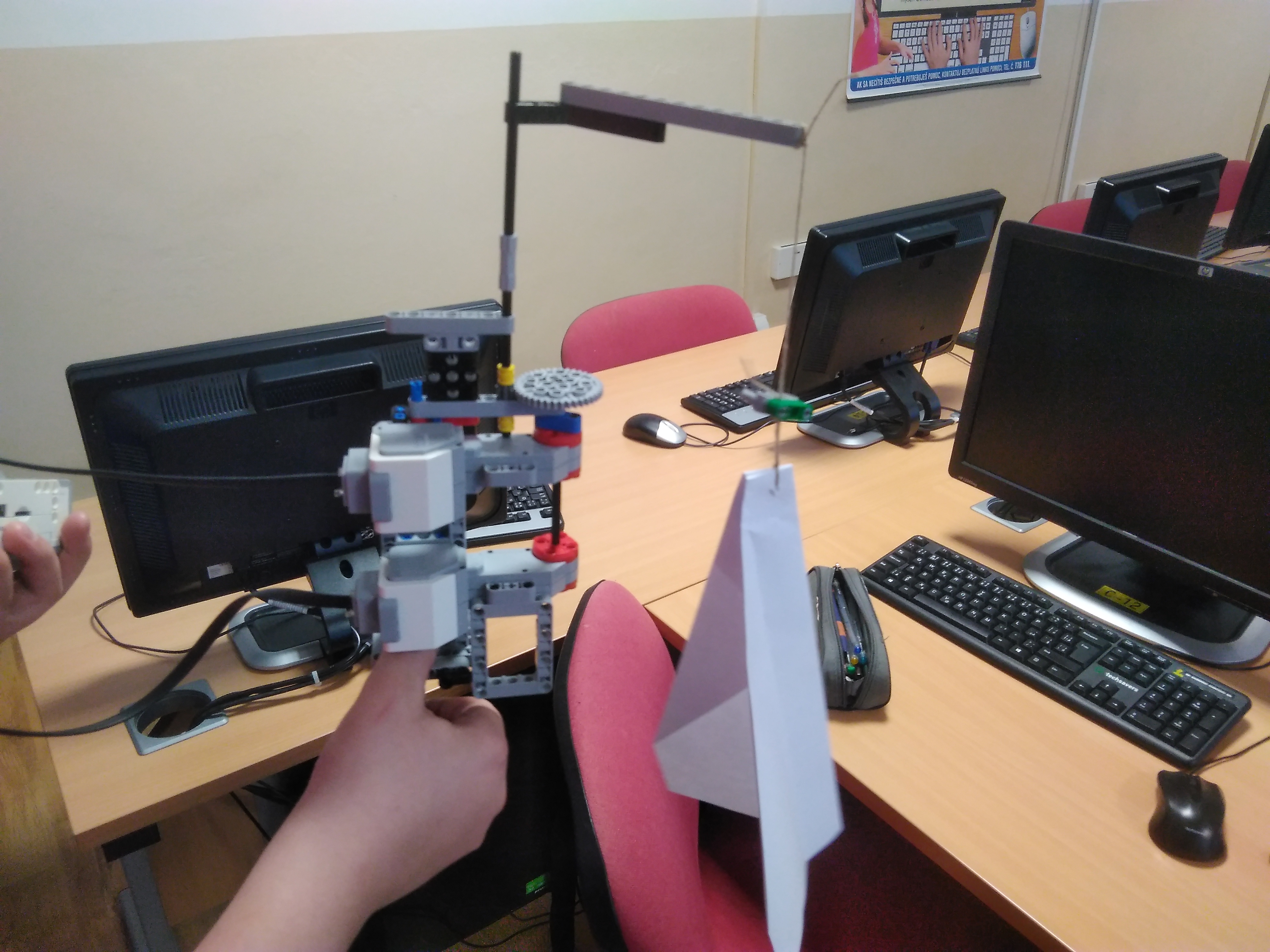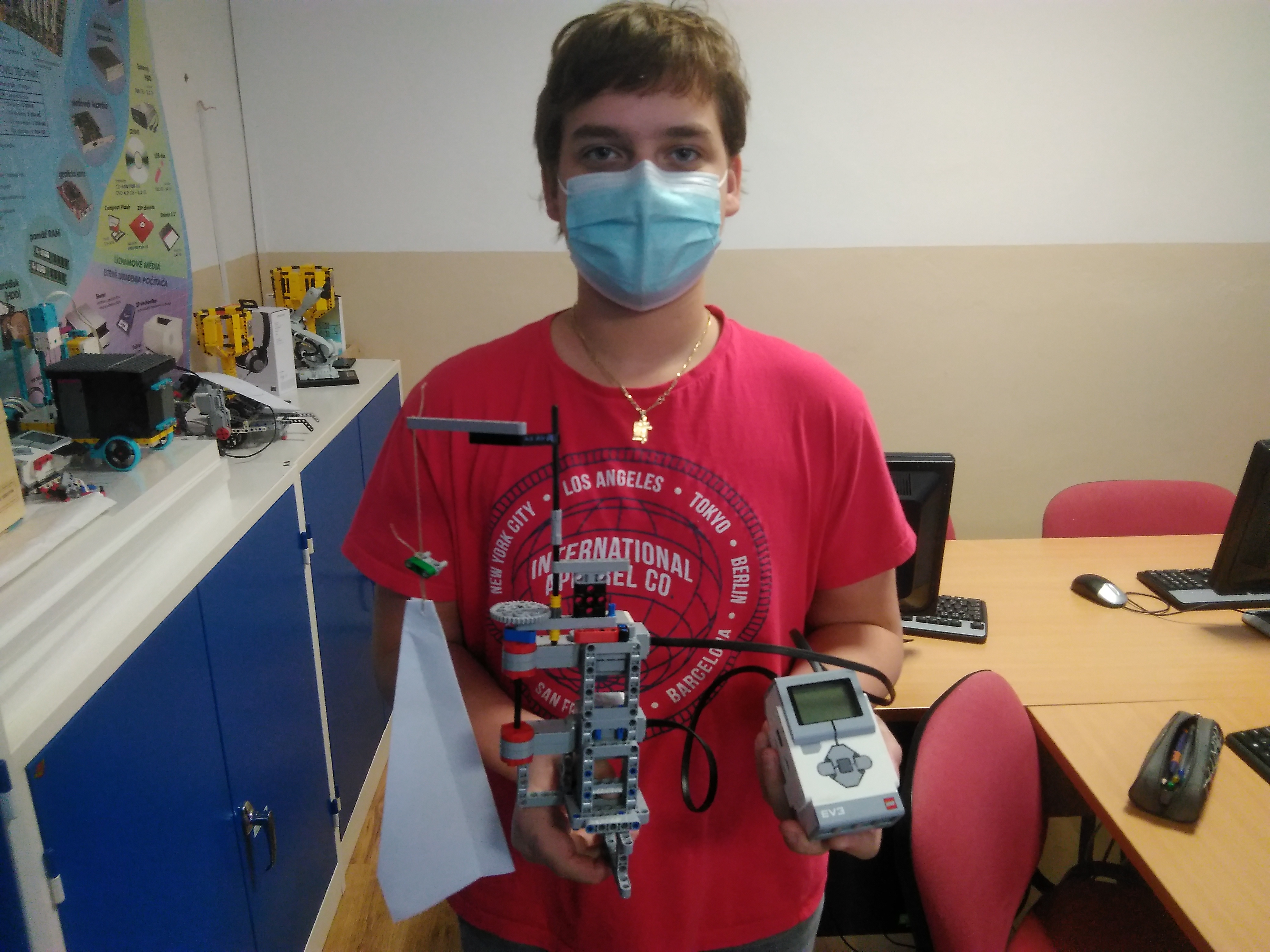 1. Pustili ste sa do tej náročnejšej úlohy pre tigrov. Hoci ste spravili len pohyb okolo jednej osi, páči sa mi, že ste to aspoň začali a odovzdali aspoň čiastočné riešenie. Je tiež pekne zdokumentované. Konštrukcia mohla byť možno trocha robustnejšia, aby sa to celé nekymácalo. 2. Za úlohu Let okolo sveta - tigre získavate 2.5b. Páči sa mi, že vo videu je ukážka riešenia spojená s opisom. V riešení chýba druhá časť zadania a to, že robotické rameno umožní naklonenie celej roviny, v ktorej lietadlo krúži. 3. Super, že si sa pustil do riešenia náročnejšej úlohy pre Tigre. Podľa zadania sa však mala dať nastaviť poloha lietadielka v priestore pomocou dvoch osí. Ty máš v riešení len jednu a to sa nedá veľmi meniť. Takže tvoje riešenie je len z časti správne. Preto Ti nemôžem dať plný počet bodov. 4. No fajn, točí sa. :-) Ale nenakláňa sa a to by sme práve potrebovali, to je hlavná a tá ťažšia časť úlohy. Verím, že nabudúce uvidíme riešenie, ktoré sa bude viac podobať na očakávania podľa zadania. Aj tak dobre, že ste to poslali.