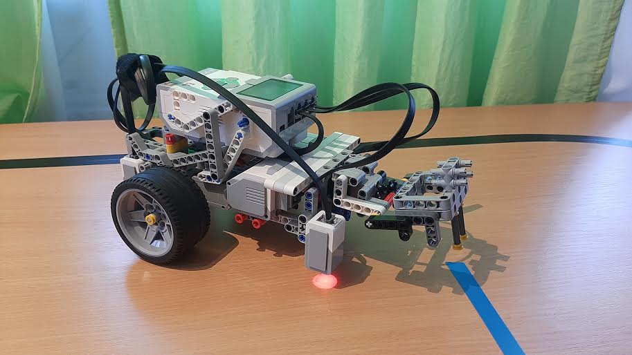 Na stavbu zariadenia boli použité diely z EV3 Mindstorms a lietadlá sme robili z kancelárskeho papiera.