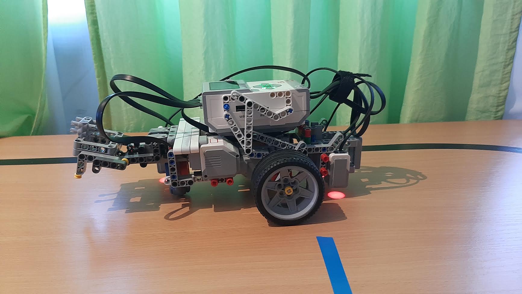 1. Premakaný robot, veľmi pekne sleduje čiaru, len škoda, že sa nevie aj vrátiť späť na začiatok. Nuž, trocha ste to naznačili, že ak by tá cestička bola spojená, tak sa vlastne vráti, všakže... 2. Za úlohu Zimná olympiáda - zajace získavate 2.5b. Páči sa mi popis riešenia a detailné fotky robota. Robot sa nespráva podľa zadania, tj. že potom čo robot zanechá batožinový vozík pri lietadle, tak sa mal vrátiť rovnakou cestou akou prišiel k lietadlu. 3. Pekne ste nahrali viacero ciest vozíka. Super, len tak ďalej. Na druhej strane riešenie nie úplne kompletné, lebo vidím ísť vozík len jedným smerom a mal by podľa zadania ísť tam aj späť. Tiež tá modrá čiara nie je úplne lietadlo, takže to je tiež také zjednodušenie trošku. Verím, že sa budete kažďou ďalšou úlohou zlepšovať a teším sa na vaše ďalšie riešenia. 4. Rozumiem, že priestorové okolnosti na stole asi nedovoľovali jazdiť s tým vozíkom v zákrute, ale bolo by to určite zaujímavé vidieť. No a teda lietadlo by nemalo byť nakreslené na zemi ale byť pristavené na letisku. Inak celkom pekný robot aj vozík. Hurá. :-)