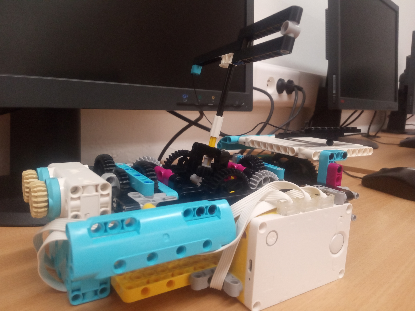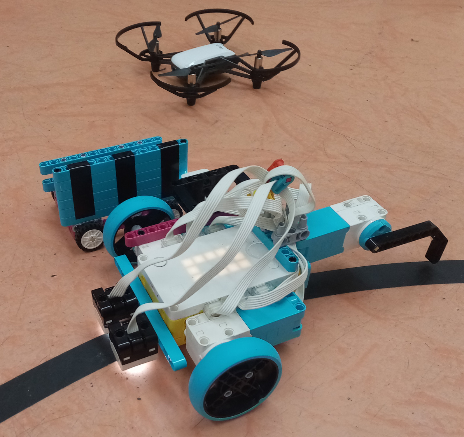 1. Pekný vozík, aj rozpoznávanie kódu, aj pekne zdokumentovaná úloha. Páči sa mi ten mechanizmus na vozík aj čiarové kódy. Robot tiež pekne sleduje čiaru. 2. Za úlohu Zimná olympiáda - tigre získavate 3b. Dokonalé riešenie úlohy. Veľmi pekný popis riešenia a ukážkovo natočené riešenie. 3. Super, že ste sa pustili do náročnejšej úlohy. Pekne vám však robot pípal pri rôznych situáciách, keď niečo identifikoval. Myslím, že to môže pomôcť pri hľadaní chýb, ak niečo nefunguje tak, ako má. 4. Krásne riešenie aj prehľadné video s rôznymi situáciami, oceňujem. Drobná rezerva je tam v možnom vylepšení mechaniky tak, aby vozíkom až tak nemigalo do strán, lebo povytráca všetku batožinu. Tešíme sa na ďalšie riešenia. :-)