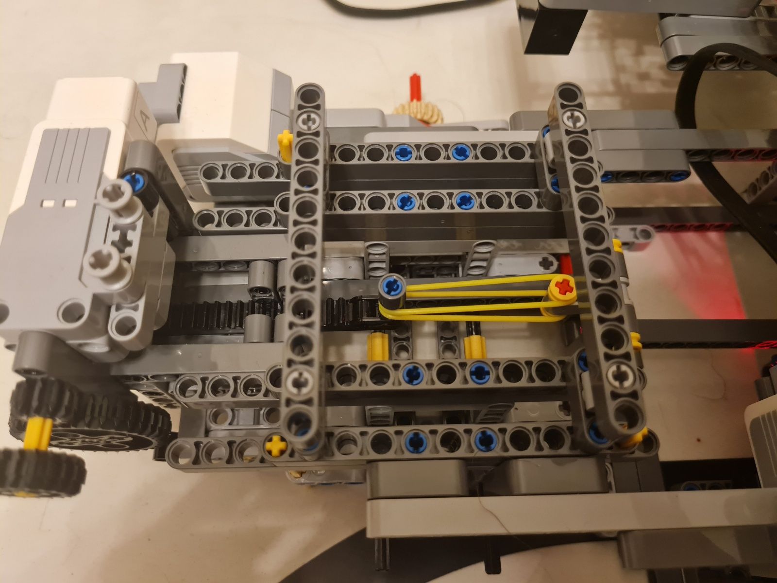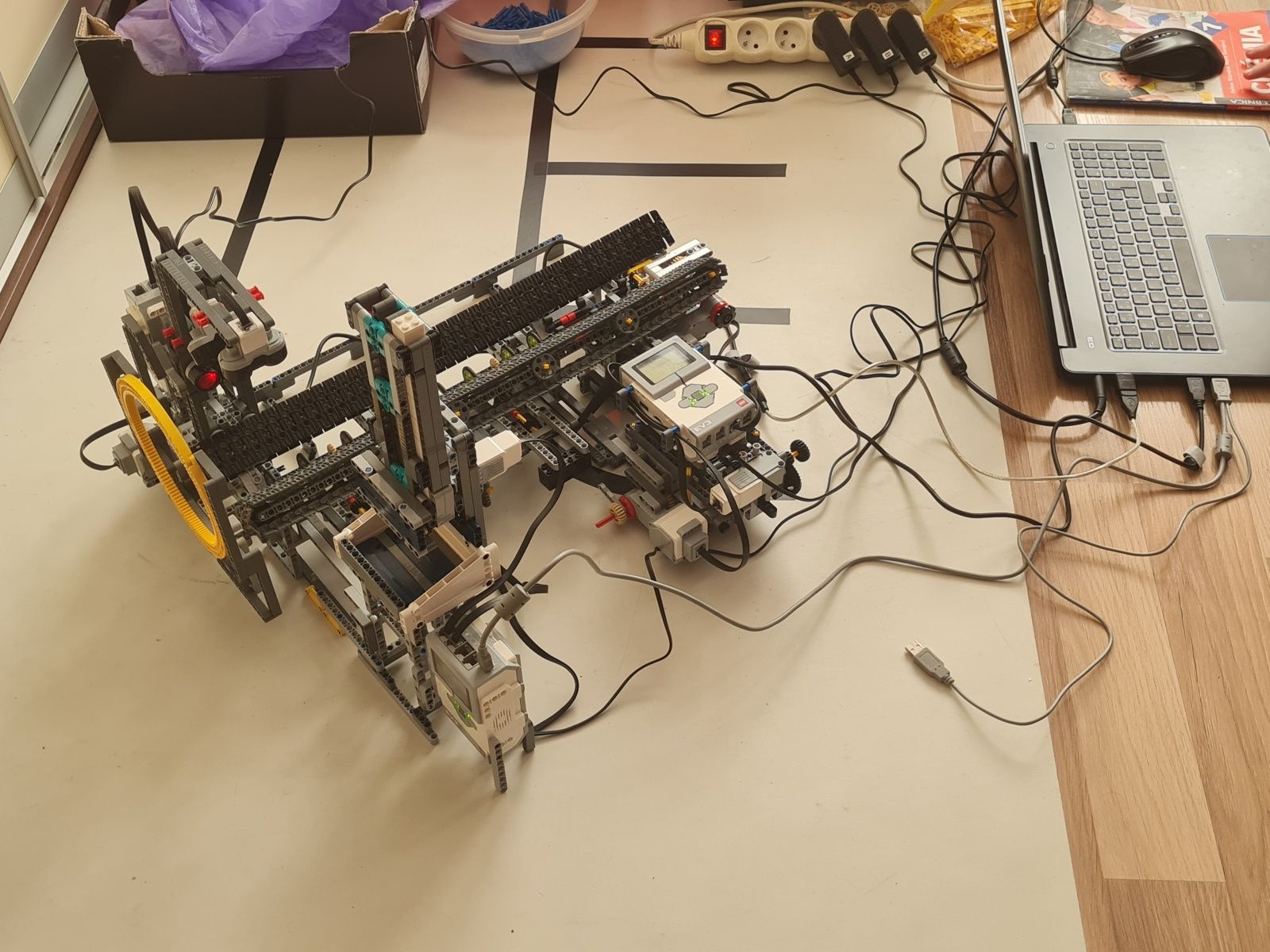 Robot sa skladá zo štyroch modulov, ktoré sú ovládané tromi riadiacimi jednotkami EV3. Hlavný modul s otvorom pre vkladanie fliaš má dva pásy na posun fliaš poháňané veľkým EV3 motorom, zarážku ovládanú stredným EV3 motorom a mechanizmus pre otáčanie fliaš ovláda veľký EV3 motor. Vážiaci modul má na sebe pripevnenú riadiacu jednotku EV3C, ktorá ovláda pásy a zarážku hlavného modulu, veľký EV3 motor pre vysúvanie váhy a stredný EV3 motor slúžiaci pre zisťovanie hmotnosti fľaše. Skenovací modul sa pohybuje po koľajničkách súbežne s pásmi hlavného modulu, má dva ultrazvukové snímače pre meranie rozmerov, jeden IR snímač na zisťovanie, či je na fľaši etiketa, veľký EV3 motor pre pohyb a riadiacu jednotku EV3B. Modul pre vydávanie žetónov tvorí riadiaca jednotka EV3A, stredný EV3 motor pre vydávanie dvoch typov žetónov (biely v hodnote 1 a červený v hodnote 3), k riadiacej jednotke je pripojený veľký EV3 motor pre otáčanie fliaš a optický snímač na zisťovanie značky vratnej fľaše (žltý prúžok).