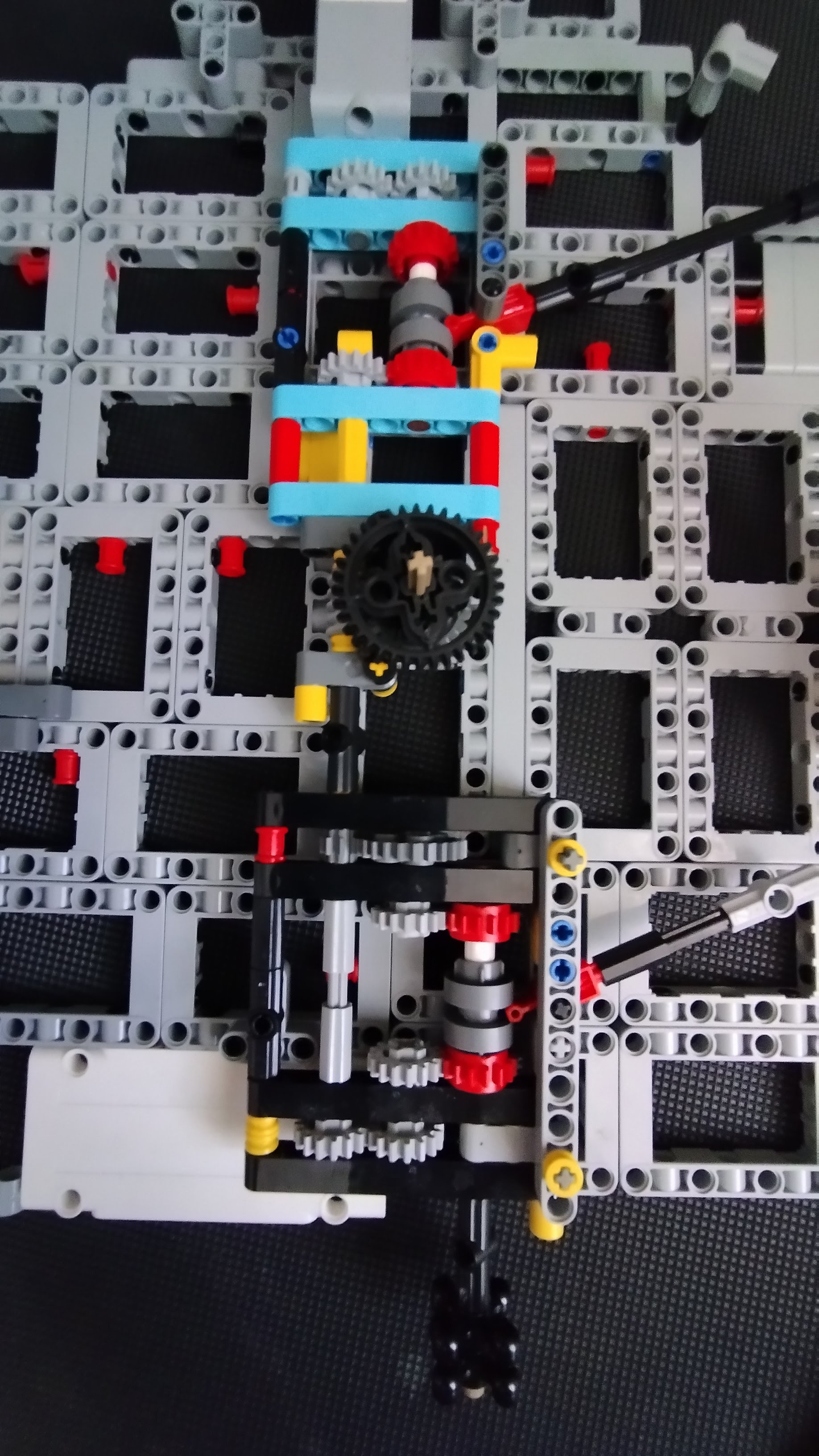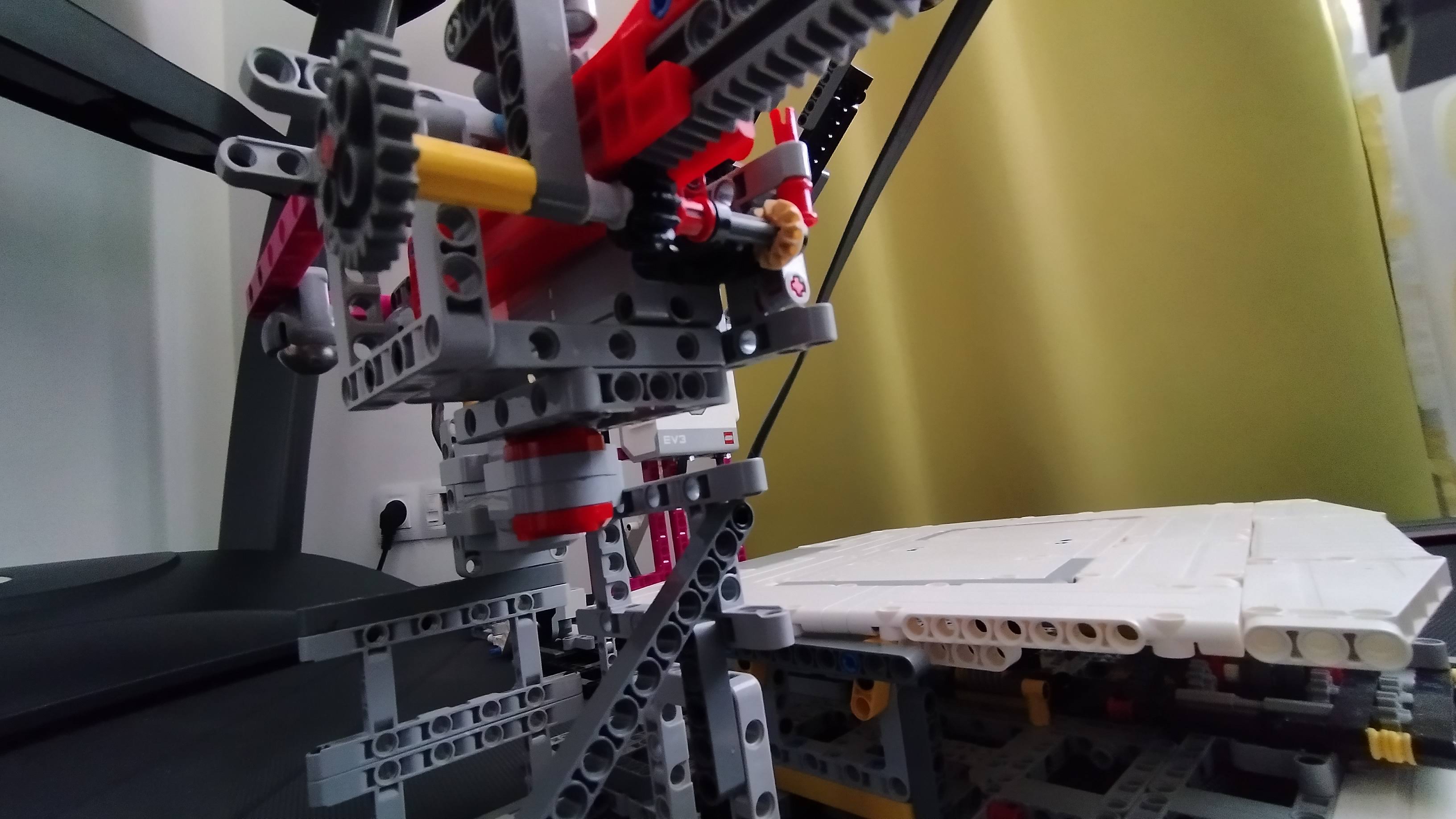 Pod otočnou plošinou je systém prehadzovačiek, ktorý dokáže odpojiť motor od podložky, a sprevodovať kolečko na manuálne ovládanie tak, aby s podložkou bolo spojené prevodom 3:1 alebo 1:1.