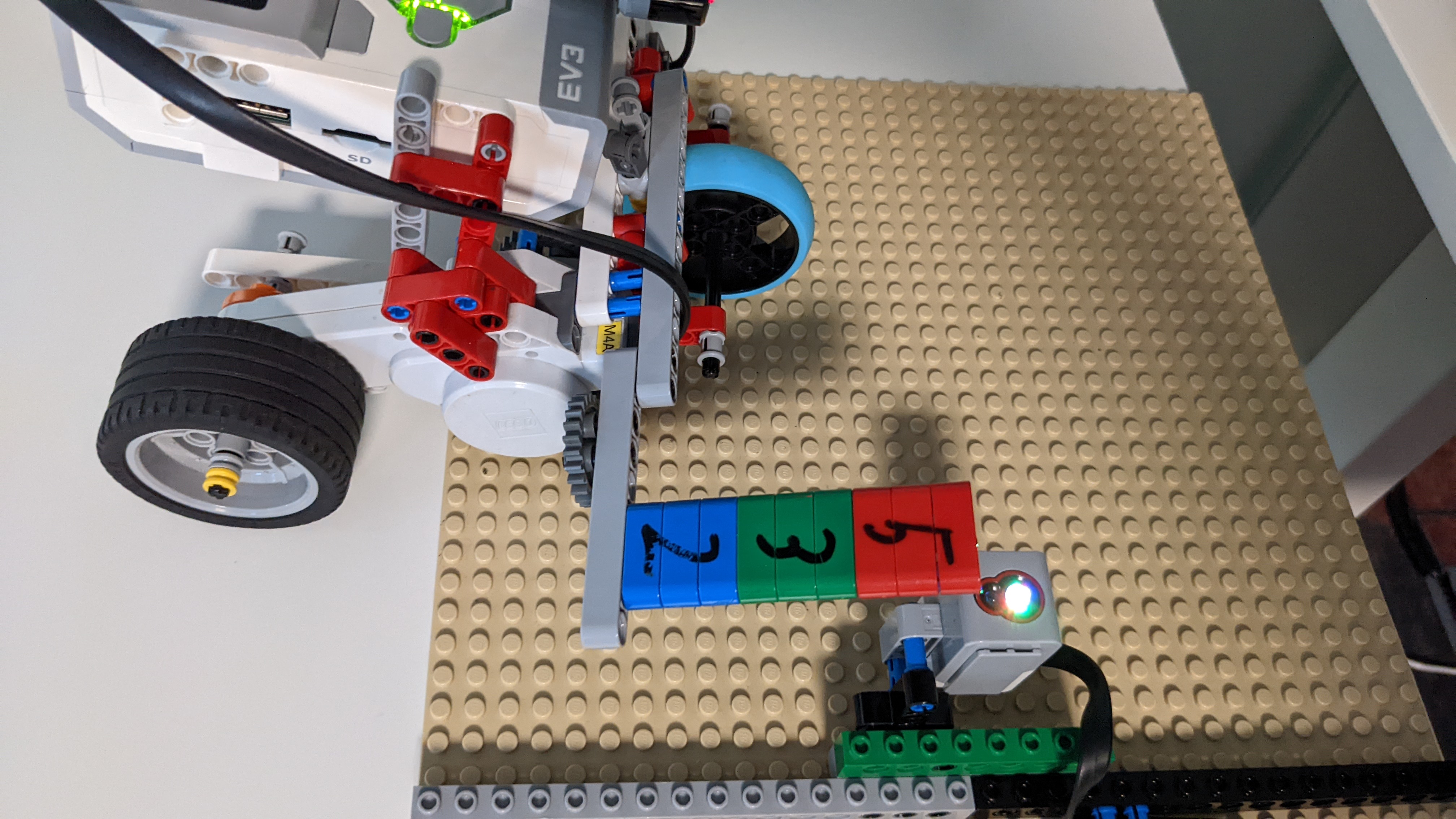 Color detector couldn't read some colours, so we were needed to re-choose a few times the code. We were doing it whole month, but actually it works! The code is quite simple. Just for the detection the robot moves slowly forward and program waits for each changed color in the key, but it has to be visible for a small time, because there was problem with false colors detected during transition. If the gate is open, the ultrasonic sensor will detect it and robot goes forward via the bridge. If the gate is not open, it moves back and tries again with the key.