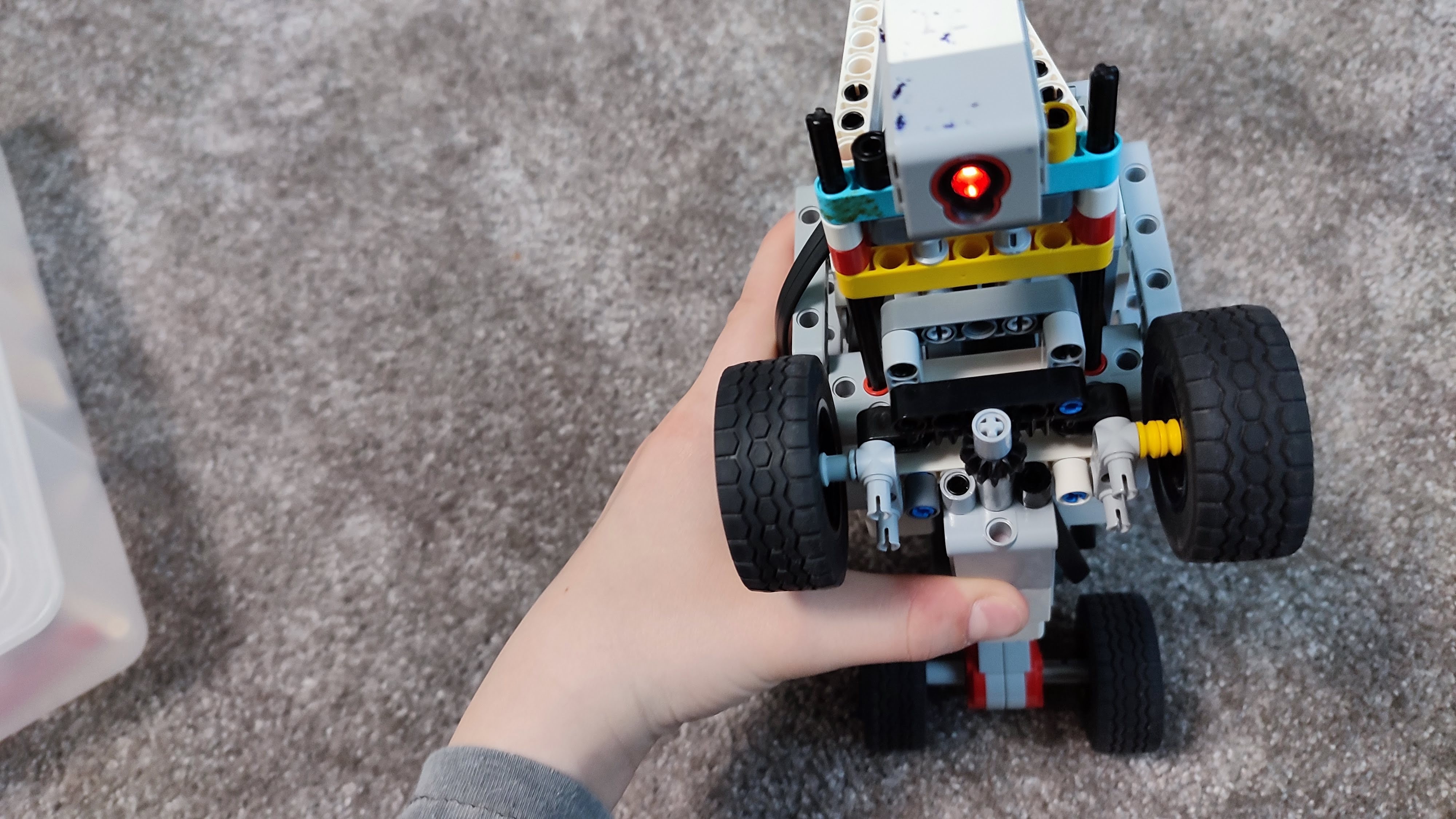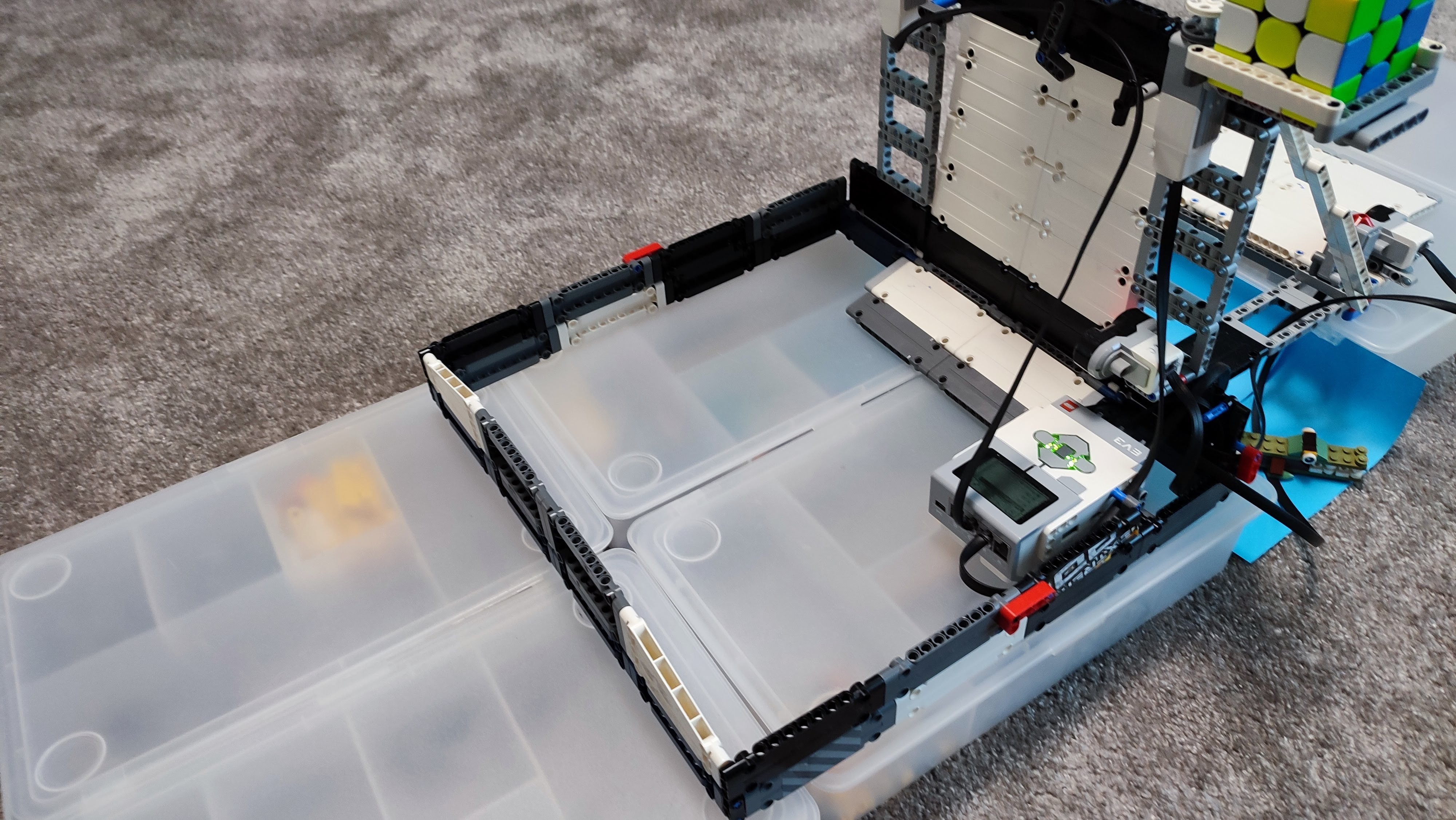 1. Myslím, že ste zostrojili skvelý zásobník na lieky a perfektný mechanizmus na dávkovanie. Je škoda, že ste to nedokončili úplne, ale aj tak vaše riešenie obdivujem. Myslím, že s tým natriasaním by to fungovalo aj s ozajstnými tabletkami. 2. Za úlohu Robot pomocník získavate 3b. Riešenie je veľmi zaujímavé. Páči sa mi konštrukcia "dávkovača". 3. Zostrojili ste mechanicky veľmi zaujímavý a obdivuhodný model, vidno, že ste sa na tom potrápili a aj dobre zahrali. Slávny didaktik Seymour Papert tomuto hovoril "hard fun" a tvrdil, že je to najlepší spôsob učenia sa. A dodnes to po ňom experti zo spoločnosti LEGO Education opakujú. Súhlasíte? :-) 4. Skvelé, že ste začali riešiť aj druhú úlohu. Mali ste to dobre rozbehnuté. Už len kúsok a bolo by to. Ste usilovní.