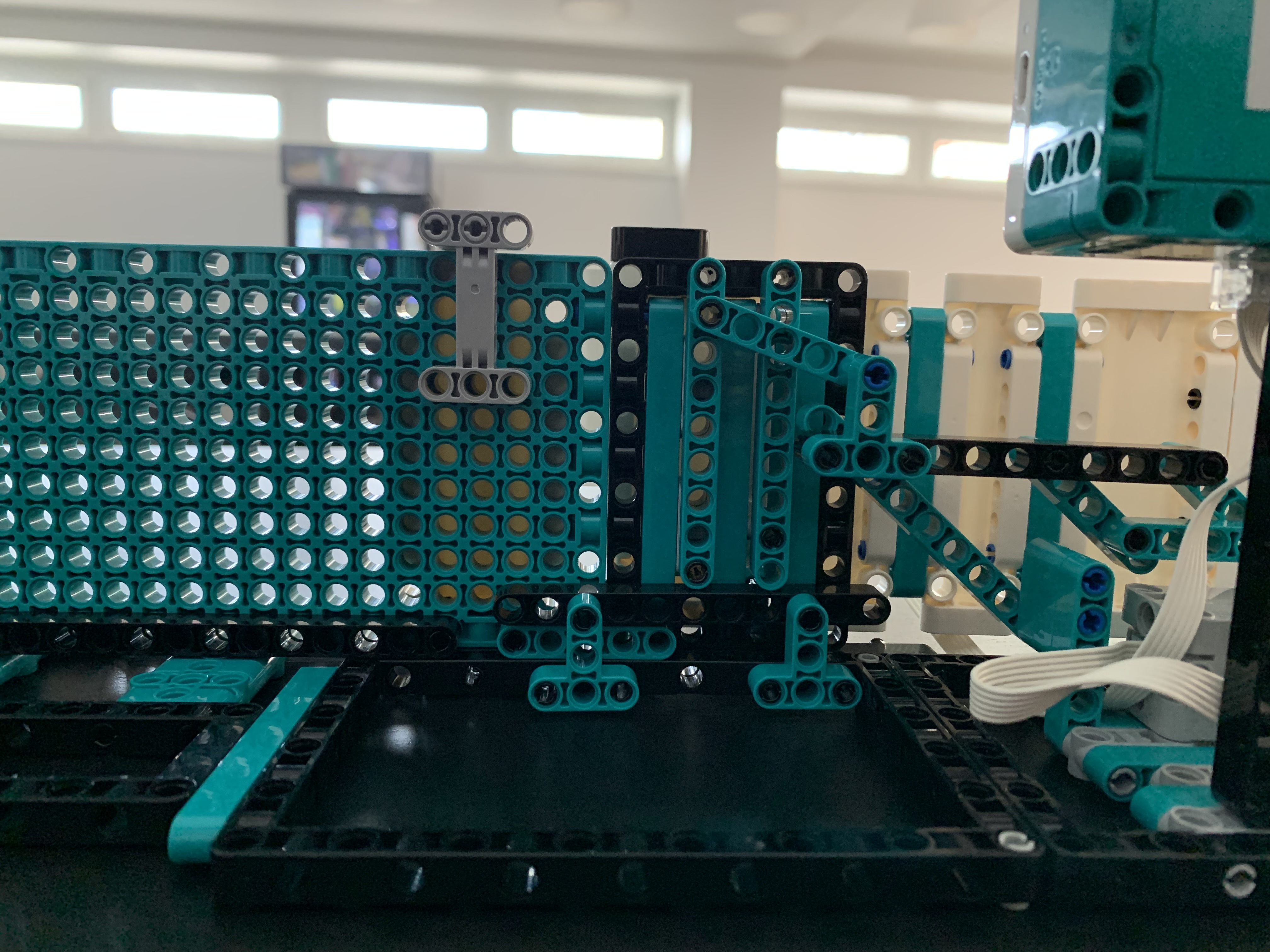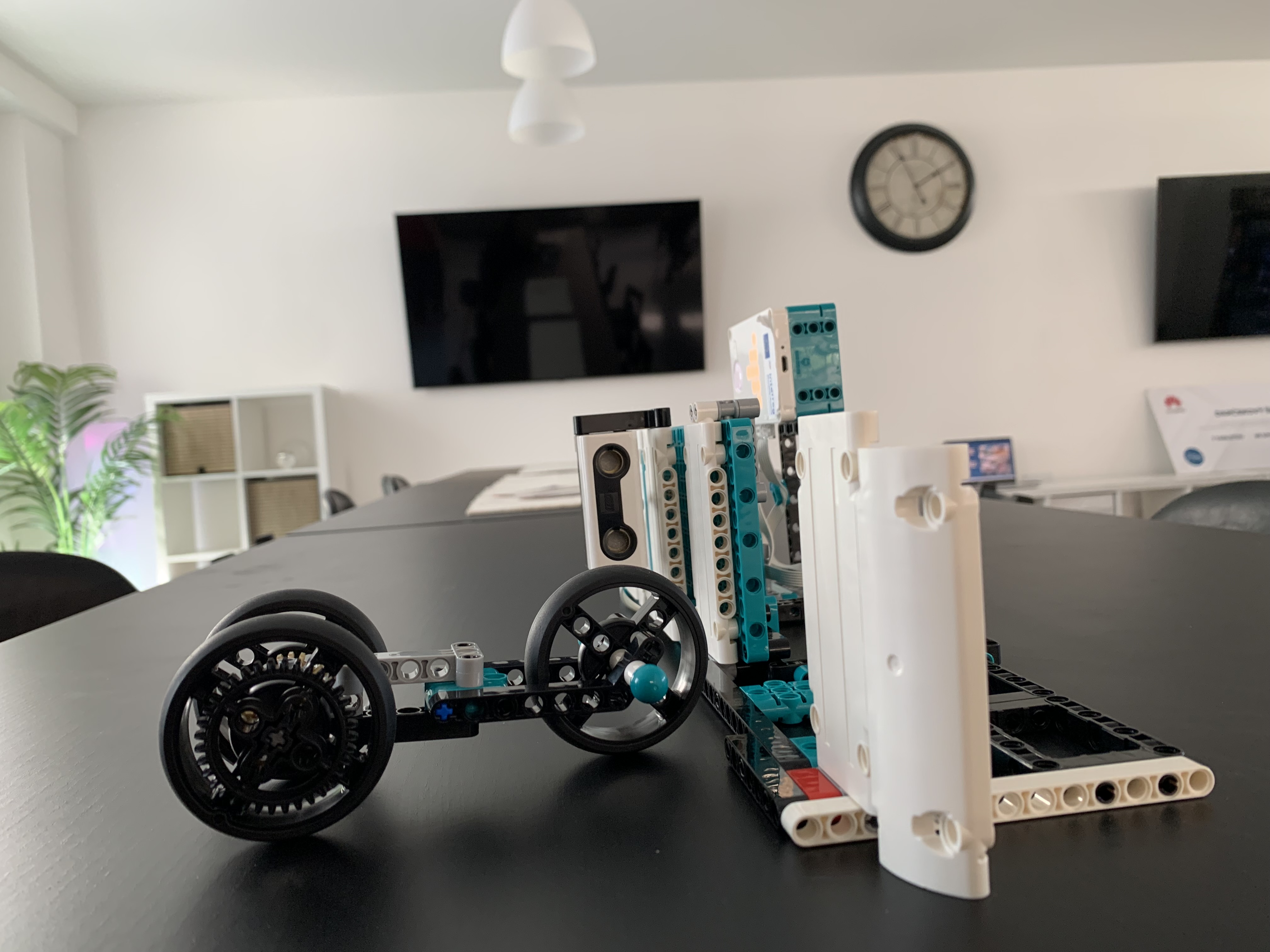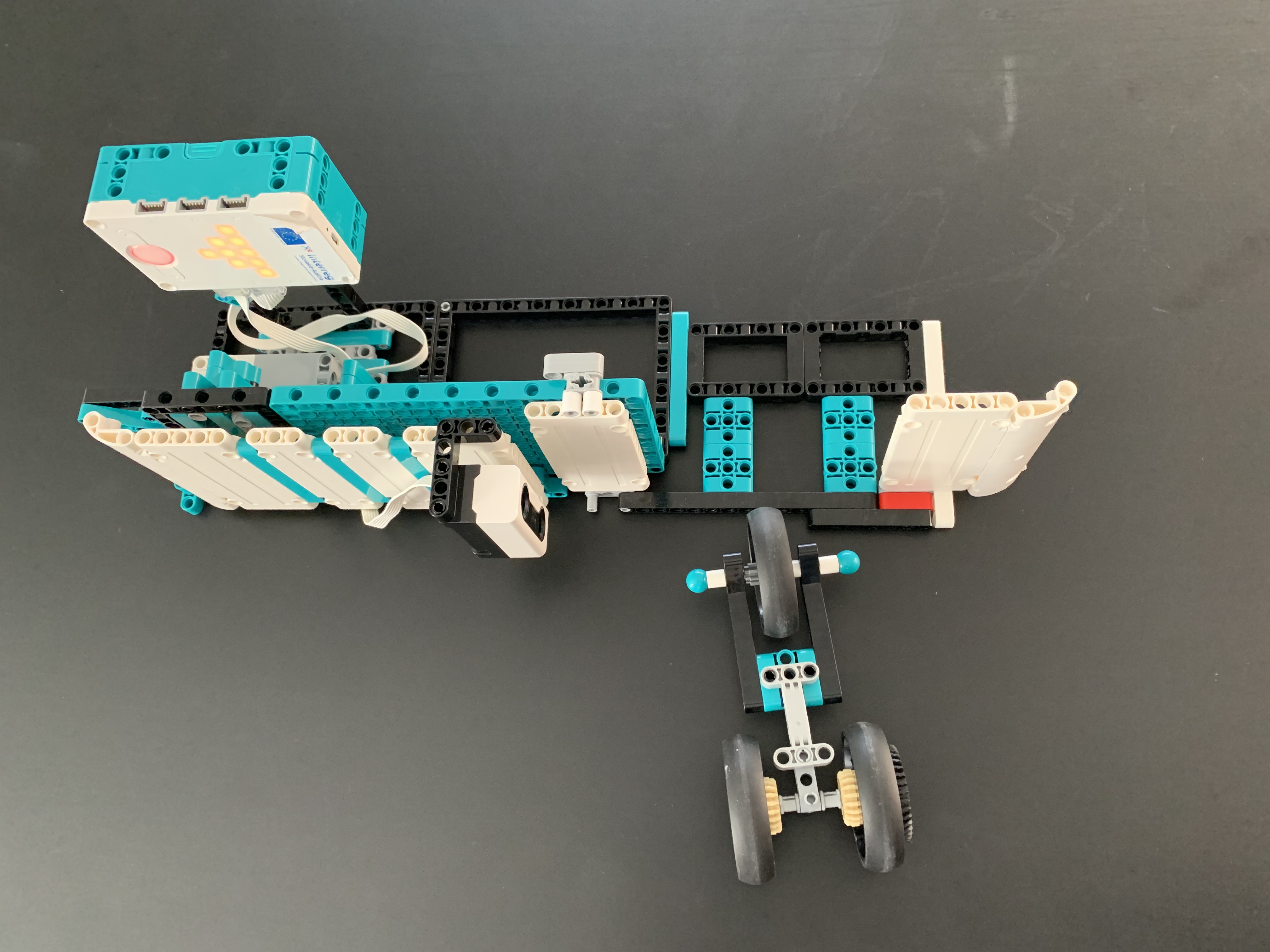 Naša automatická Lego brána pozostáva z jedného servo motora, riadiacej jednotky a ultrazvukového senzora. Nemali sme dalšiu riadiacu jednotku tak auto ktoré má vchádzať do brány je na ručný pohon. Brána funguje tak že keď sa auto priblíži, ultrazvukový senzor pred sebou zaznamená objekt. Senzor následne pošle signál do riadiacej jednotky, ktorá zobrazí šipku v smere otvárania a zapne servo motor na otváranie brány. Keď sa brána otvorí a auto prejde, o päť sekúnd senzor znova skontroluje, či pred ním nieje nejaka prekážka a ak nie brána sa zatvorí.