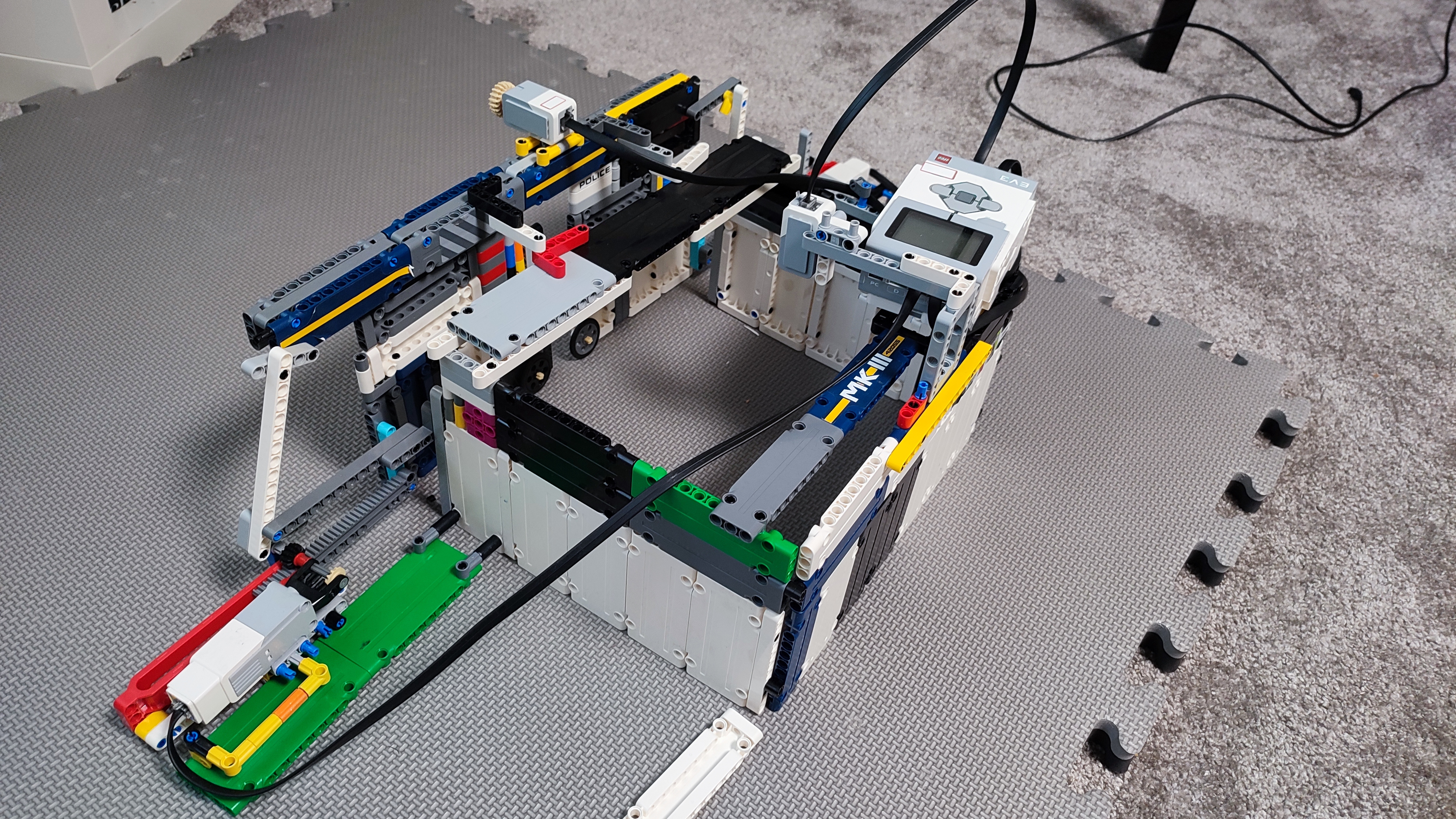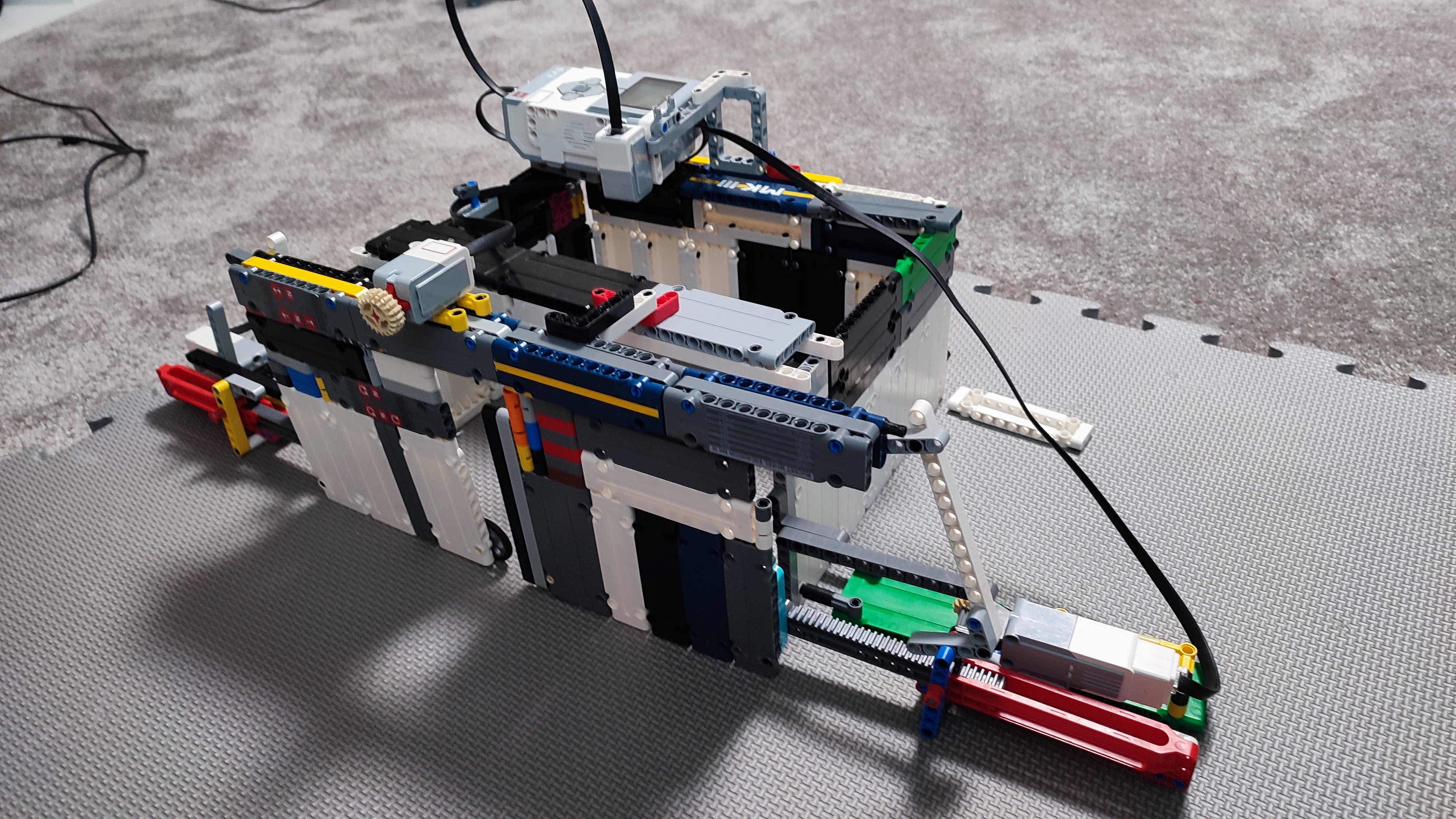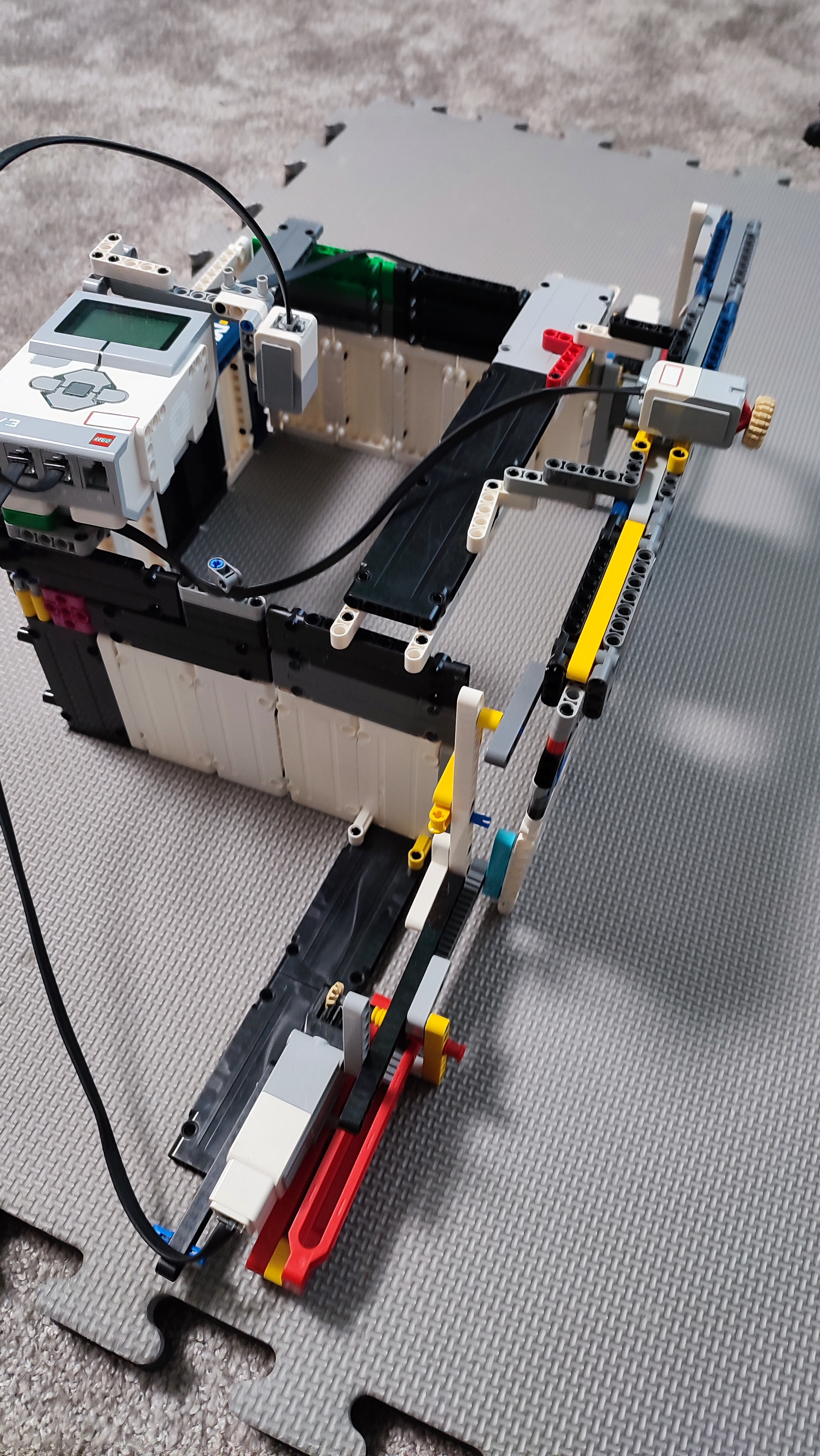 Brána funguje za pomoci dvoch medium motorov, jedného touch senzora a jedného color senzora.