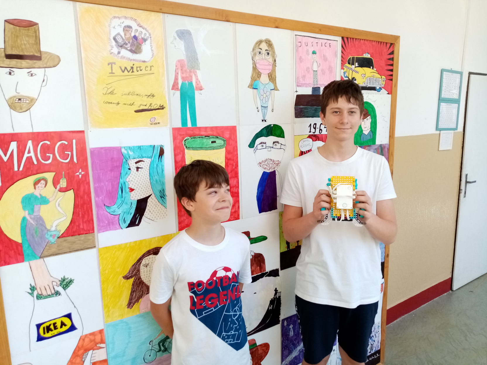 1. Super riešenie, veľmi sa mi páči, že máte v riadkoch rozličné rastliny rôznych farieb. Pekne máte vyriešené aj otáčanie, hoci nie vždy funguje celkom presne, ale na rozdiel od mnohých iných riešení máte viac ako dva riadky, čím sa samozrejme úloha komplikuje. Taktiež sa mi zdá, že jednu burinu ste nezdetekovali a nevidno na konci počet nájdených burín. Napriek tomu je to však výborné riešenie. 2. Veľmi pekné riešenie. Robot vydáva zvukový signál pri identifikovaní buriny, napočítava počet burín a s prehľadom "jazdí" po riadkoch. 3. Robot je pekný, kompaktný a efektívny, vyhľadáva a označuje burinu, výborne. Drobná rezerva je tam s tým vylepšením navigácie. Jednotlivé hriadky na poli môžu byť nejak vyznačené, aby sa po nich robot pohyboval spoľahlivejšie, ak si nevie poradiť inak. Ďakujeme za dobrú prácu. 4. Trošíčku ste bojovali s pohybom, aby bol priamy ale nakoniec ste to zvládli. Super. Jedine som úplne dobre nevedela prečítať, či robot zobrazil počet buriny na záver, alebo nie.