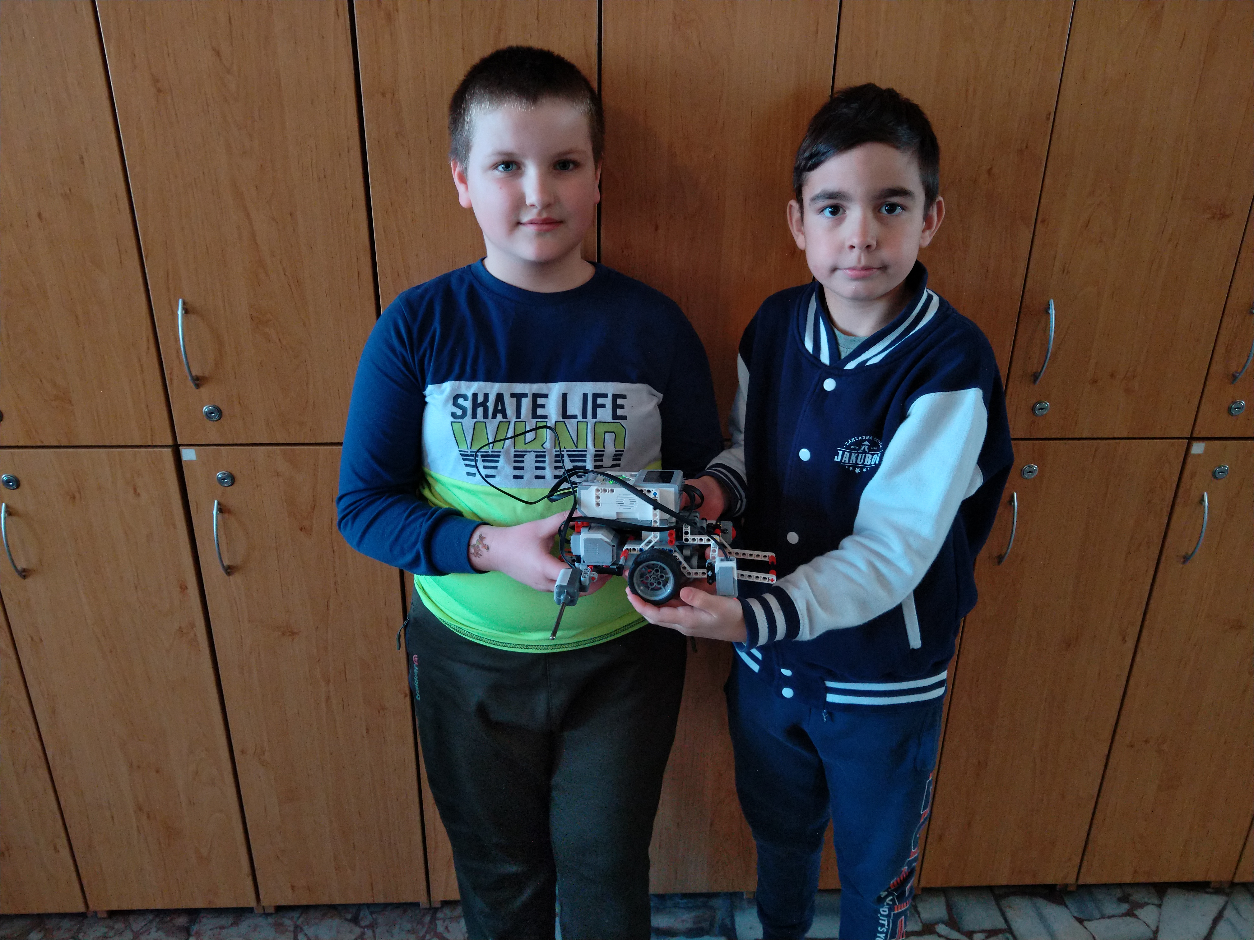 1. Využitie snímača teploty je zaujímavé obohatenie, Konštrukcia je trocha rozkývaná. Vo videu by sme radi videli aj viac ako jeden jediný úspešný pokus. 2. Za úlohu hasiči zajac získavate 3b. Vymysleli ste zaujímavé riešenie :) 3. Chlapci, pekné riešenie máte. Ešte by to chcelo vylepšiť prichytenie misky, ale fungovalo vám to. Nabudúce poprosím natočiť na video aspoň dva pokusy, aby sme vidleli, že vám to ozaj funguje naozaj a nie len náhodou ;) 4. Vidím, že nielen plameň bol zahasený, ale ešte aj okoloidúca mačička sa z misky napije. :-) Aj keď na druhej strane, ak by bola miska trochu lepšie upevnená, tak by sa nemusela nekontrolovane pri hasení zosypať dolu. Použitie teplomera bol dobrý nápad, dúfam, že ho plameň priveľmi neočmudil. Vždy nás poteší, keď je na videu viacero sitácií, aby sme videli, že program funguje spoľahlivo. Teraz keď už máte skúsenosti s robotom podľa návodu, verím, že dobre zvládnete poskladať robota aj podľa svojej vlastnej predstavy, ktorý môže manipulačné úlohy zvládnuť presnejšie.