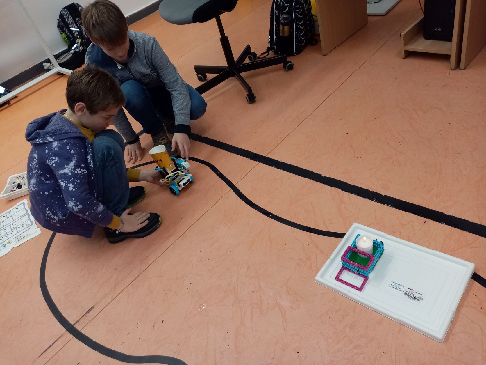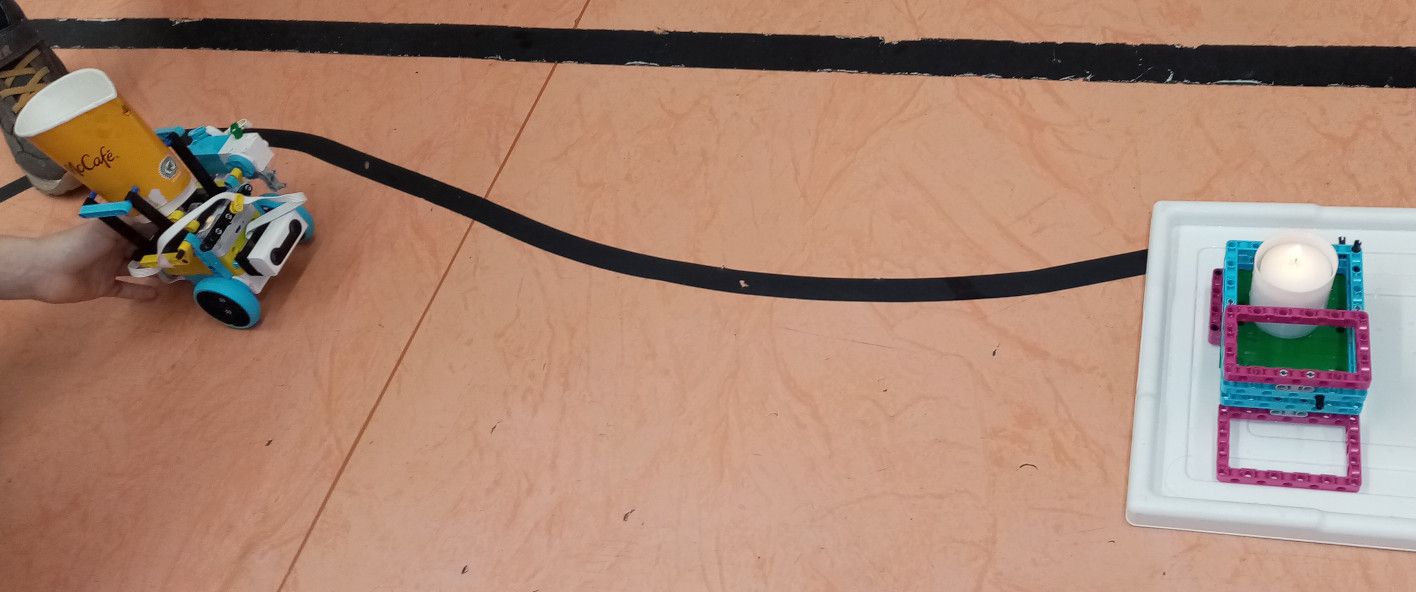 1. To zameriavanie je super, hoci v praxi by možno medzitým čosi cenné zhorelo. Rozmýšľali ste aj nad použitím svetelného senzora namiesto ultrazvukového? 2. Za úlohu hasiči získavate 3b. Zaujímavé riešenie aj keď trošku nebezpečné hasenie. 3. celkom bravúrne sa zhostili úlohy. Ešte by to ale chcelo trošku doladiť. Aj uchytenie pohárika aj nasmerovanie :) 4. Pekné riešenie aj s výpočtom na zarovnanie pri sviečke. Plameň je zahasený a na videu vidno, že robot funguje v rôznych situáciách. Veľa zdaru v ďalších úlohách!