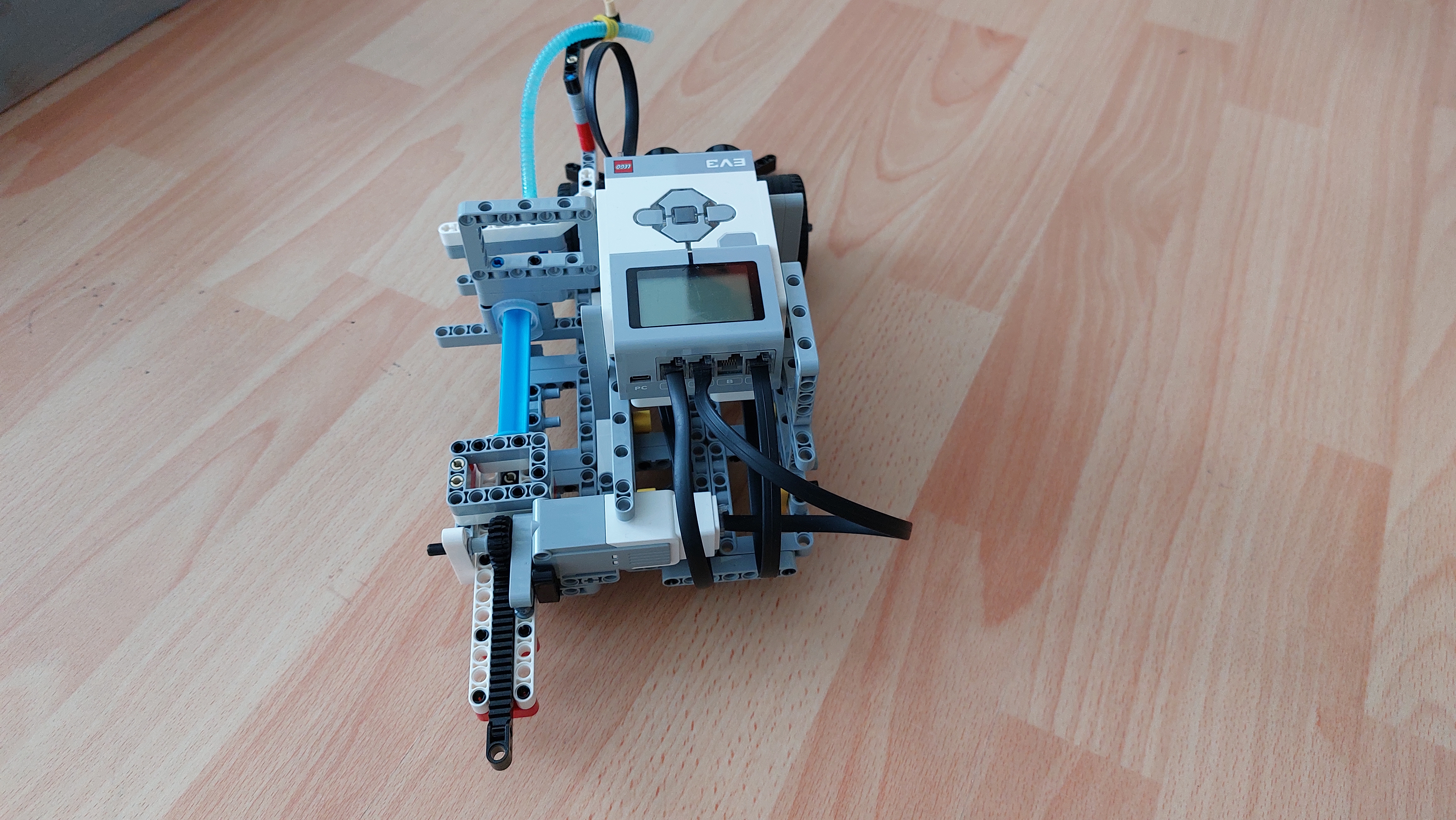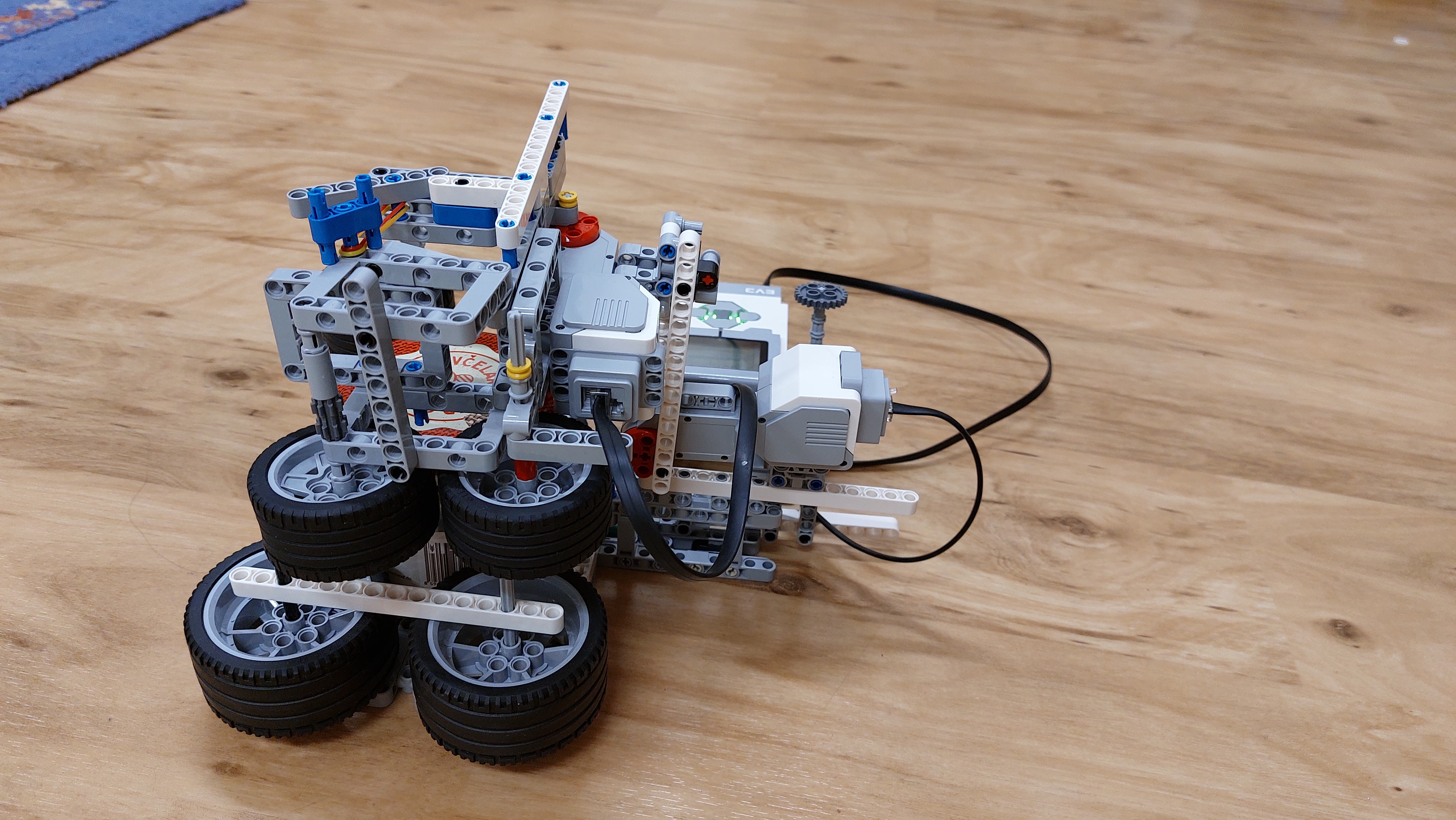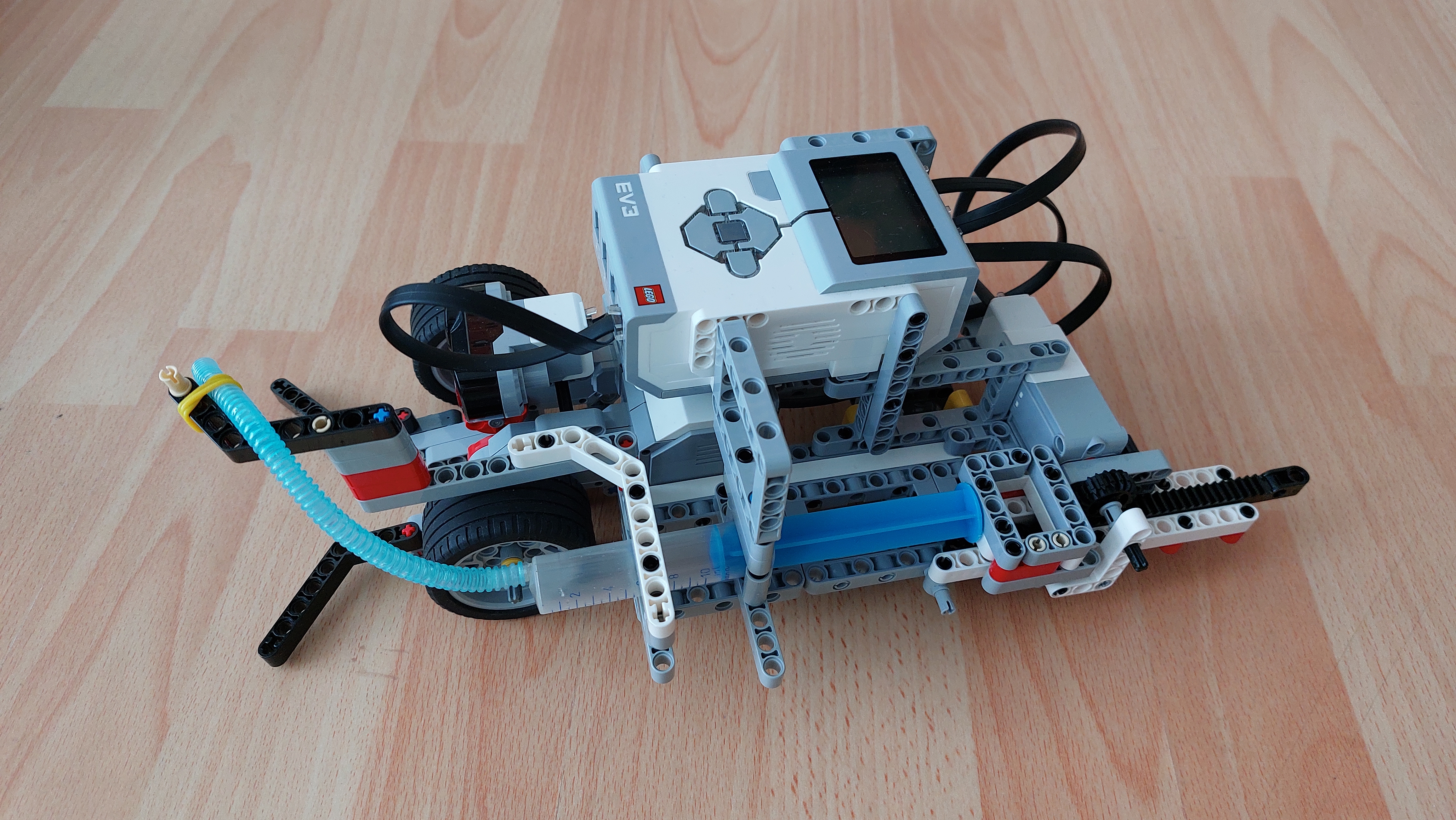 Náš robot-hasič hasí plameň sviečky pomocou striekačky, ktorá sa stlačí pri nájdení plameňa. Postaviť ho bolo síce zložité, ale podarilo sa nám to.