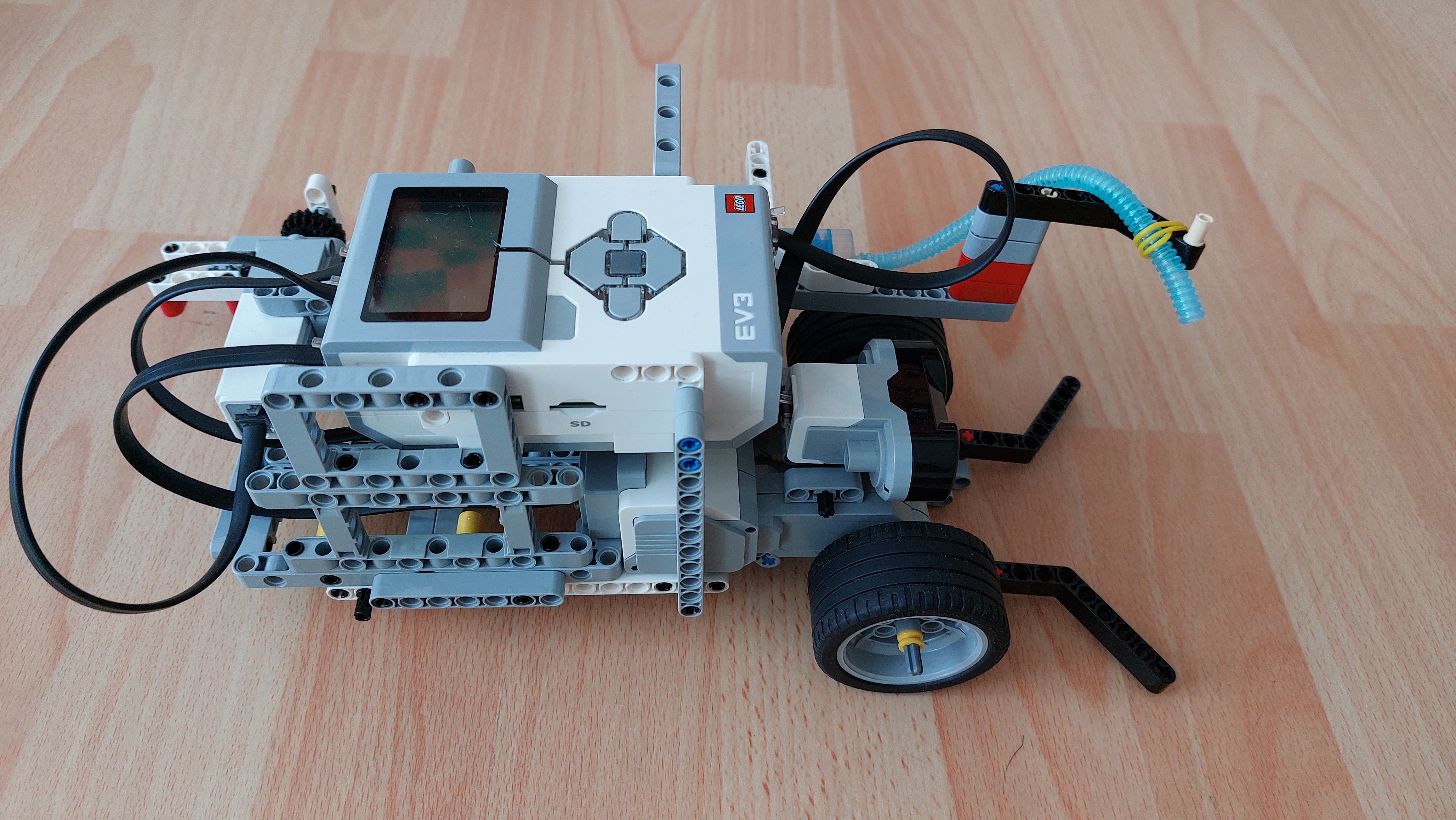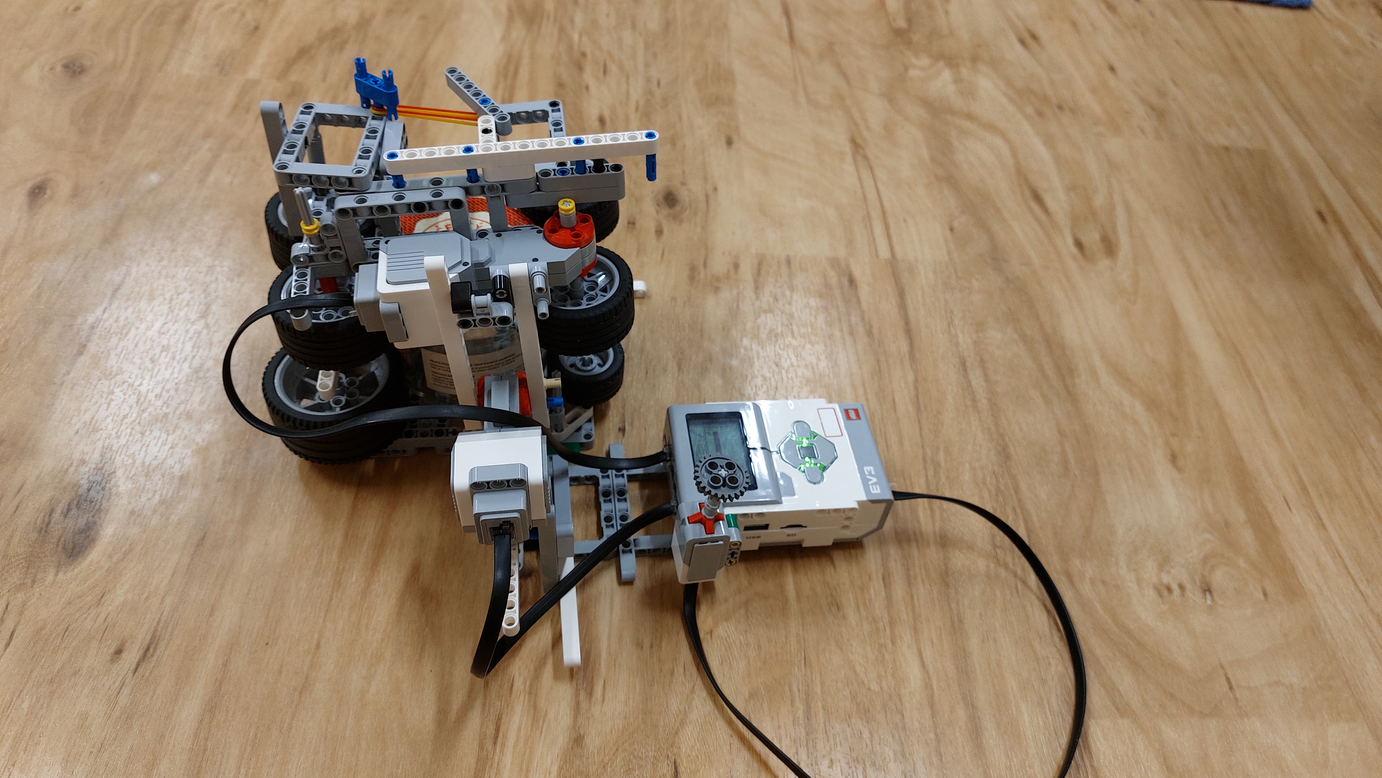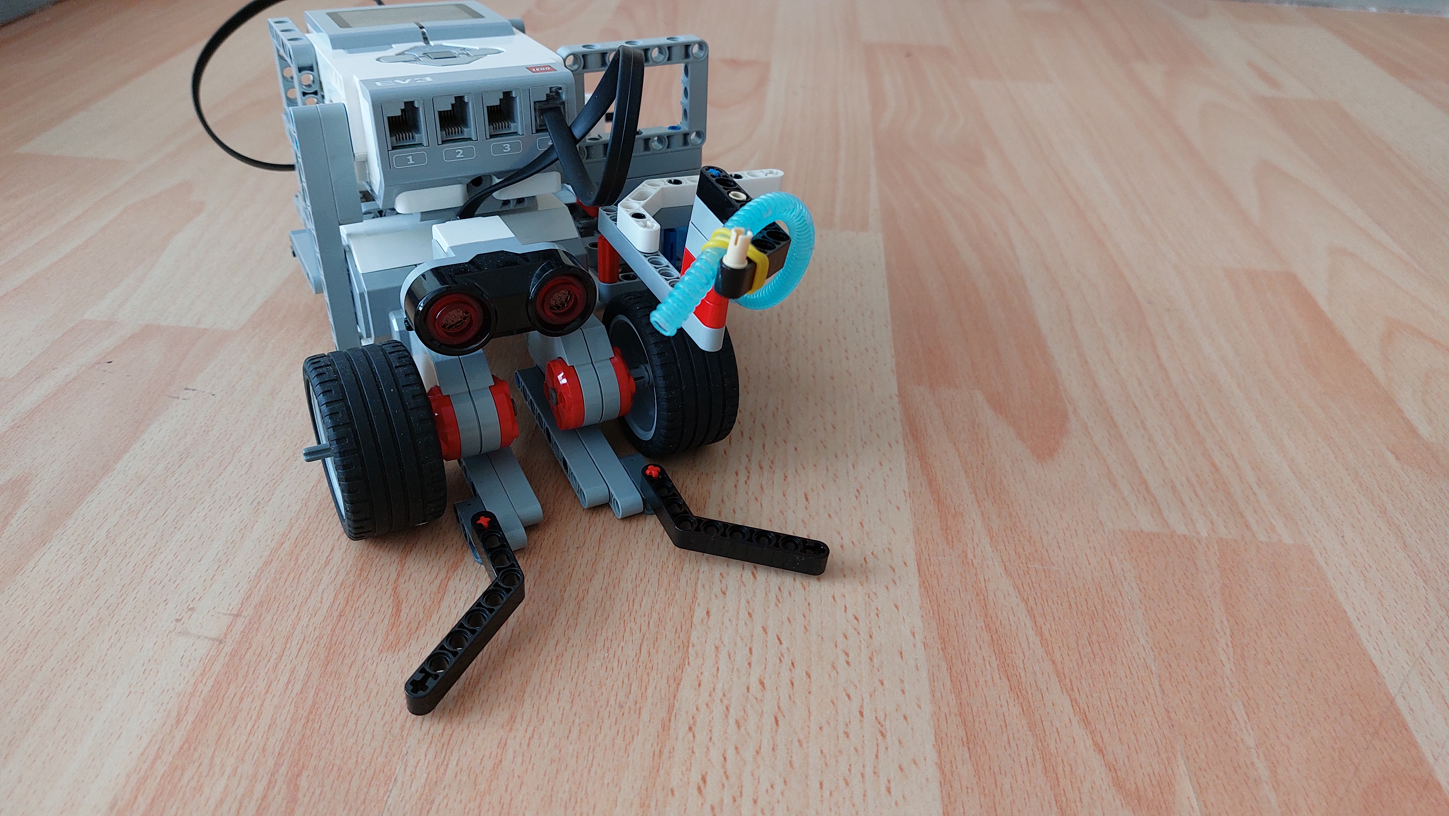Robot sa otáča dookola, kým vo vzdialenosti do 50 cm nájde požiar. Pretože senzor zaznamená požiar nie priamo pred sebou, tak sa hasičské auto ešte trochu natočí. Bolo veľmi ťažké trafiť plameň, preto má pri kolesách dve šikmé lego kocky, aby sa požiar dostal pred hasičskú hadicu. Keď sa robot priblíži k požiaru, zastaví a spustí zo striekačky vodu, ktorá uhasí požiar.