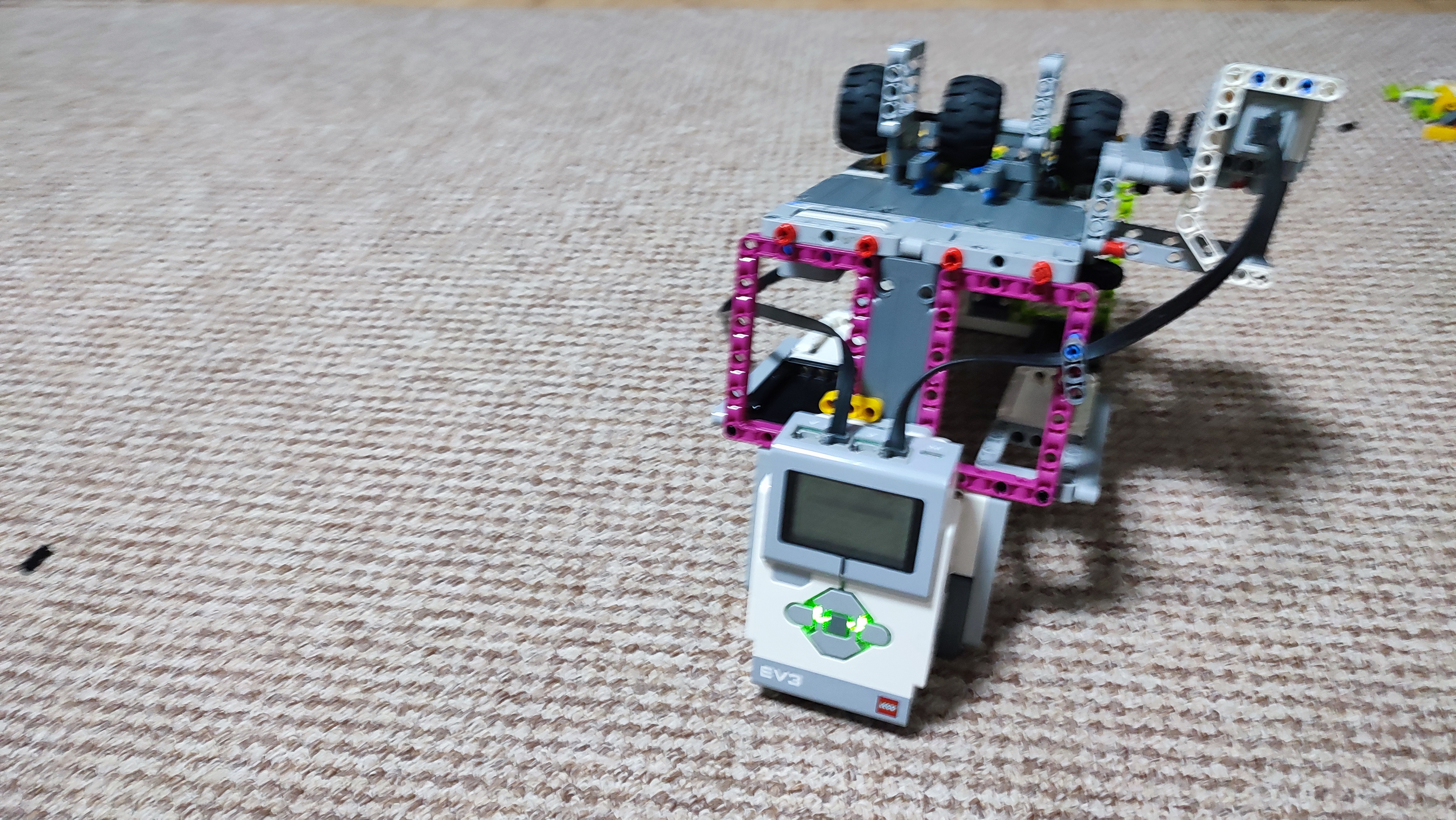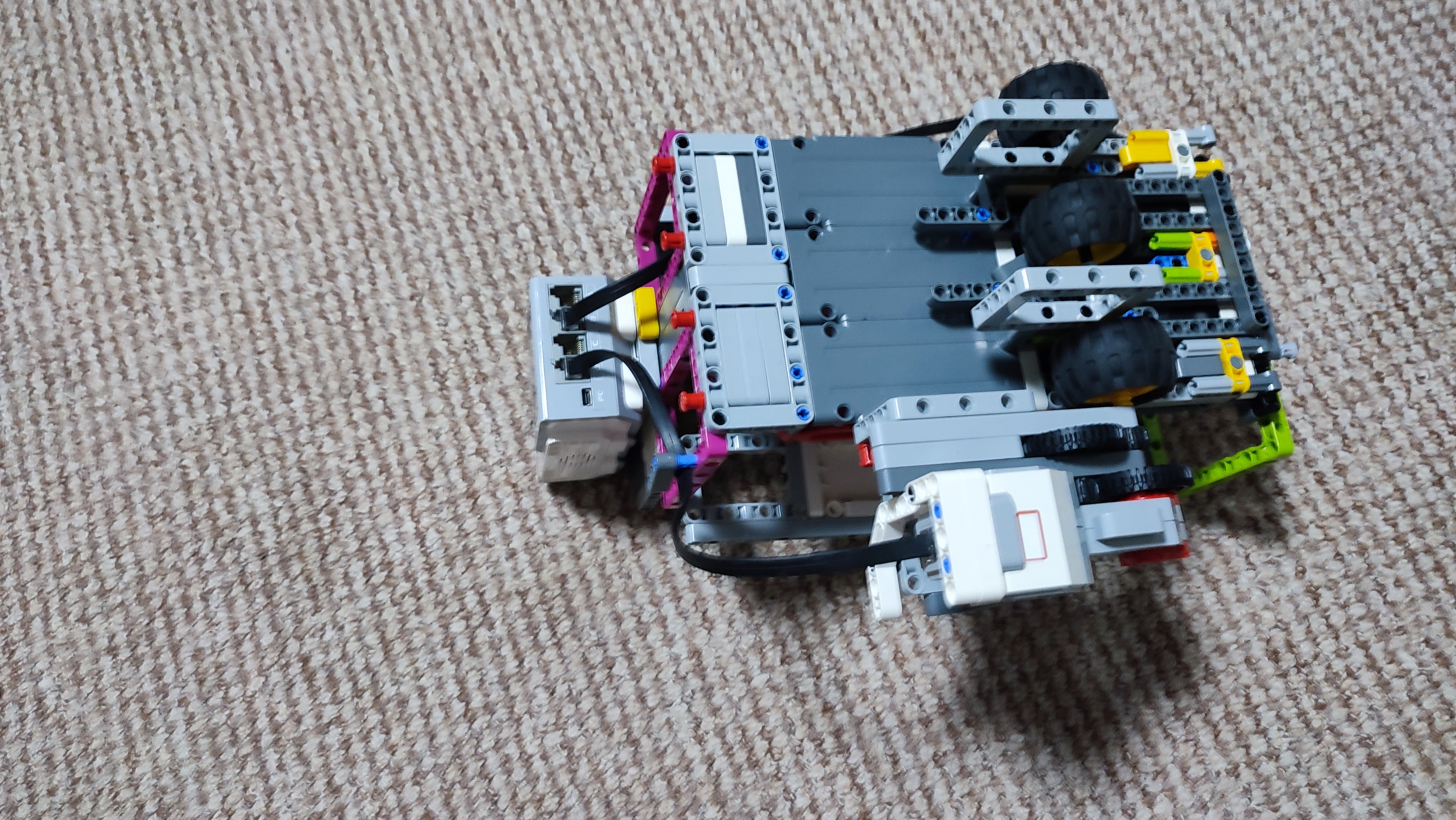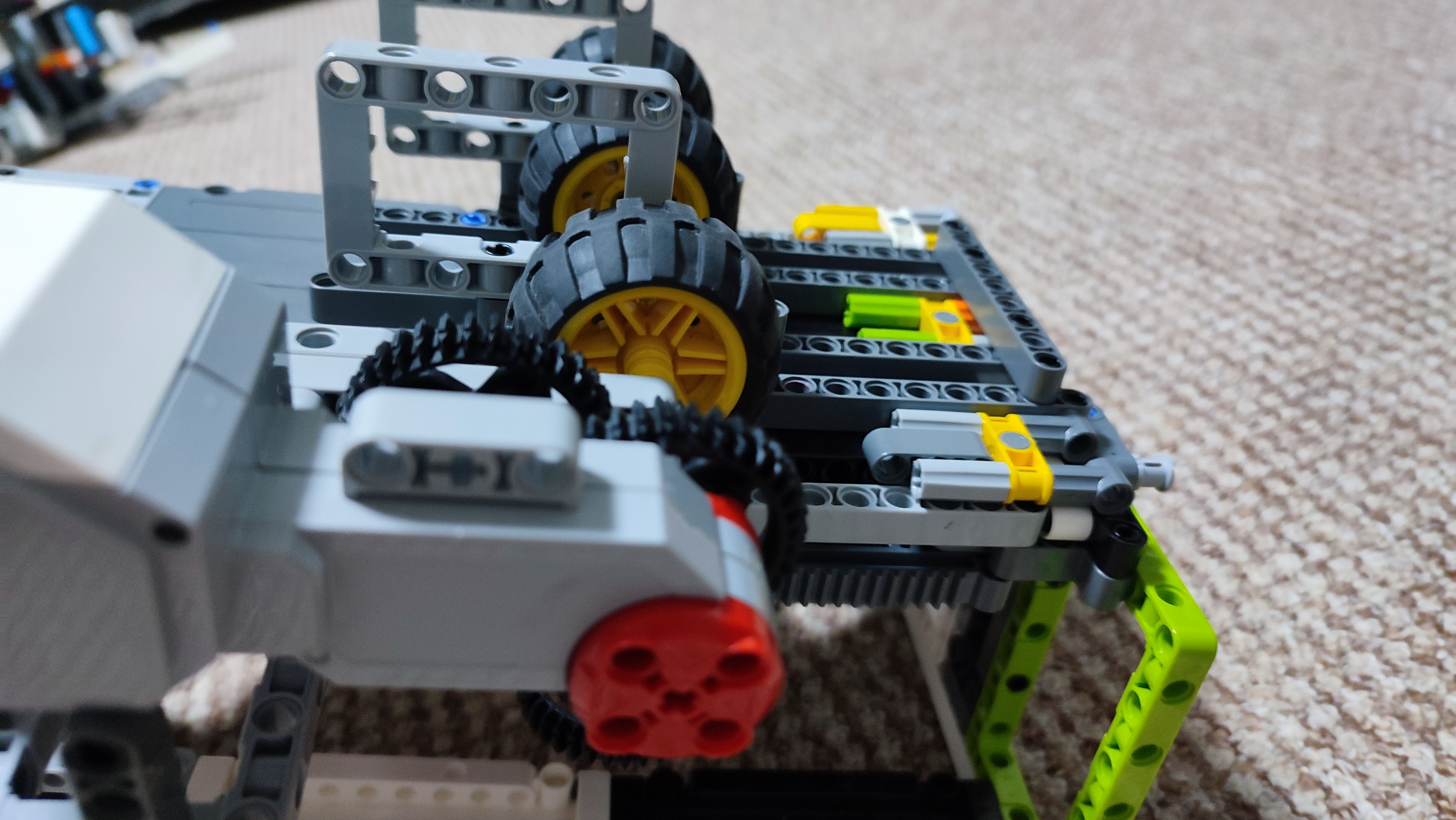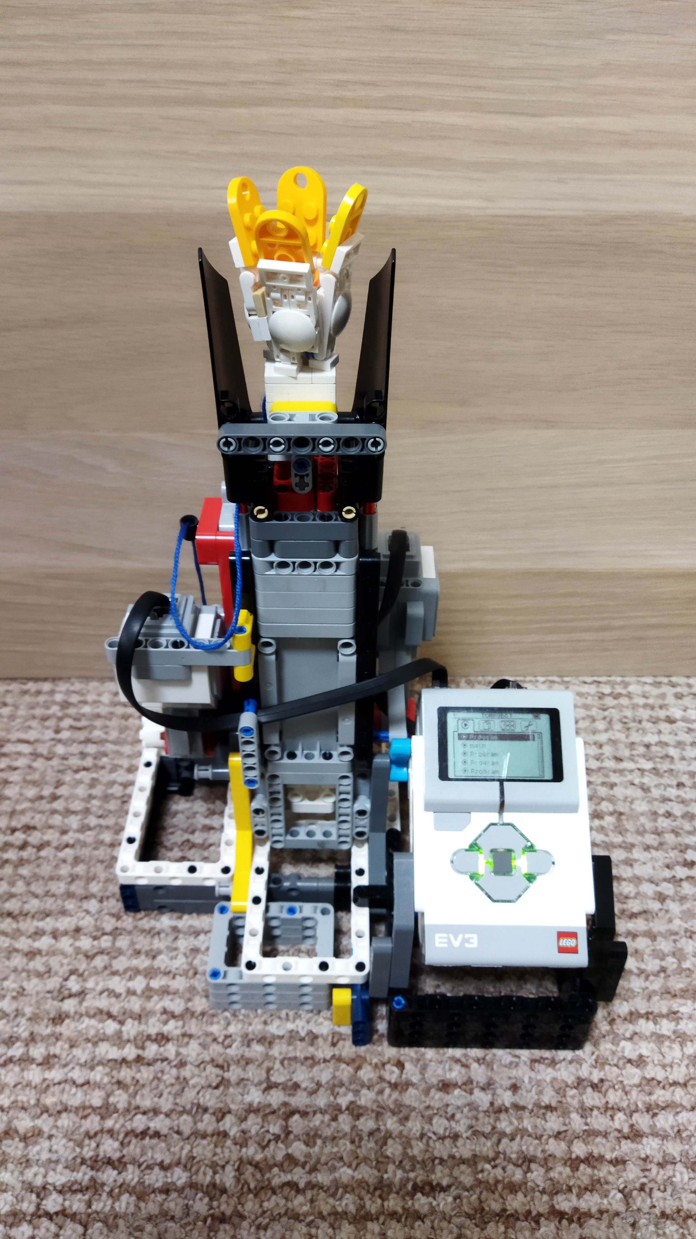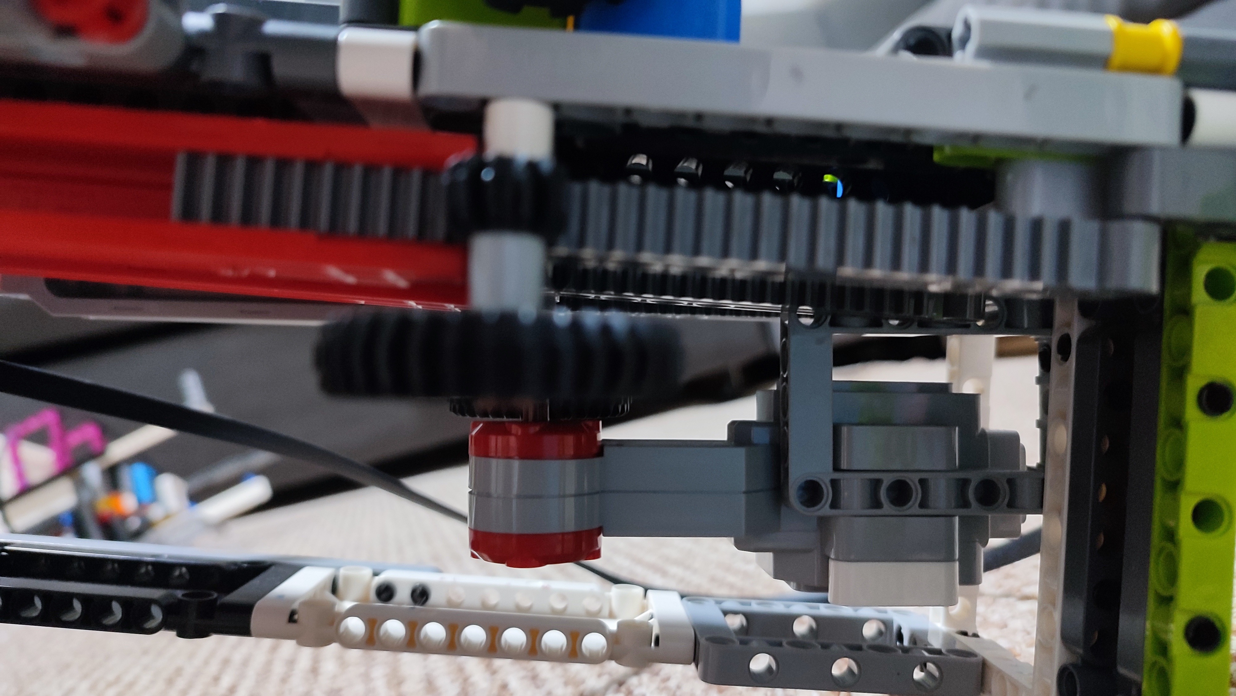 Môj robot sa skladá z 2 väčších častí.1. časť - Zásobník. Náš zásobník sa skladá z 3. trubiek, ktoré sa naplnia lego technic skladačkami 3x1 (krúpy). Na tieto trubice sú zdola pripevnené ďalšie tri trubice, ktoré ale sú pripevnené o jednu bodku mimo. Tým pádom tam musí byť niečo, čo tie skladačky (krúpy) posunie do dalších už spomínaných trubíc .2. časť - Vystrelenie. Keď skladačka vypadne z tej druhej trubice, padne priamo do vozíčka, ktorý pomocou ozubených tyčiek posunie skladačku (krúpu) pod koleso. To krúpu vystrelí. Tento proces sa opakuje, postupne sila vystrelenia slabne. Týmto spôsobom by sa mala rovnomerne pokryť nejaká plocha.