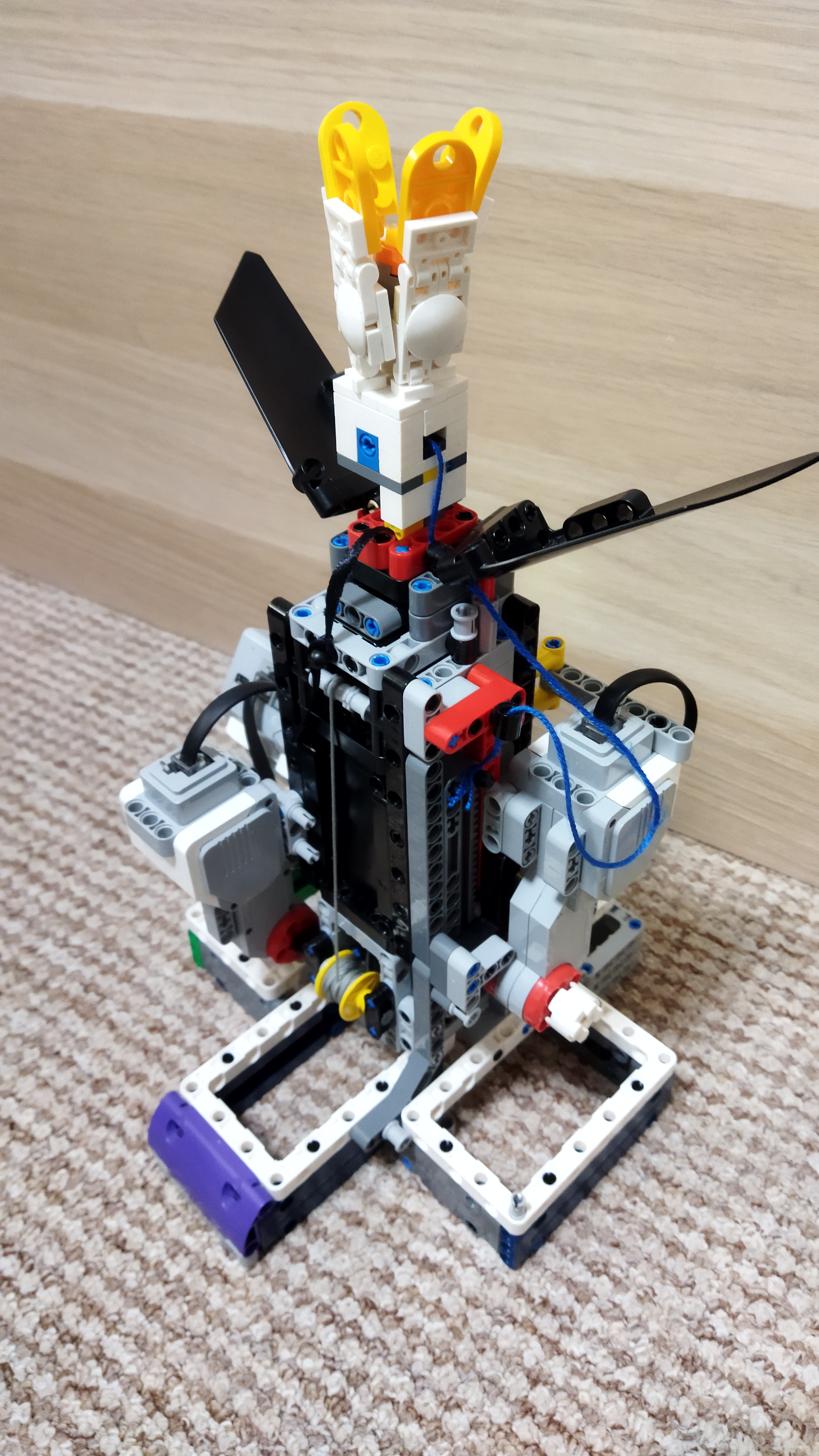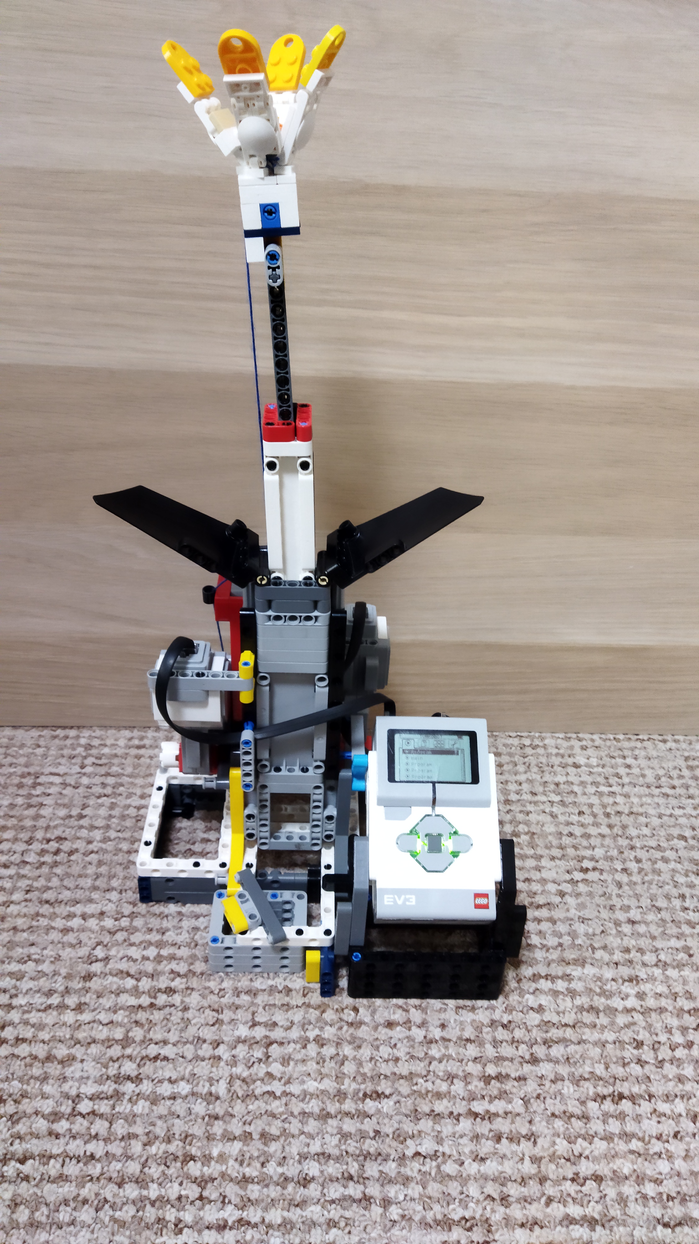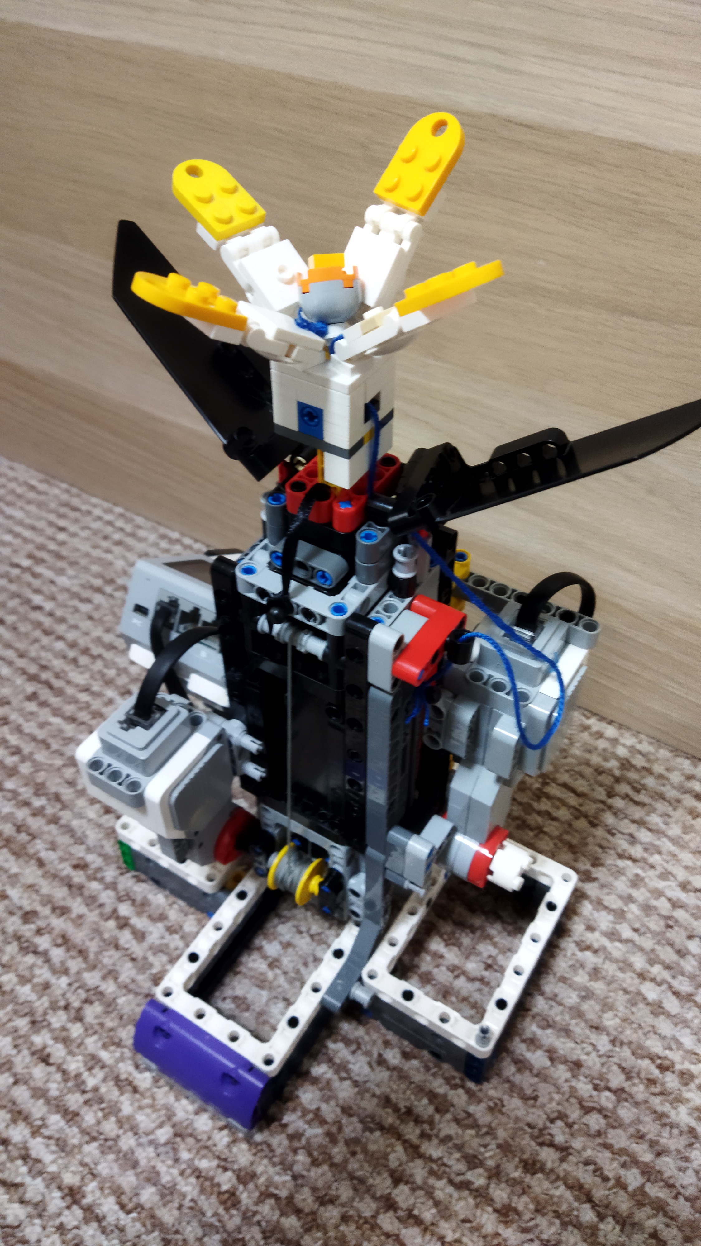Náš robot je z väčšiny mechanický. Prvá časť stonky je pomocou šnúrky napojená na motor, druhá časť so šnúrkou napojená na pevný podklad na spodku. Na vyťahovanie je použitý princíp kladky.