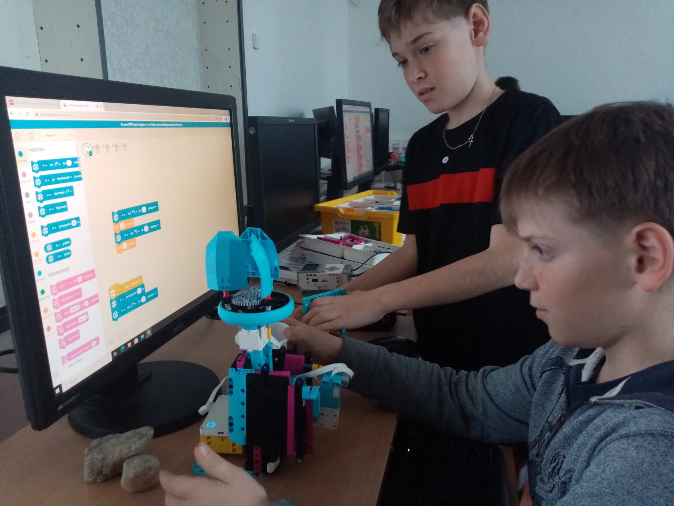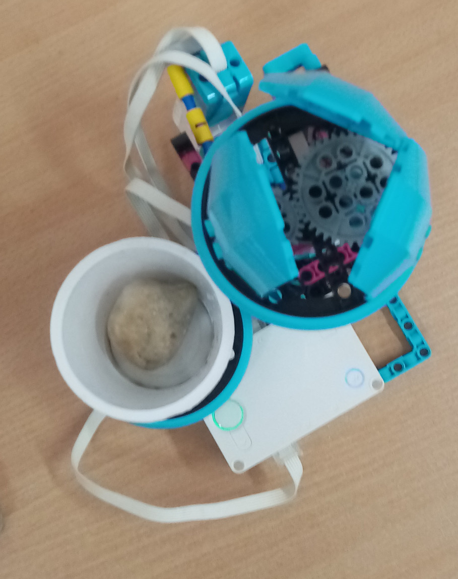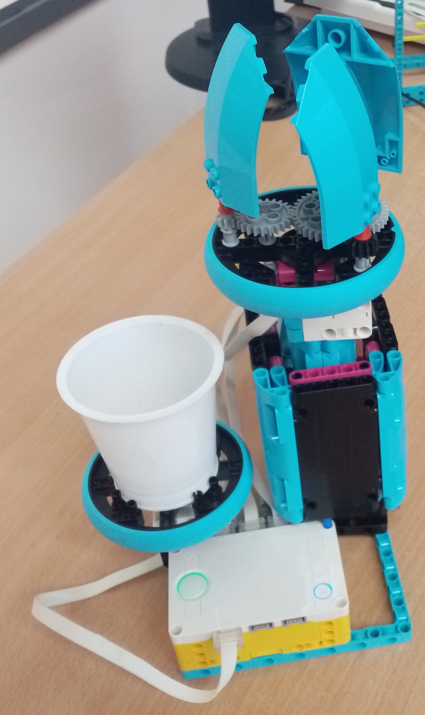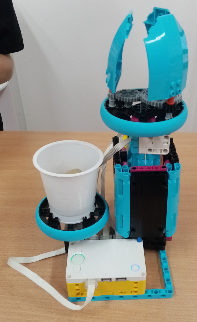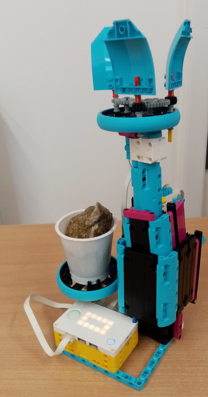 Zostrojili sme narcis, ktorý práve kvitne. Zachytili sme ako postupne rastie a otvorí lupienky svojho kvetu potom, čo dostane vlahu. Lupienkami s prevodmi aj tenkou stonkou pohybuje malý motor zo Spike Essentials. Stredný motor pohybuje hrubou stonkou - pomocou hrebeňa a ozubených kolies. Narcis začne rásť po silnom zatlačení tlačidla váhou kamenia a naliatej vody.