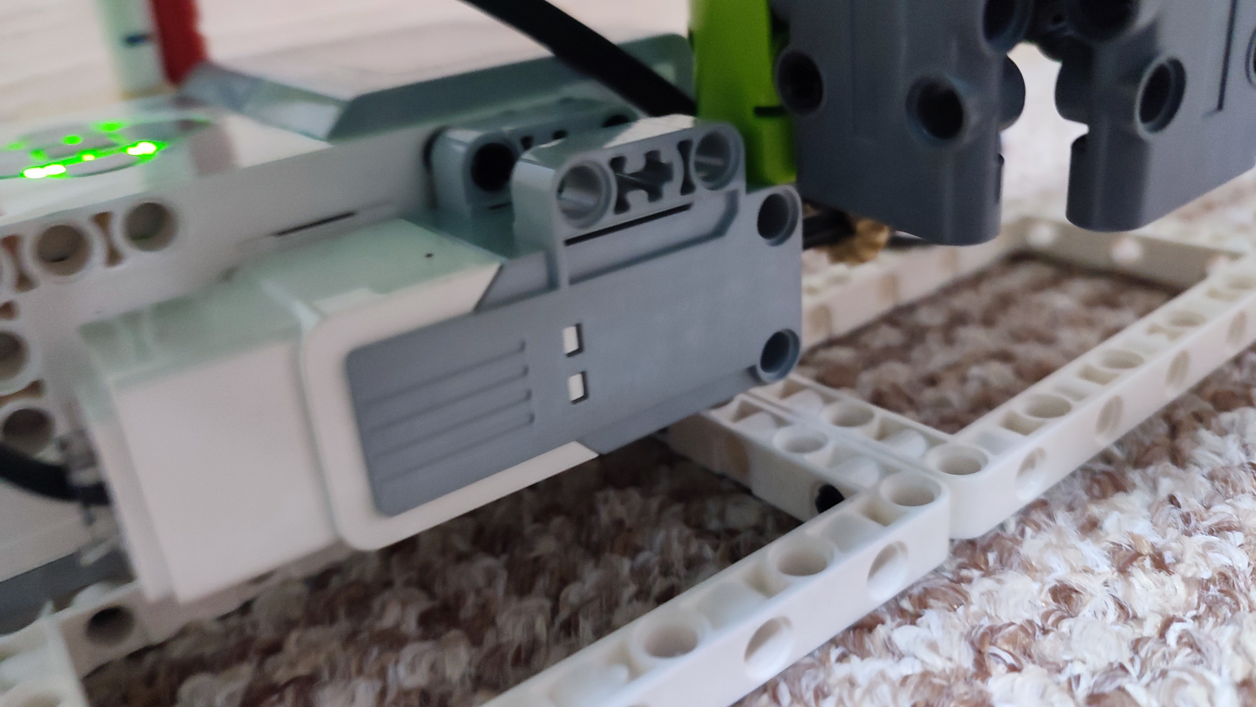 Robot sa skladá z 1 medium motora, ktorý pohne piestom. Piest vytlačí rastlinu „zo zeme“. Na konci stonky je zavretý kvet. Na jeho lupienkoch sú pripevnené lanká, ich druhý koniec je upevnený na zelenej ploche = na tráve. Tým že piest vytláča rastlinu nahor, lanká otvárajú kvet =ťahajú lupienky smerom nadol.