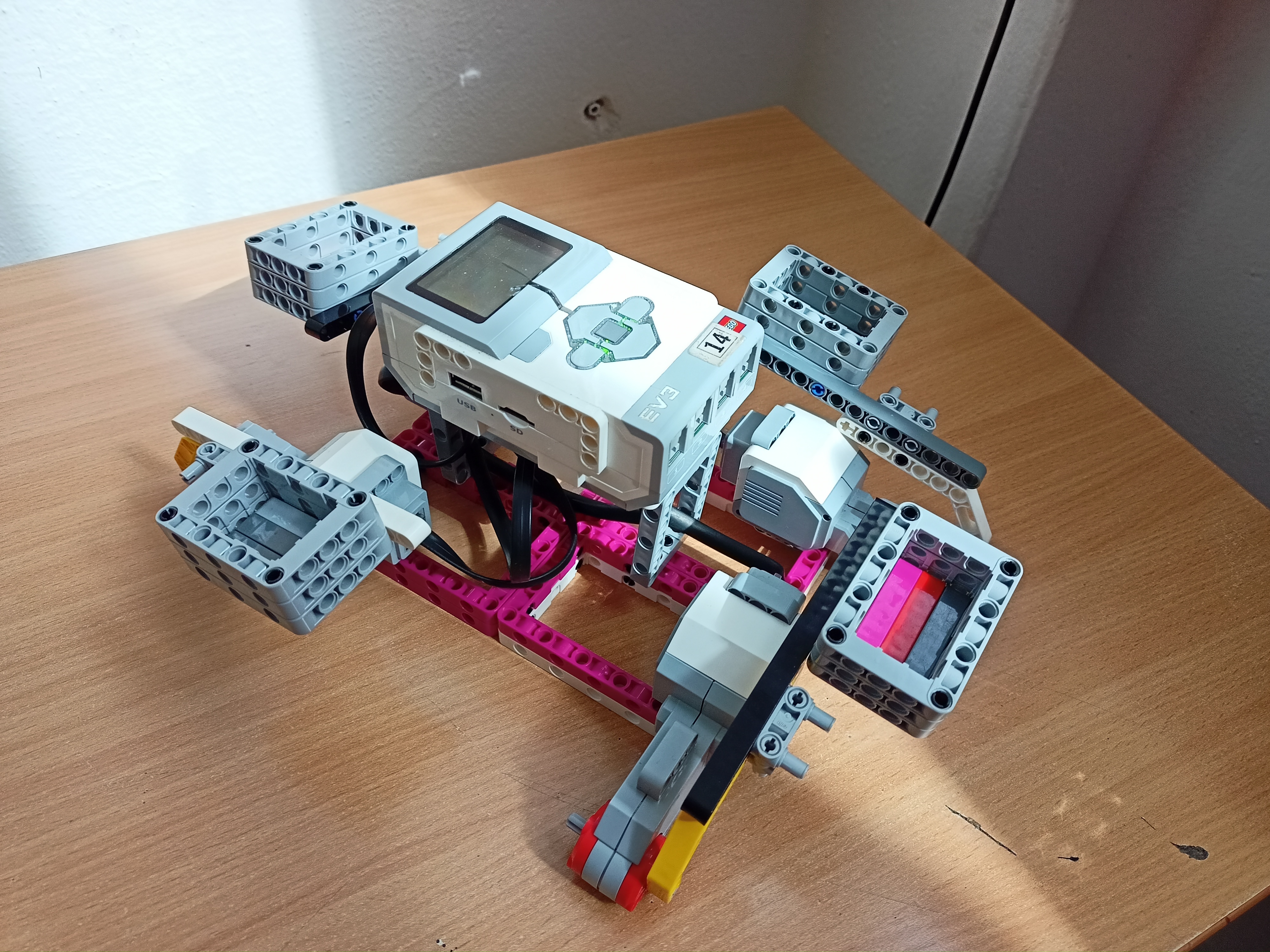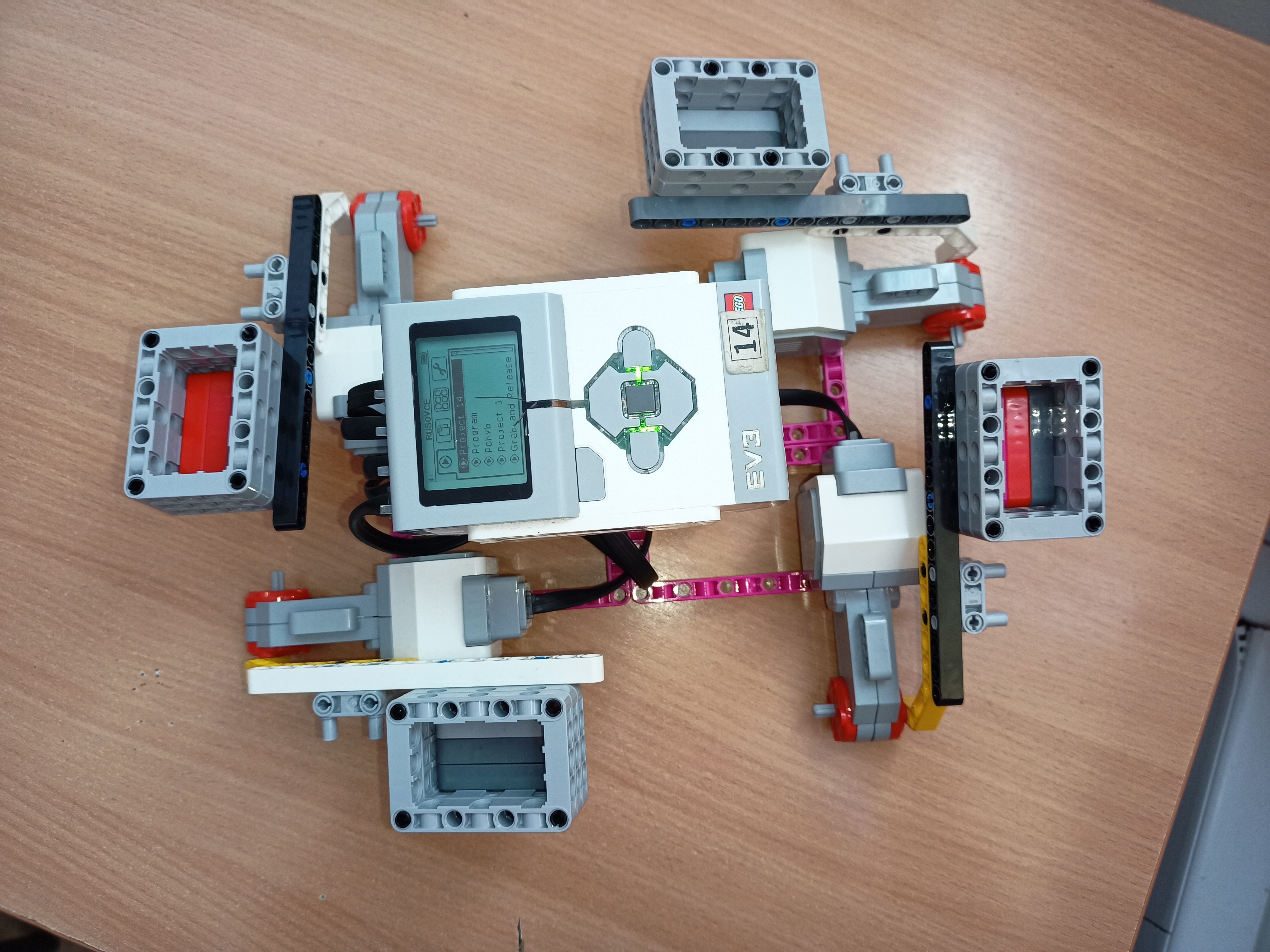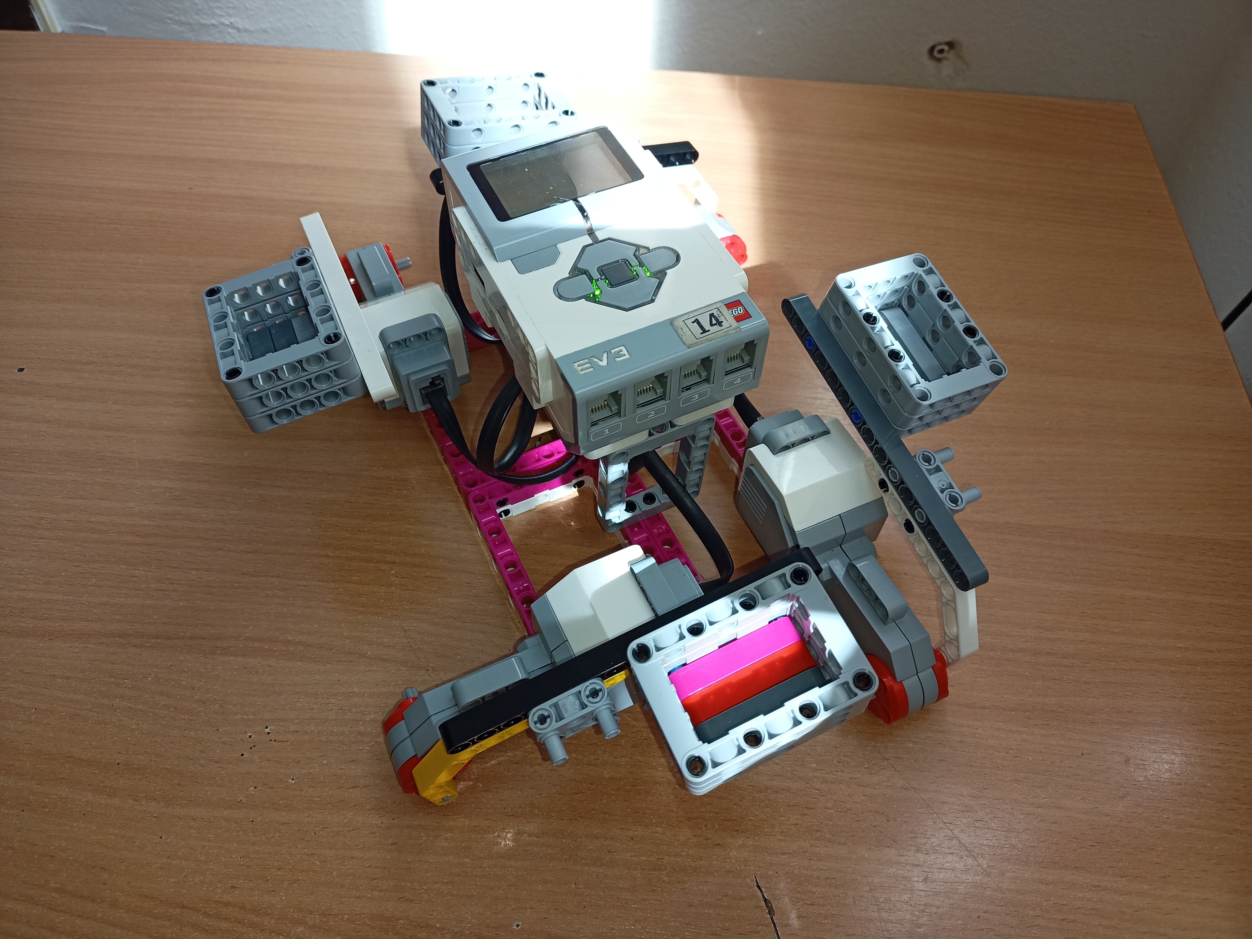 Robot sa skladá zo: - Štyroch motorov, ktoré sú sprevodované a pohybujú katapultami v ktorých sú umiestnené "krúpy".