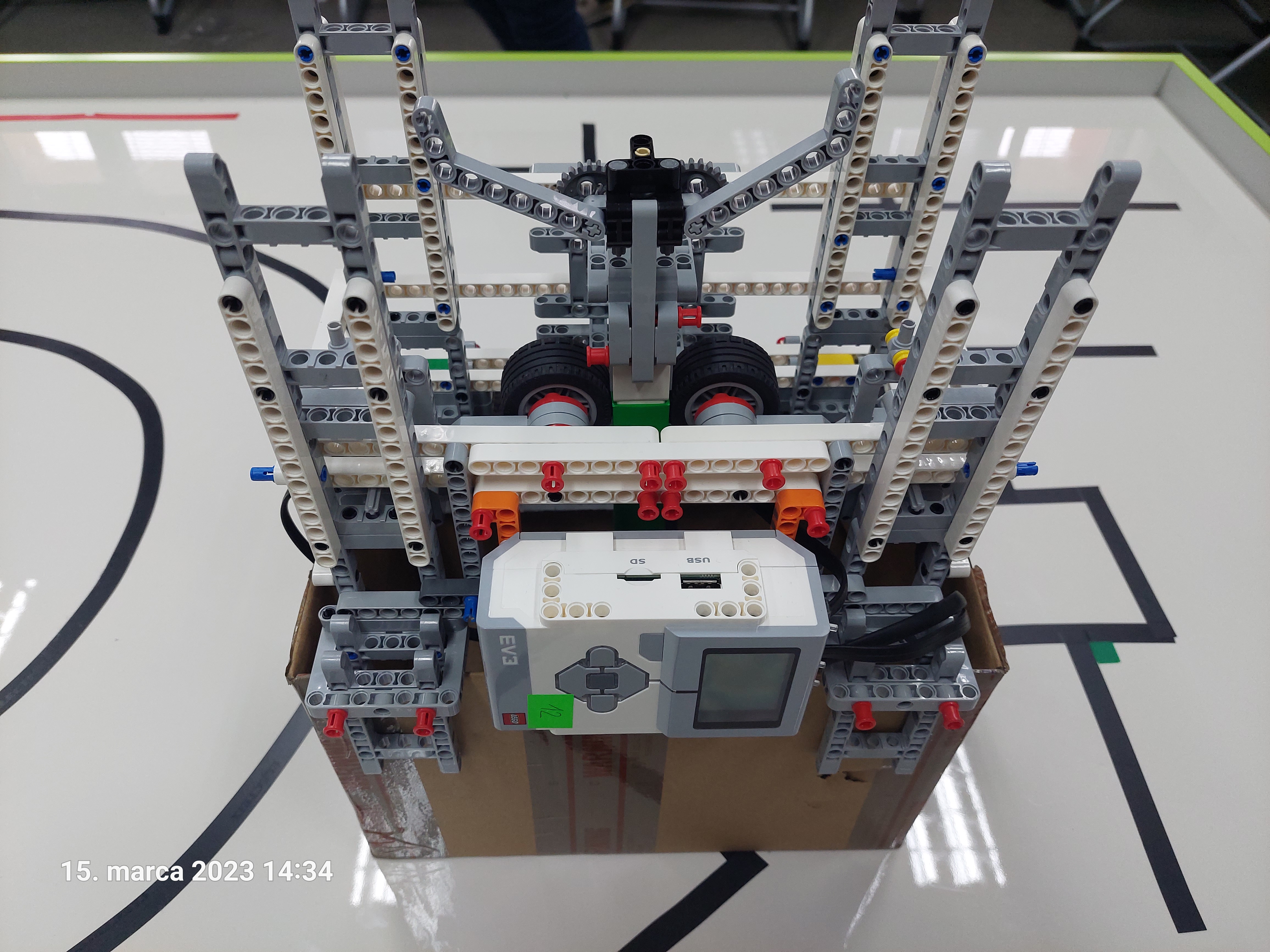 1. Máte veľmi pekne zdokumentované riešenie, a naozaj musím veľmi vysoko oceniť dôraz na bezpečnosť. Páči sa mi, že ste mysleli aj na zvieratá a deti, ktoré môžu vojsť posýpaču do cesty. Samotné rozsýpanie by som si vedel predstaviť aj trocha lepšie a rovnomernejšie, ostatné aspekty riešenia to však vykompenzovali. 2. To je opäť výborné riešenie, dôkladne zdokumentované, ako sa patrí. Dúfam, že si uvedomujete, že plocha a vzdialenosť sú dve rôzne veličiny s inou jednotkou!? :-) Tiež nášmu oku nemôže ujsť skutočnosť, že pri postupnom nakláňaní nákladného priestoru bude dochádzať k nerovnomernému vysýpaniu posypu. Zrejme by tam bolo potrebné pridať ešte nejaký dávkovač, alebo obmedzovač prietoku posypového materiálu, aby ste dosiahli rovnomerné posypanie a tým zároveň ušetrili posypovú surovinu, aby mohla pokryť väčšiu plochu. Ale ako prvý prototyp je to zaujímavý nápad! 3. Páčilo sa mi, ako sa posýpka podobala ozajstnému posypu, že jej bolo naozaj hojne. Čo sa týka merania, tak ste dosiahli peknú dĺžku trasy, avšak, bolo treba zmerať plochu, teda nie len rozmer A, ale A*B. 4. Za riešenie úlohy Výkyvy počasia získavate 2.8b. V rámci riešenia je posypávanie pomerne nerovnomerné, ale páči sa mi komentované video a meranie plochy, ktorú ste pokryli posypom.