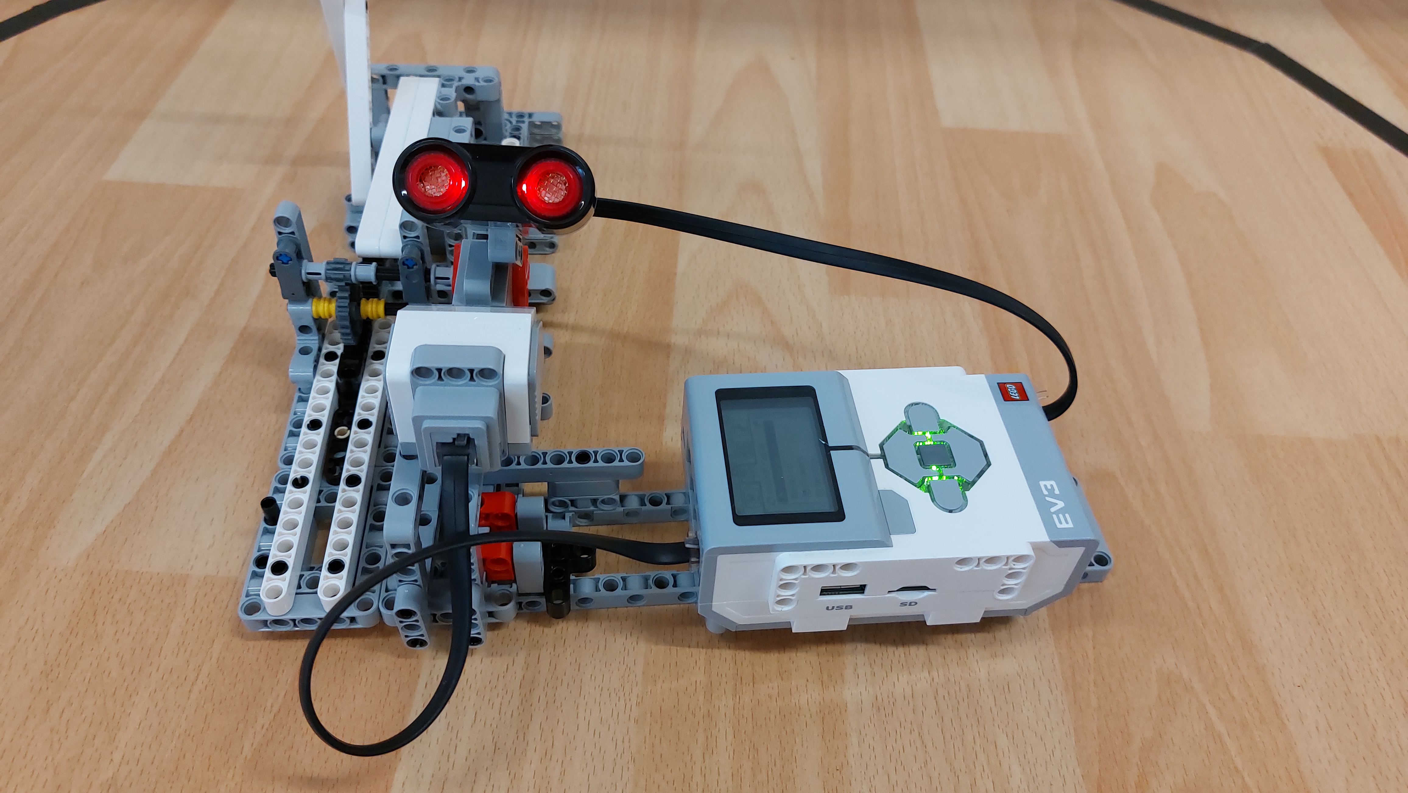 Keď senzor zaznamená v určitej vzdialenosti nejaké teleso, spustí sa motor, ktorý pomocou prevodu pohne ozubenú tyč a tým muchotrávka vyrastie.