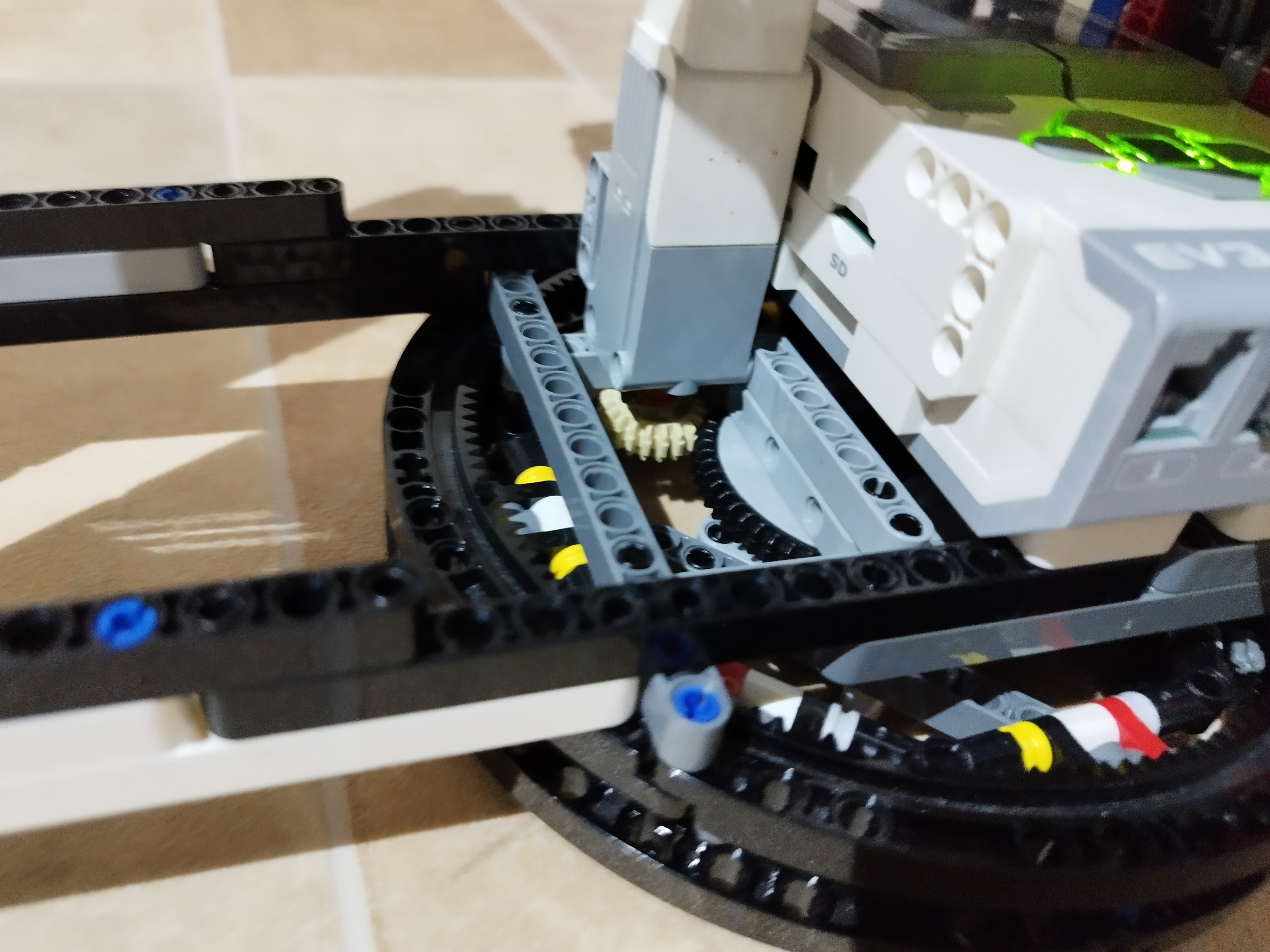 Rotujúci disk je funguje veľmi jednoducho. Sú to dva LEGO kruhy nad sebou, medzi ktorými sú pre väčšiu pevnosť kolieska. Disk je roztáčaní médium motorom.