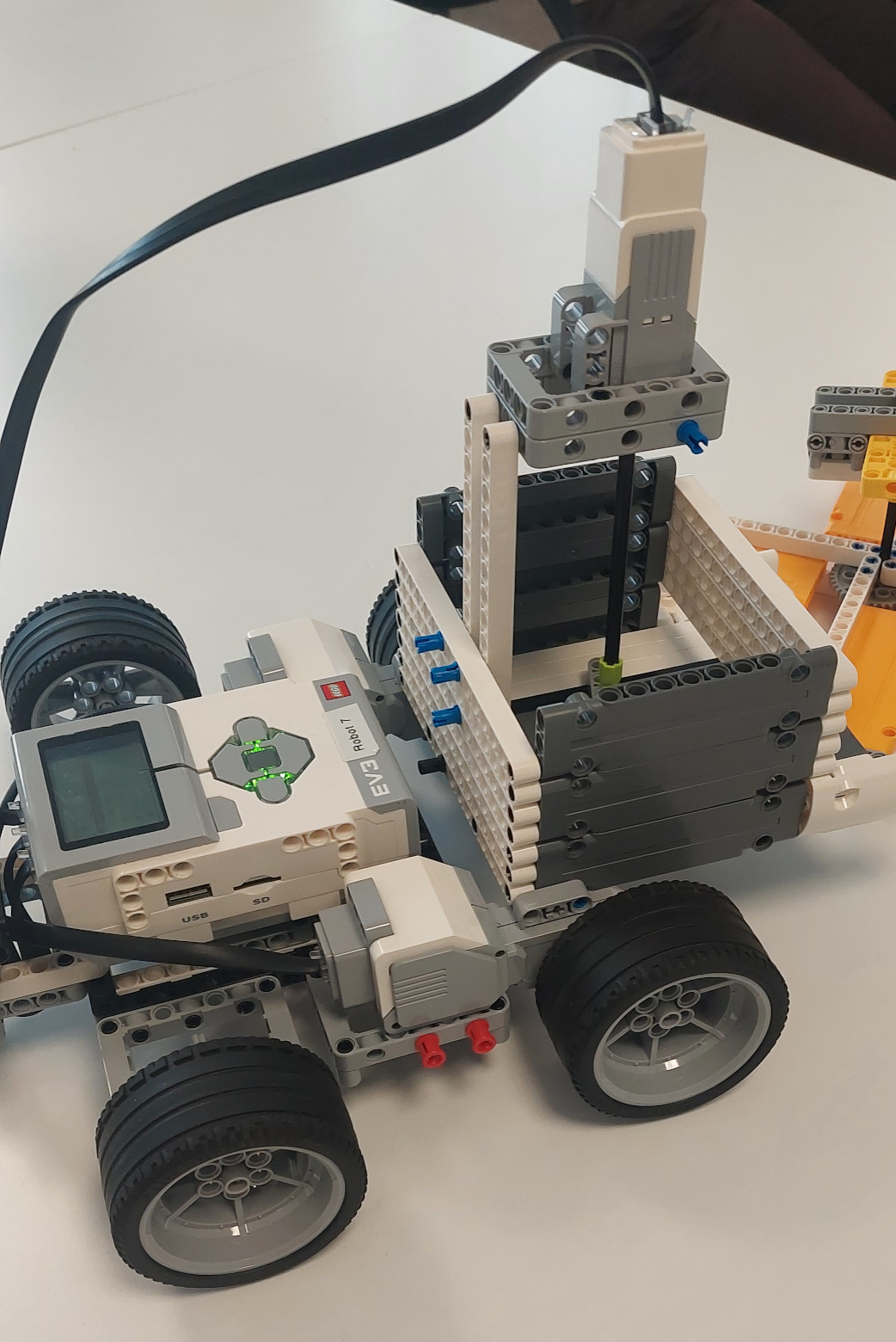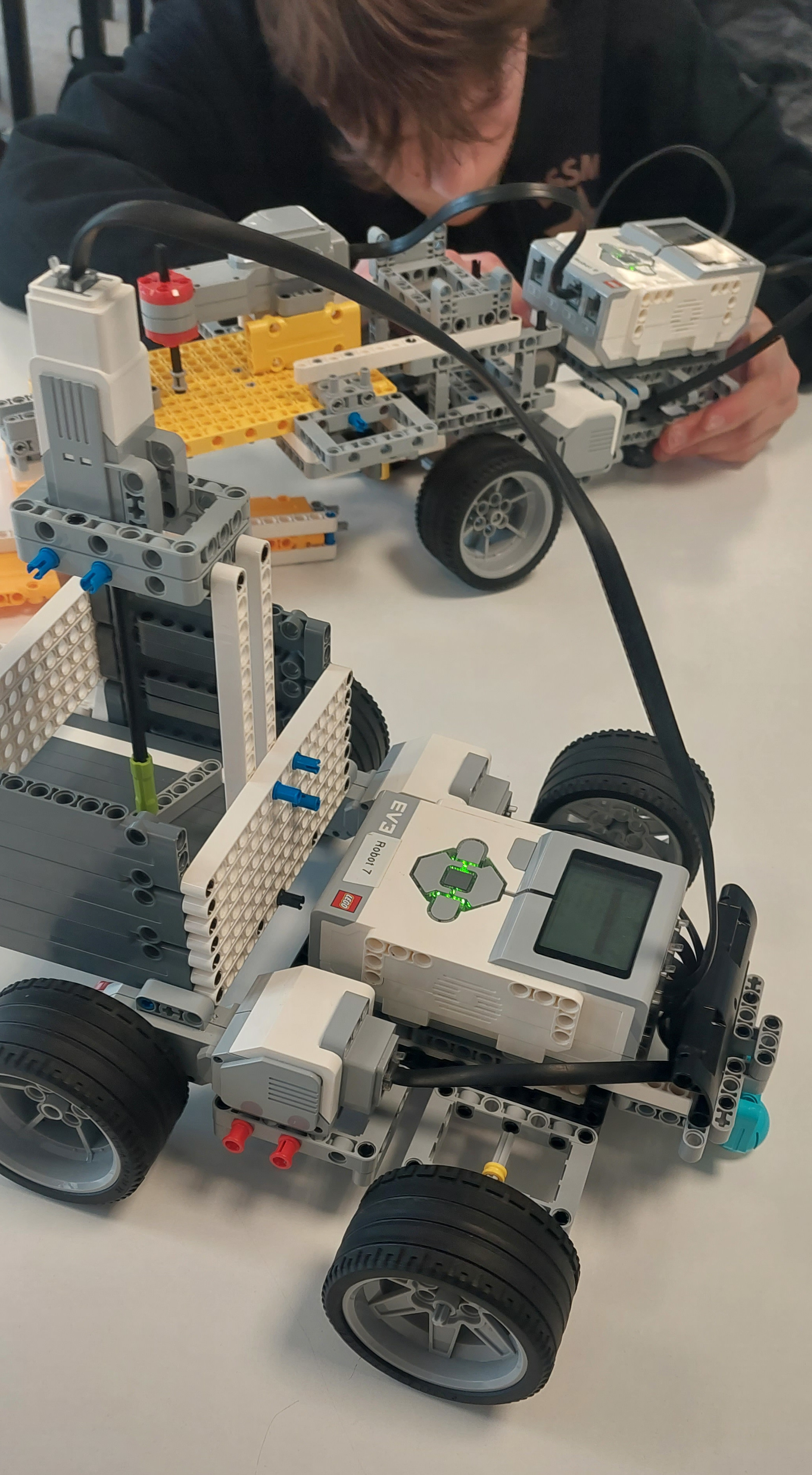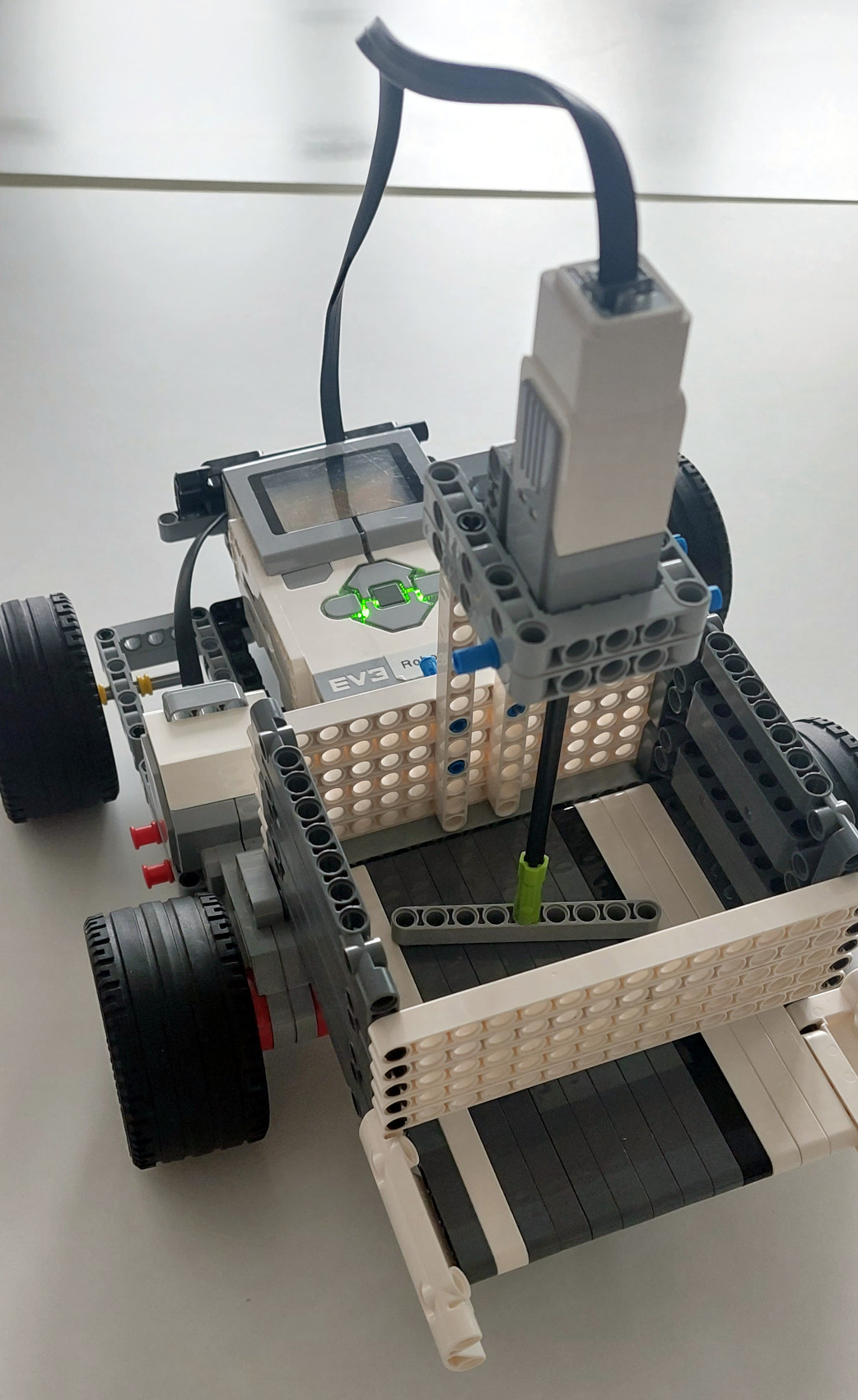 1. Perfektný mechanizmus, veľmi sa podobná skutočným posýpačom, ktoré chodia po meste. Pekne ste to vymysleli. Keby sa robot na konci otáčal, posypal by oveľa väčšiu plochu. Pokojne môžete nafilmovať aj viac ako jeden pokus a tiež sa potešíme viacerým fotkám robota z rozličných uhlov. Nezabudnite na tímovú fotku. 2. Ahojte, ďakujeme za zaujímavé riešenie. Fotky robota sú fajn, aj video je pozerateľné. Robot postupne za sebou rozsýpa čiastočky pri pohybe vpred. Škoda, že chýba popis riešenia a teda aj akákoľvek zmienka o zmeraní alebo odhade posypanej plochy. Rozsýpací mechanizmus naozaj pripomína rozmetávacie zariadenie na bežných posypových autách, ale tam je okrem toho zabezpečený súvislý rovnomerný prísun posypovej zmesi, ktorý už na tomto modeli nevidíme. Program odporúčam fotiť priamo na obrazovke (Print-Screen) a nie telefónom, alebo ešte lepšie rovno nahrať pôvodný program ako súbor. Tak či onak na ňom vidíme, že sa robot pohybuje vpred a nezastaví, čiže nabúra, pokiaľ ho operátor nezastaví ručne - ale roboty by mali byť samočinné. Mám radosť z Vášho entuziazmu a preto sa teším na ďalšie riešenia! 3. Ja si myslím, že len z časti dobre. Lebo, čo ak išlo o náhodu? Preto odporúčame nahrať na video aj viacero pokusov, aby ste nás presvedčili, že to ozaj funguje dobre. V zadaní bolo napísané, že sa máte pokúsiť odhadnúť plochu, ktorú ste posypali ... avšak u vás som nič také nenašla. Skúste nabudúce čítať pozornejšie zadanie. 4. Za riešenie úlohy Výkyvy počasia získavate 2.7b. V rámci riešenia je posypávanie pomerne rovnomerné, ale chýba meranie plochy, ktorú ste pokryli posypom.