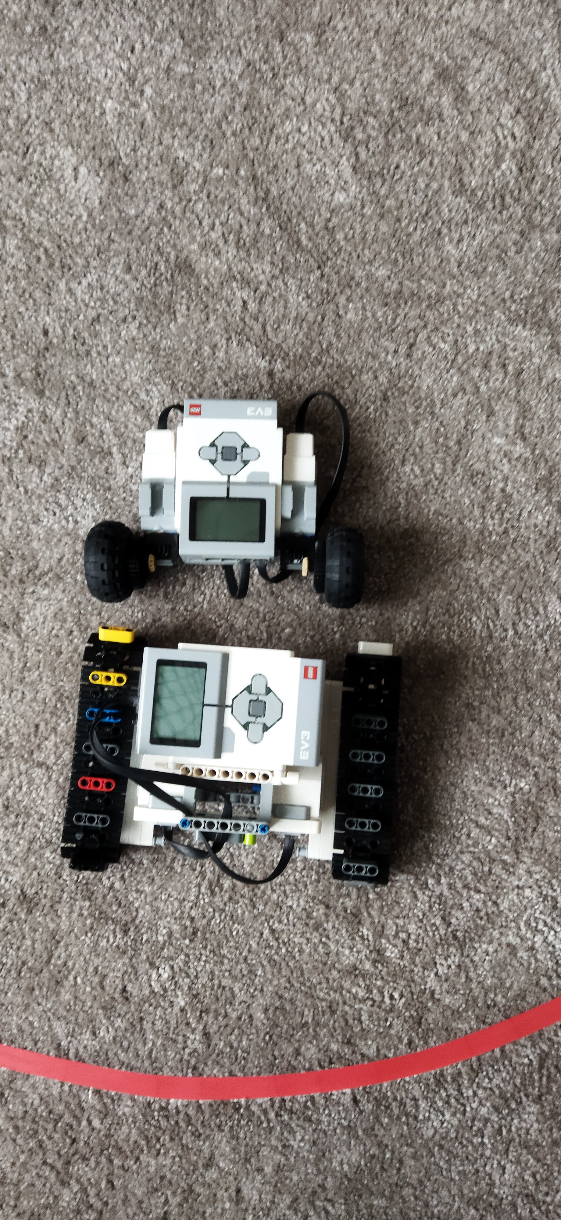Roboti sú úplne klasickí, iba dva motory a kolesá. Ovládače sú z dvoch medium motorov a to je vlastne všetko.