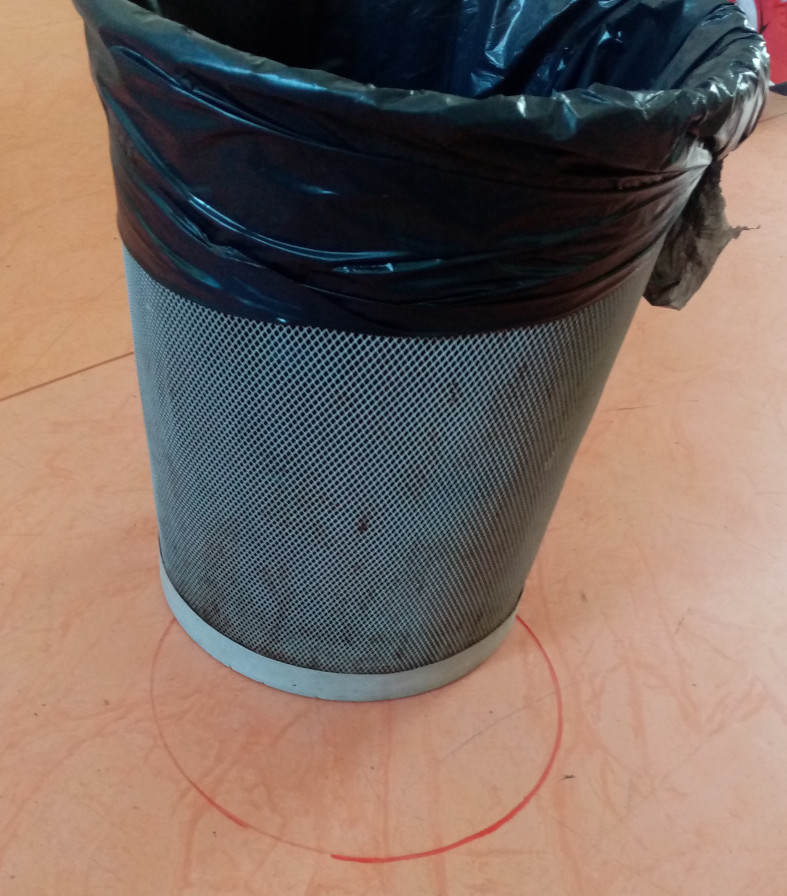 Ako obiehanú vec sme použili farbu a kôš. Farba nie je celkom kruhová a preto je výpočet menej presný. Kôš zasa nemal celkom rovné okraje a preto sa niekedy nedal zamerať.
