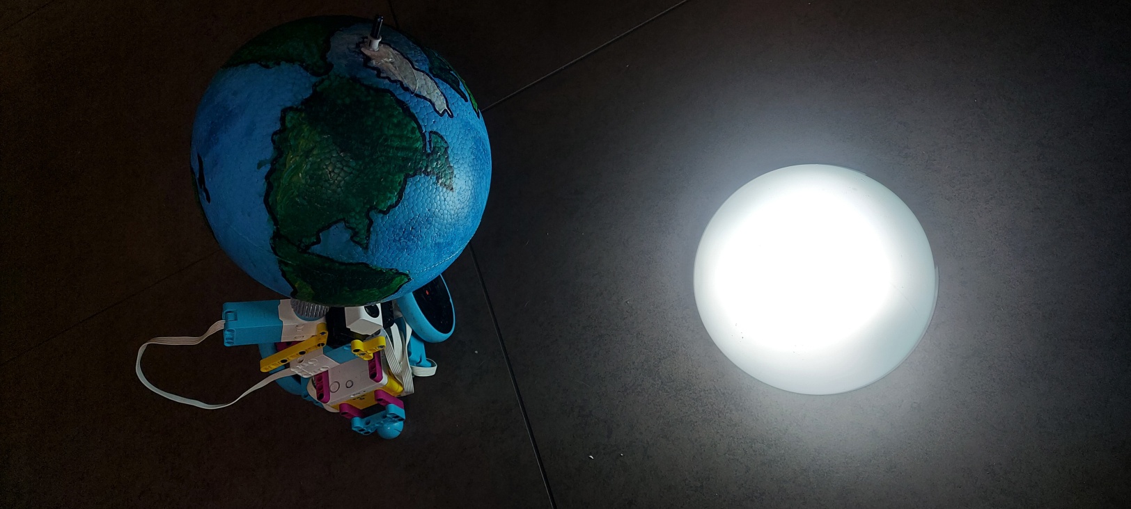 Zaznačil som na nej Slovensko a po naštudovaní pohybu Zeme v slnečnej sústave som naprogramoval motory tak, aby ukazovali, ako sa zem otáča okolo Slnka v priebehu roka.