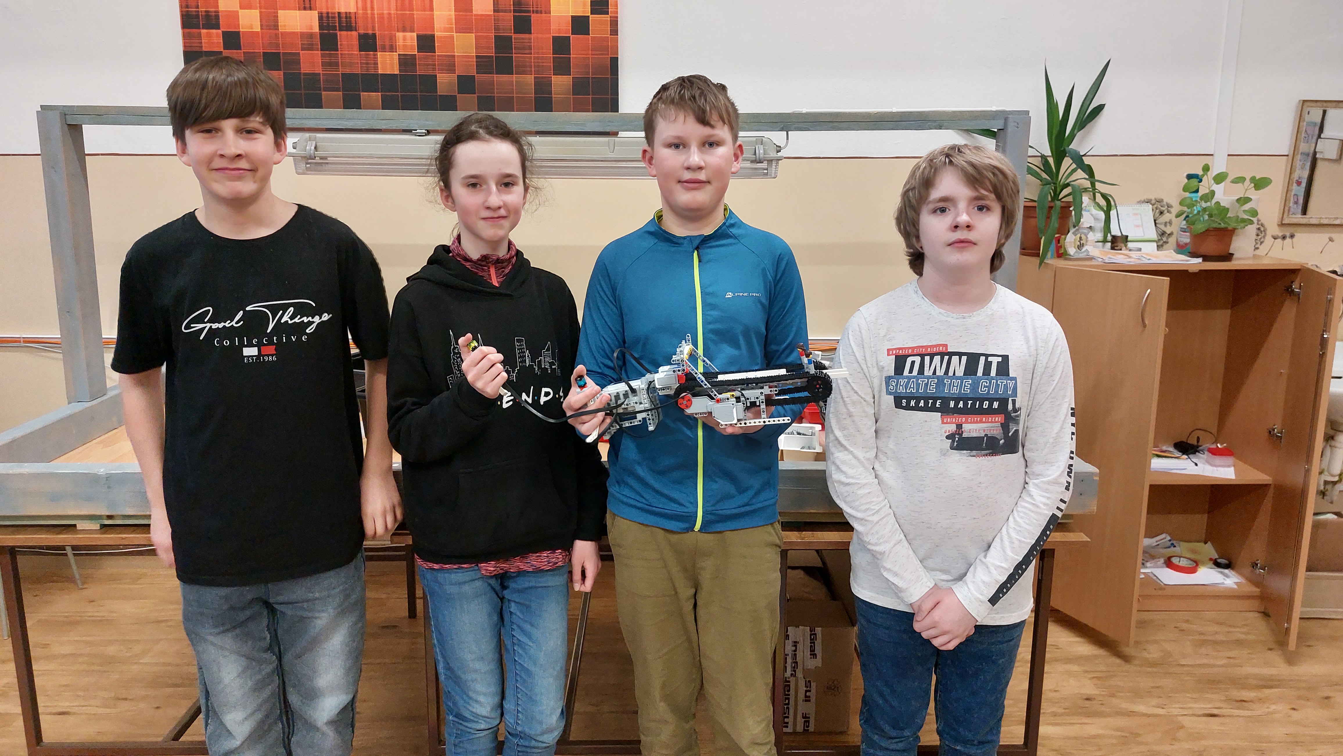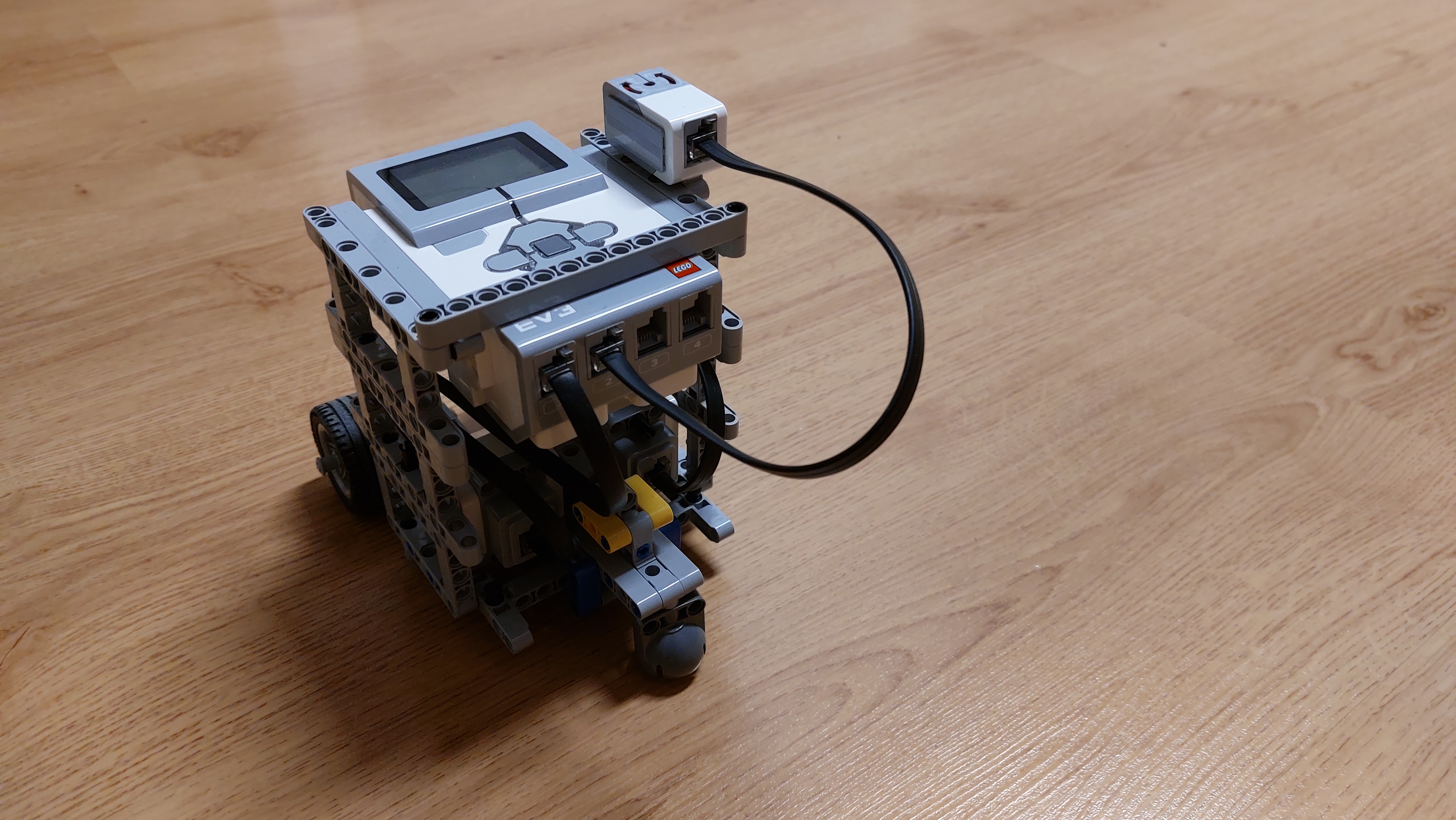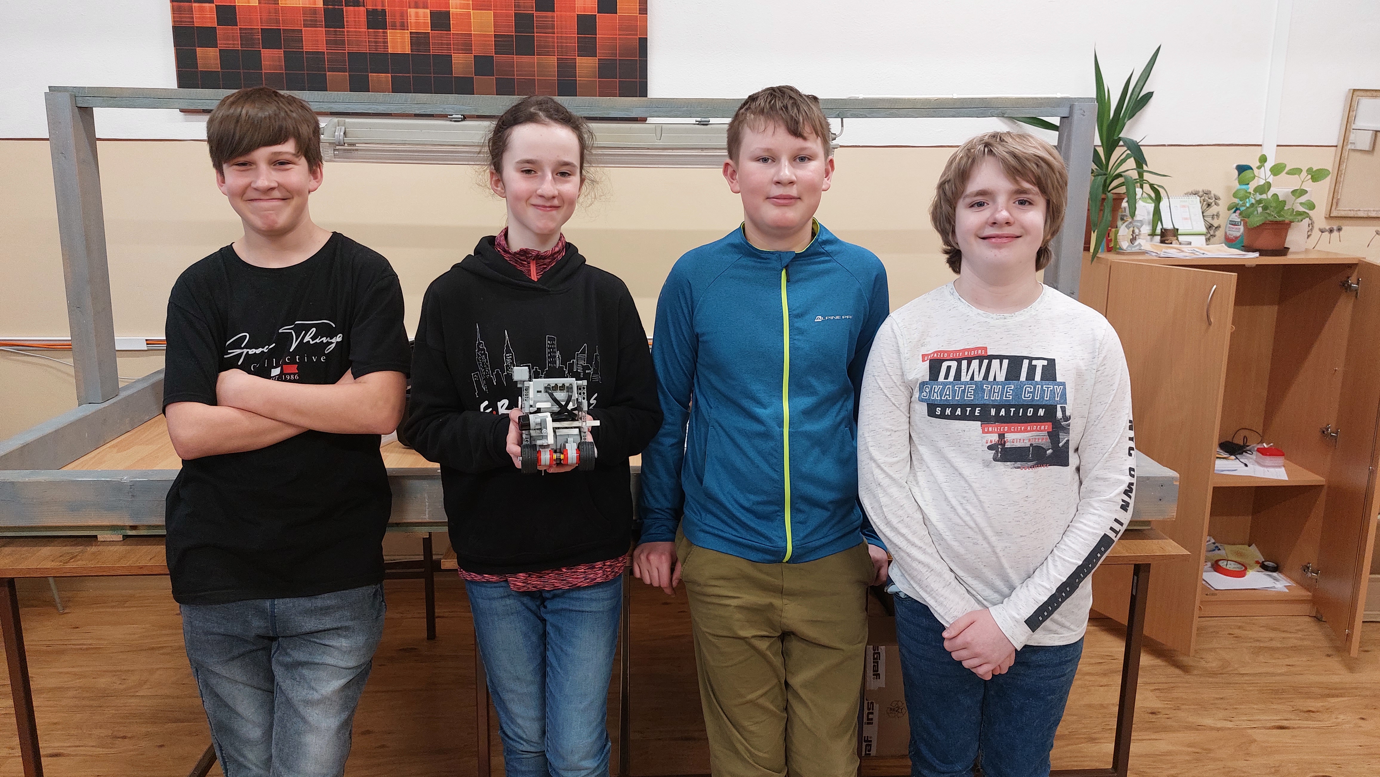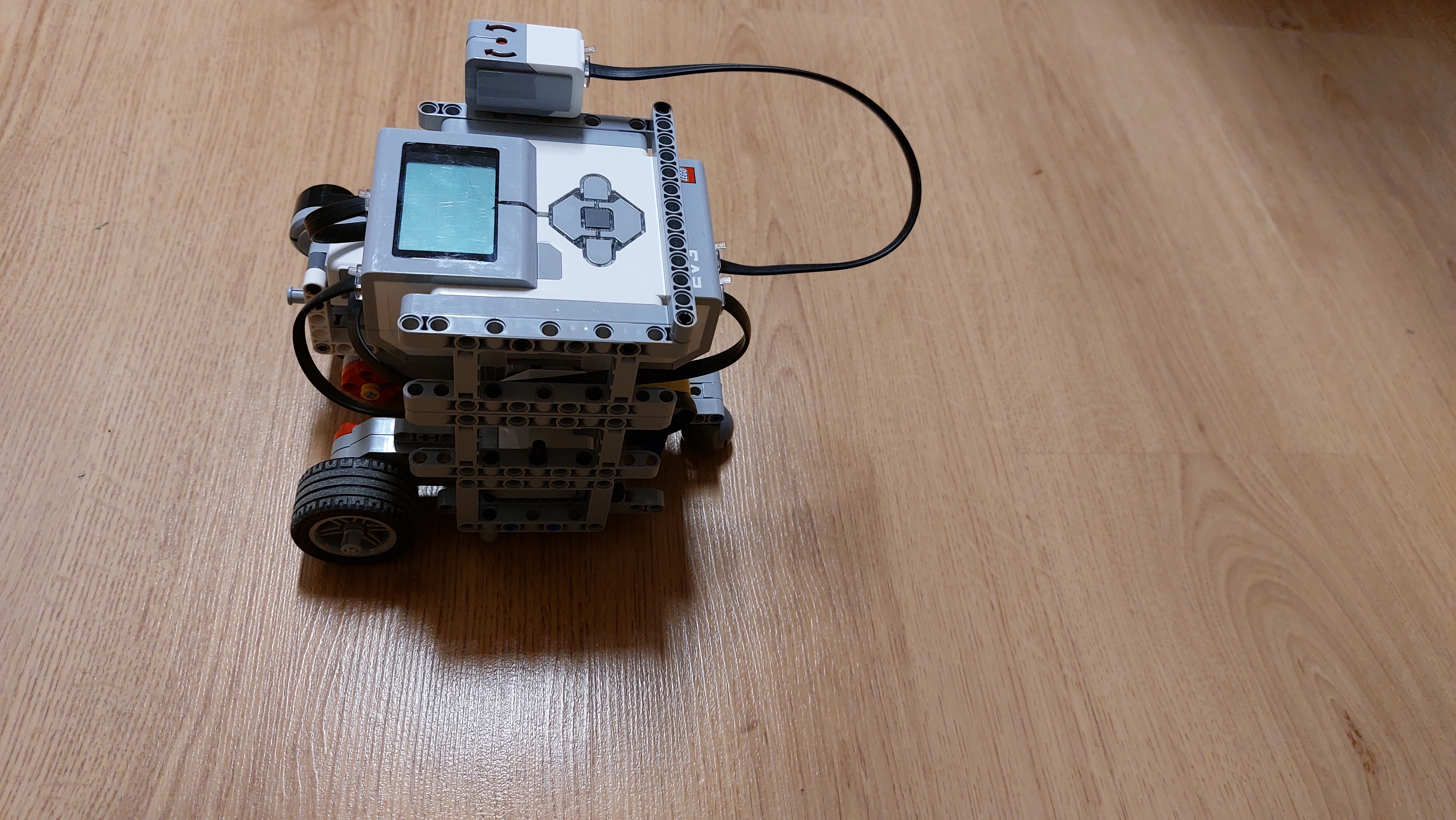 1. To Slnko je teda poriadne veľký grepfruit :) Úloha sa vám tak trocha zjednodušila. Pri predvádzaní nie je celkom jasné, či tie ročné obdobia zobrazuje na správnych miestach. Mohli ste použiť nejaké značky. Dávam trocha menej bodíkov za dopomáhanie nohou :) 2. Zaujímavé riešenie. Úloha bola náročná. 3. Ďakujeme. Áno, práve o toto nám išlo, aby ste si vyskúšali, aké je to ťažké držať sa v nejakej vzdialenosti od predmetu pri jeho obiehaní. A je to ešte ťažšie, ako ste zistili. :-) Nestačí totiž len trochu viac alebo menej točiť keď je robot ďaleko, alebo príliš blízko, lebo v takom prípade to môže viesť k vlneniu, ktorého amplitúda sa môže zvyšovať. Inžinieri na takéto veci používajú PID controller, ale to samozrejme nebolo cieľom vymyslieť v tejto úlohe, ale nájsť nejaké približné riešenie, ktoré aspoň ako-tak funguje. Podlaha je v tom celkom nevinne. Ťažkosti určite trochu spôsobuje tvar obiehaného megakvetináča - zrovna vo výške ultrazvuku je tam ten prečnievajúci okraj, ktorý senzor niekedy zachytí, niekedy nie, okrem toho má kužeľovitý tvar, takže zvuková vlna má tendenciu odraziť sa nahor do vzduchu a nie naspäť k robotu. V programe by ste to mohli zariadiť tak, že displej sa bude mazať a prekreslovať iba vtedy, keď treba - keď sa ide vypísať nová hodnota. Hlavný problém vidím v tom, že ten forever cyklus budé cykliť maximálnou rýchlosťou ako sa dá, potenciálne aj veľakrát za sekundu a tým pádom sa premenná otacanie hneď zmení na maximálnu, alebo minimálnu prípustnú hranicu. Treba si tiež uvedomiť, že riadenie robota cez "start moving" sa vnútri robí pomocou interných počítadiel. Ak bude program neustále volať start moving s nejakou inou hodnotou, tak sa môže stať, že pohyb nebude ako očakávaný. Tiež sa nepodarilo splniť podmienku, že po preložení robota automaticky začne obiehať predmet z tej inej vzdialenosti. Celkovo ale oceňujem snahu a poctivé riešenie. 4. No, ako som pozerala, tak to ten robot to okolo toho slnka dával v rôznych vzdialenostiach ... Mali ste ukázať aj, že vie udržať rôzne vzdialenosti, teda úloha nebola úplne presne splnená, takže to nebude môcť byť plný počet... Zmena ročných období fungovala, ale na kamere ju veru úplne dobre nebolo vidieť... keďže sete boli úplne blízko a nevideli sme, kde sa robot nachádza vzhľadom na slnko.