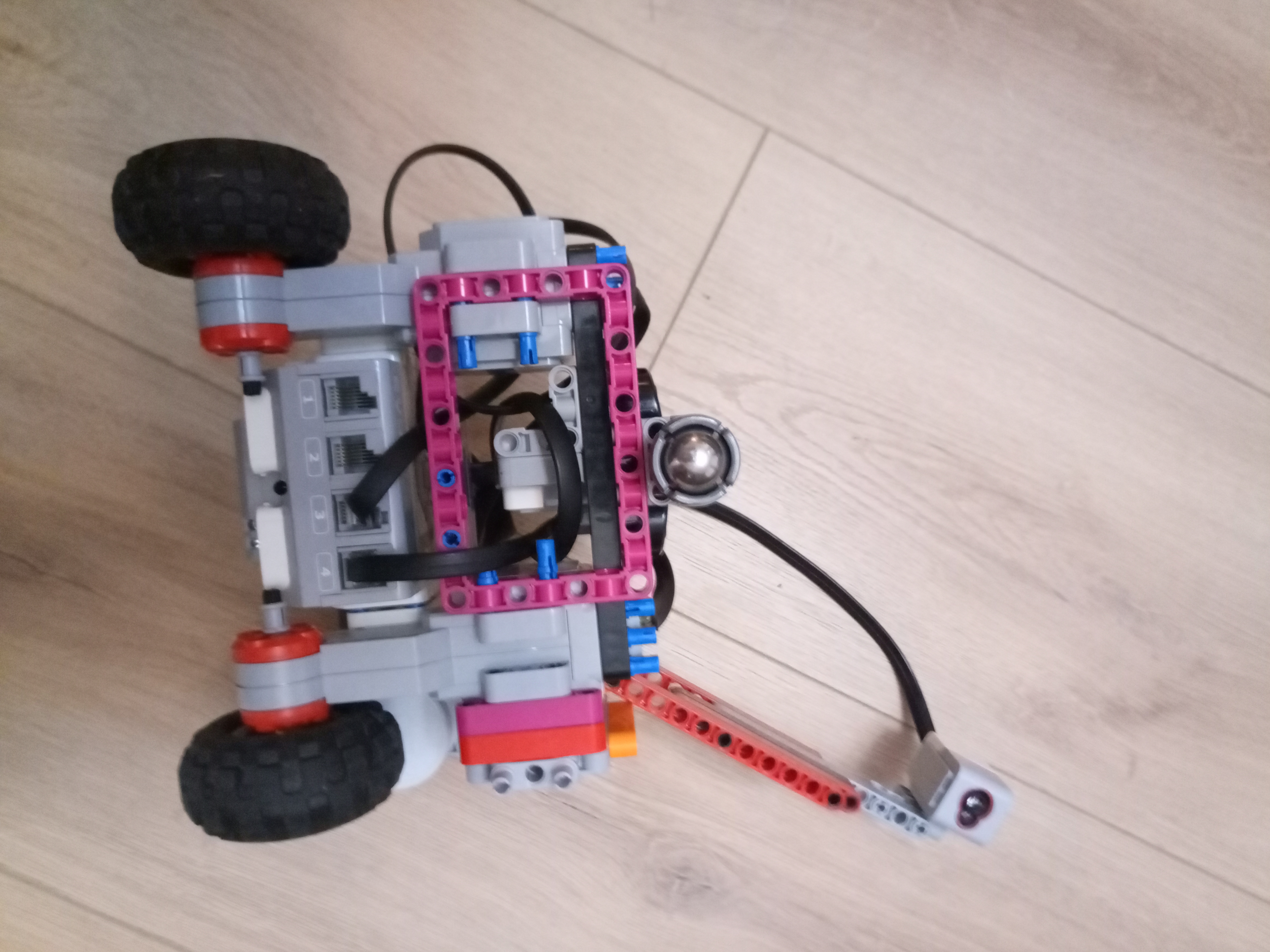 V tretej skupine sme pridali na rameno ešte color senzor, aby sme vedeli ochutnávať, či je vršok červený. Aj sme mali vymakané zarovnávanie, keď sme našli štruktúru. USG senzor našiel ľavý okraj a resetoval otočky motora a potom pravý okraj, otáčky motora vydelil dvomi a vrátil sa na stred objektu. Teda ten senzor nie je moc dokonalý, ale fungovalo to celkom dobre. A keď sa náhodou stratil, tak sa pokúsil ten objekt nájsť ešte raz ale z väčšej blízkosti. a ak sa stratil aj tak, tak to už bol osud. Aj lovec ostáva občas hladný. Ale nevzdal to a išiel hľadať ďalej. Takže môžme povdať, že robot sa nestratil. Ale samozrejme pokračoval hľadať štruktúry donekonečna a tak mal šancu využiť ďaľšiu príležitosť.