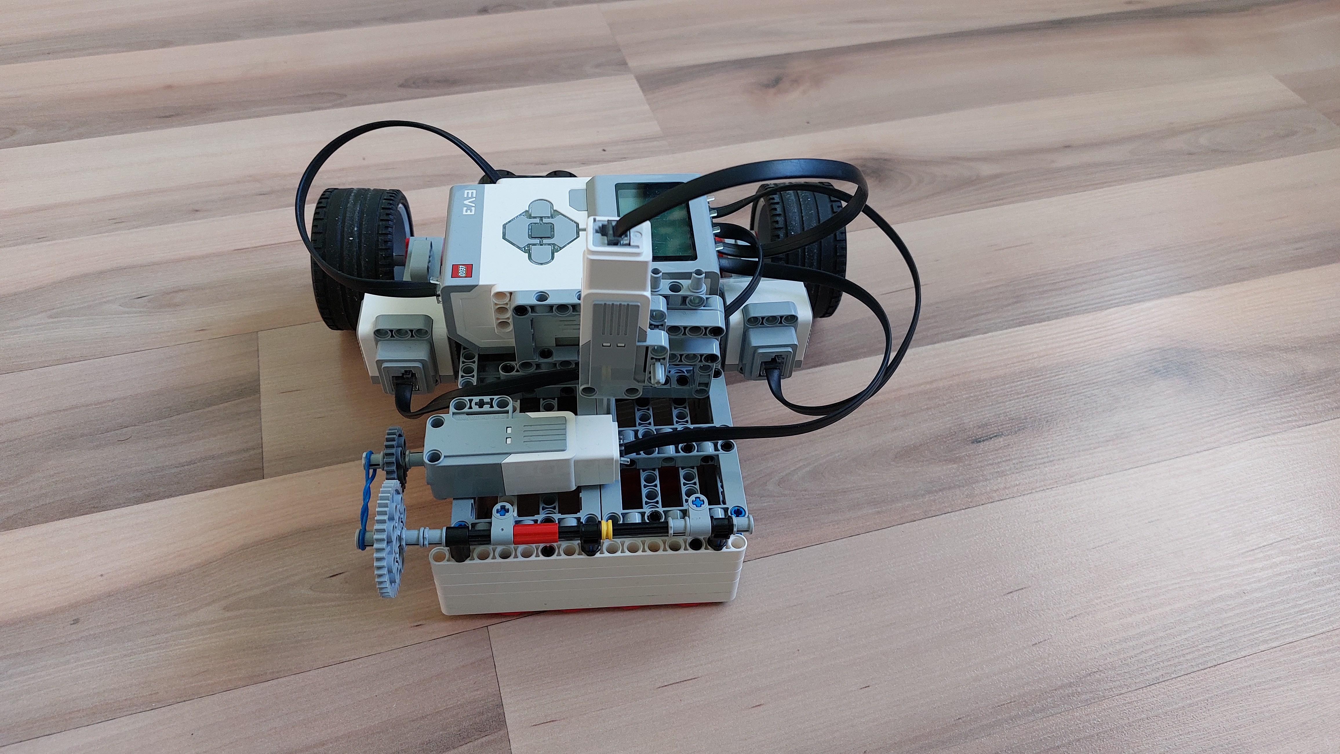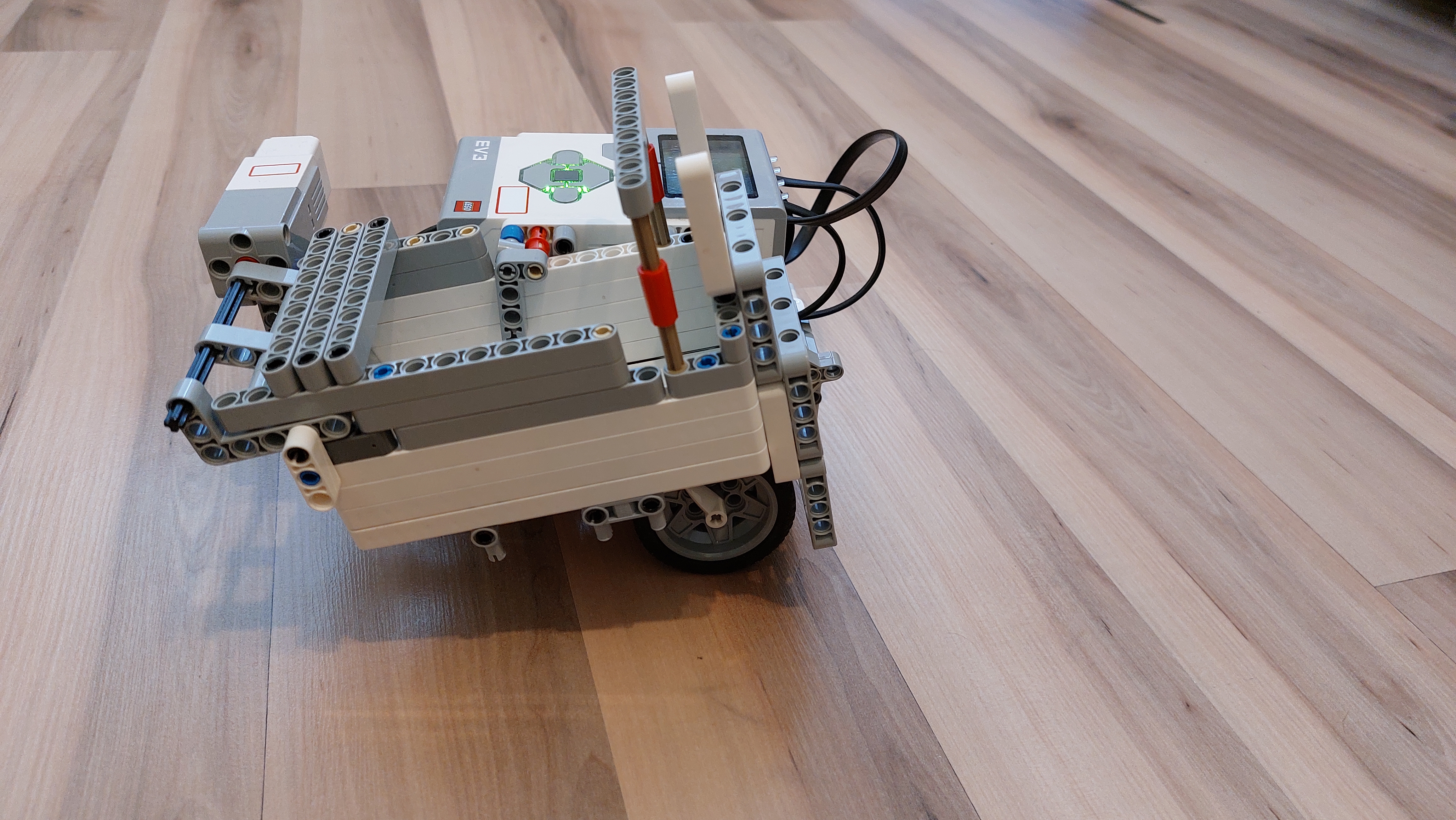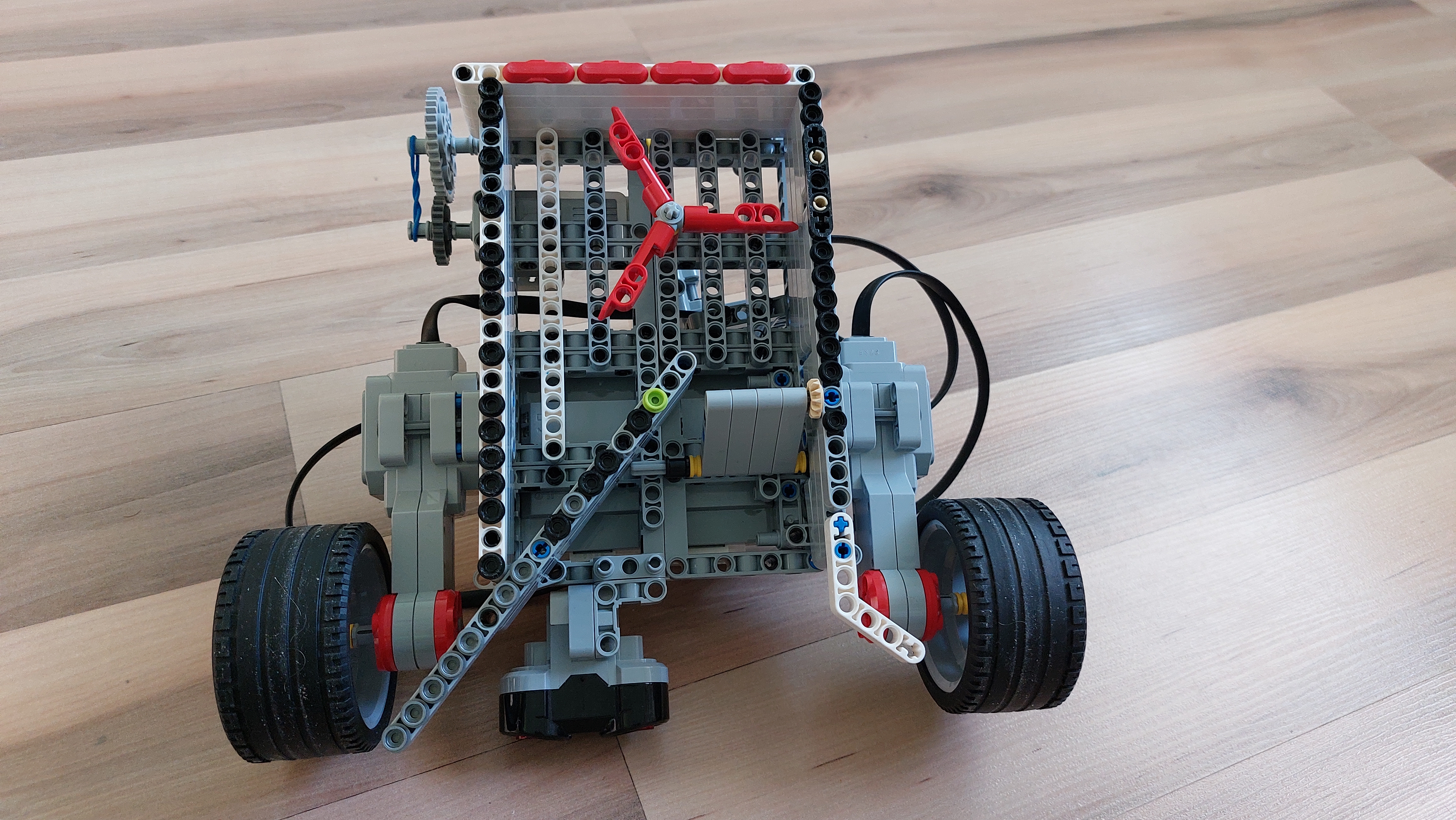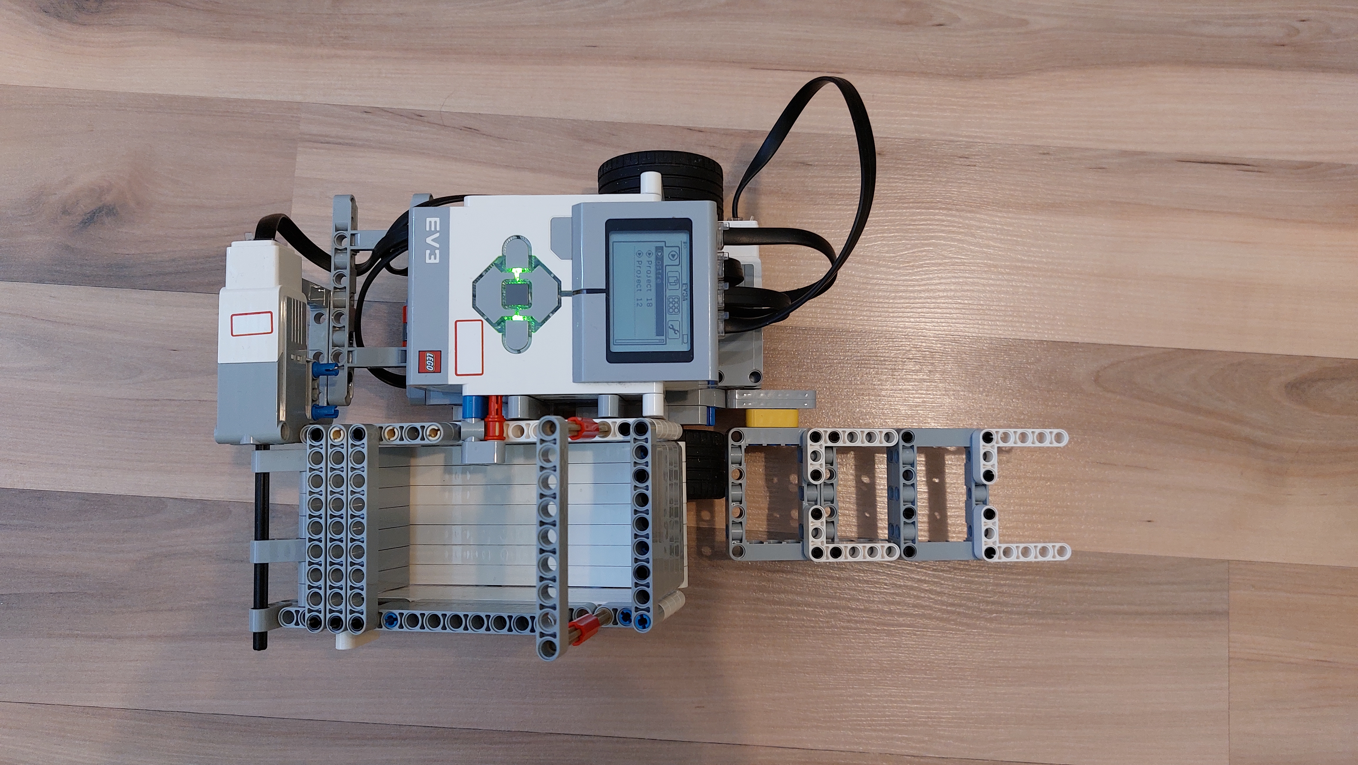 Robot je vozítko s dvoma veľkými motormi slúžiacimi na pohyb, jedným malým motorom ktorý pohybuje robotickou rukou a ďaľším malým motorom ktorý otvára žalúdok.