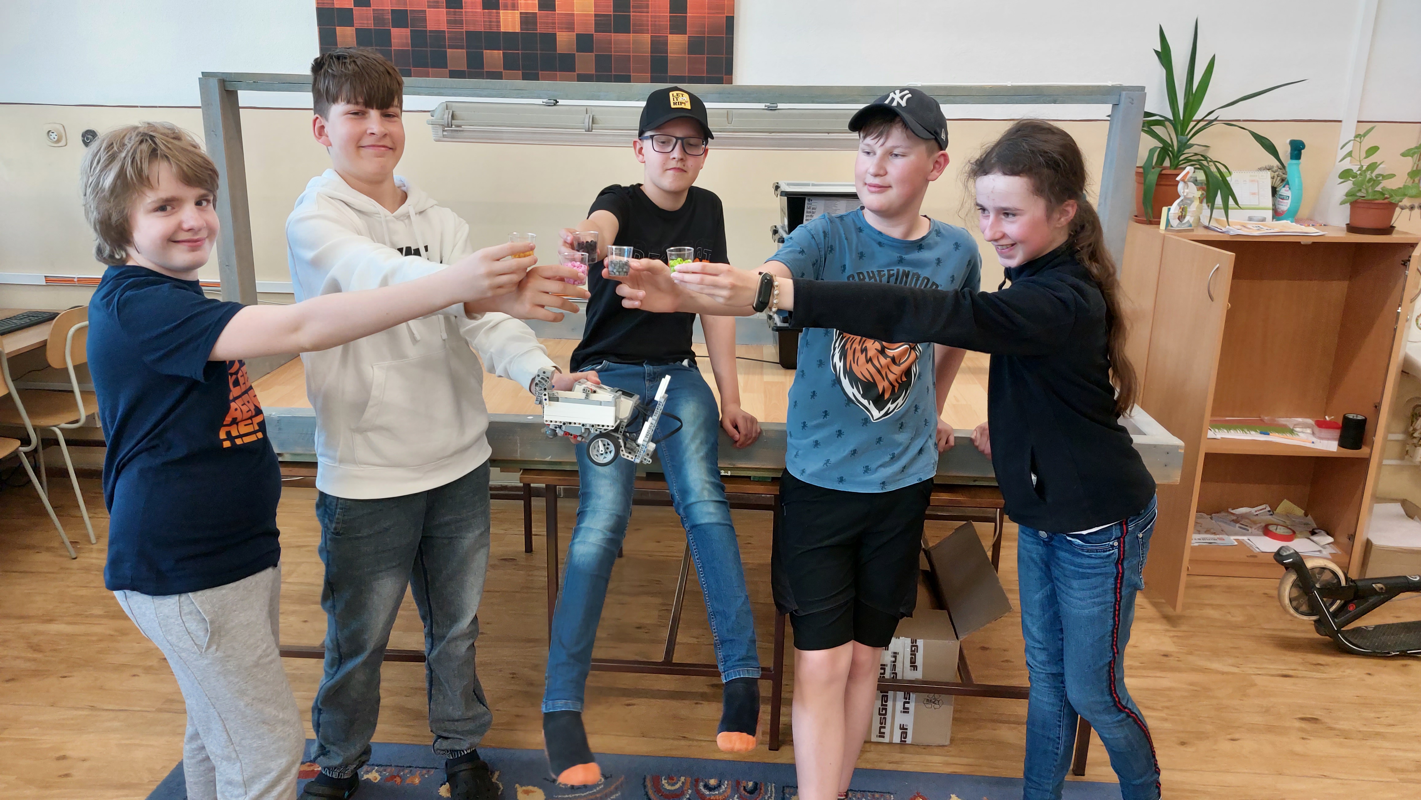 1. Krásne. Tento pijan pije zo skutočných pohárikov to pravô LEGOvô ostrô. Gratulujem! 2. Veľmi pekné riešenie - jednoduché a spoľahlivé. 3. Za úlohu Metla ľudstva získavate 3b. Podarilo sa vám celý obsah bez problémov dostať do bachora a z neho. Pekná práca :) 4. Tak, nevypil úplne všetko ten váš robot, ale aspoň sa vždy trafil do "brucha". Inakšie robot fungoval ako mal, tak fajne :)