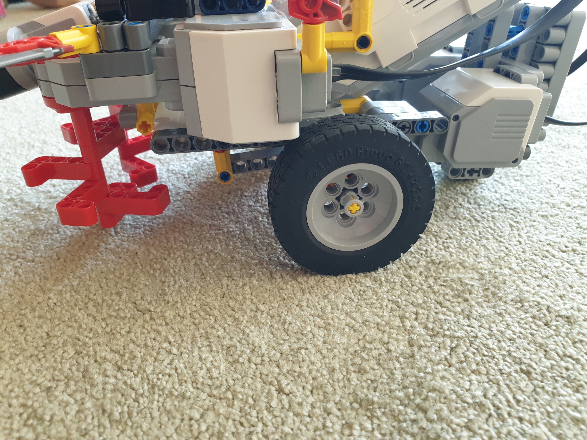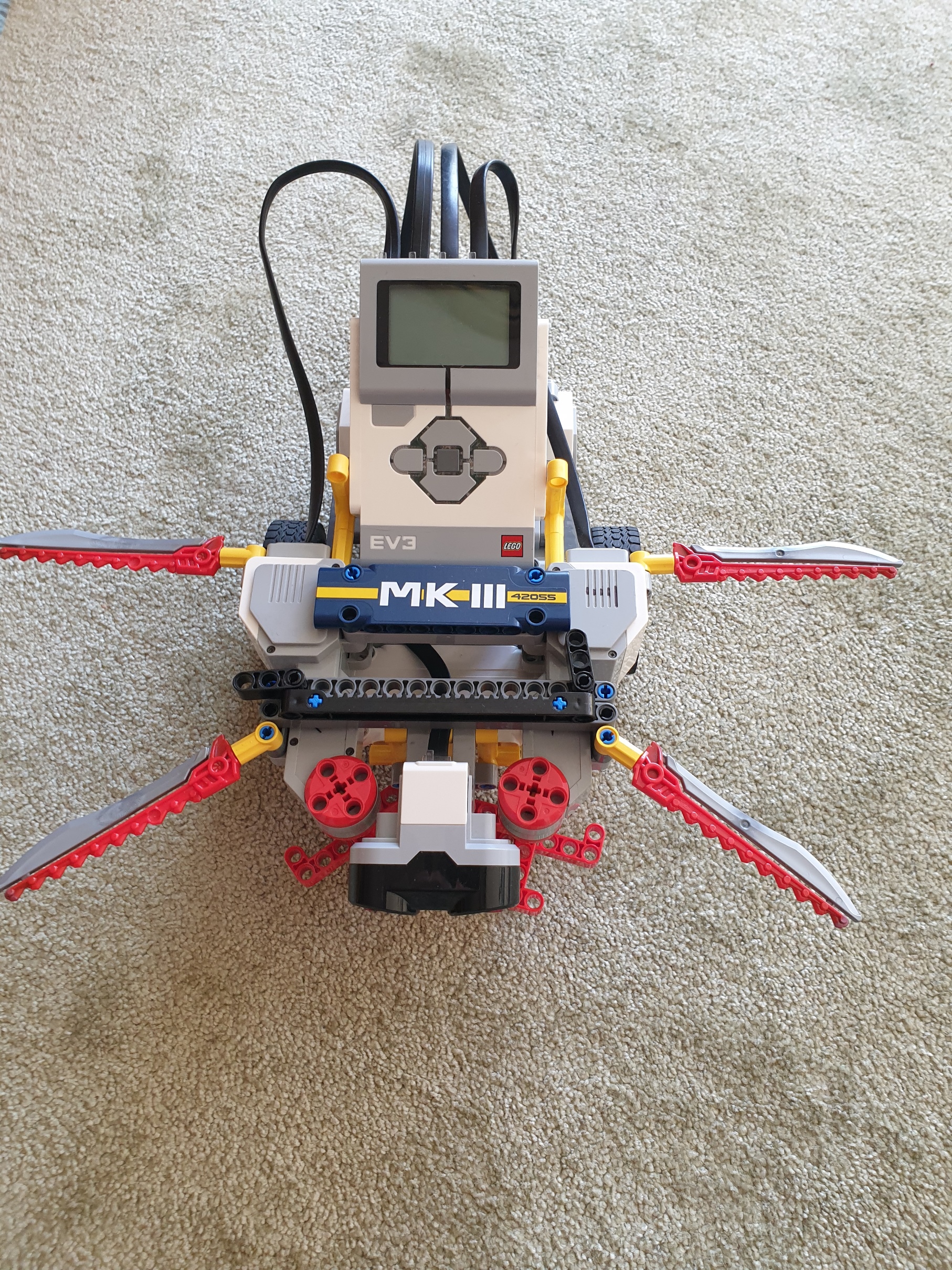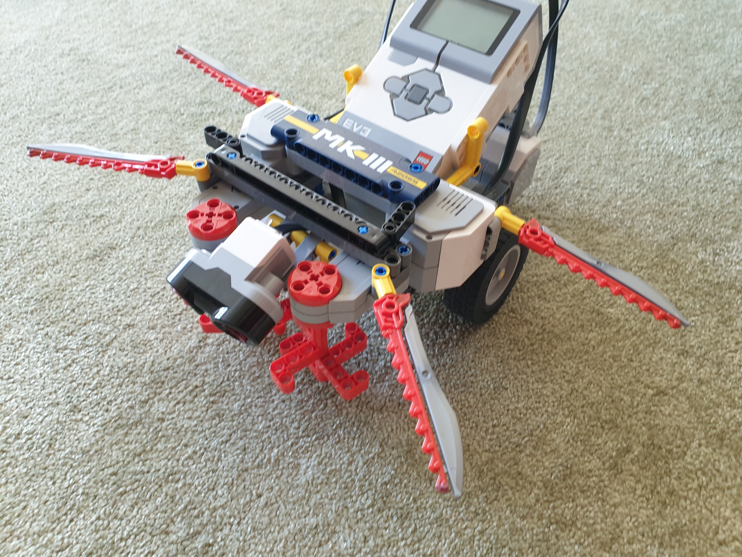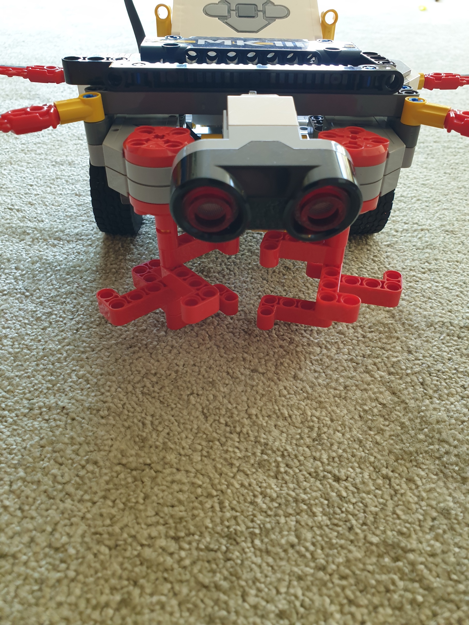 Naša MK3šerka s.r.o. sa skladá zo 4 veľkých motorov, jedného ultrasonického senzora a jednej EV3 kocky (a veľa ďalších kociek).