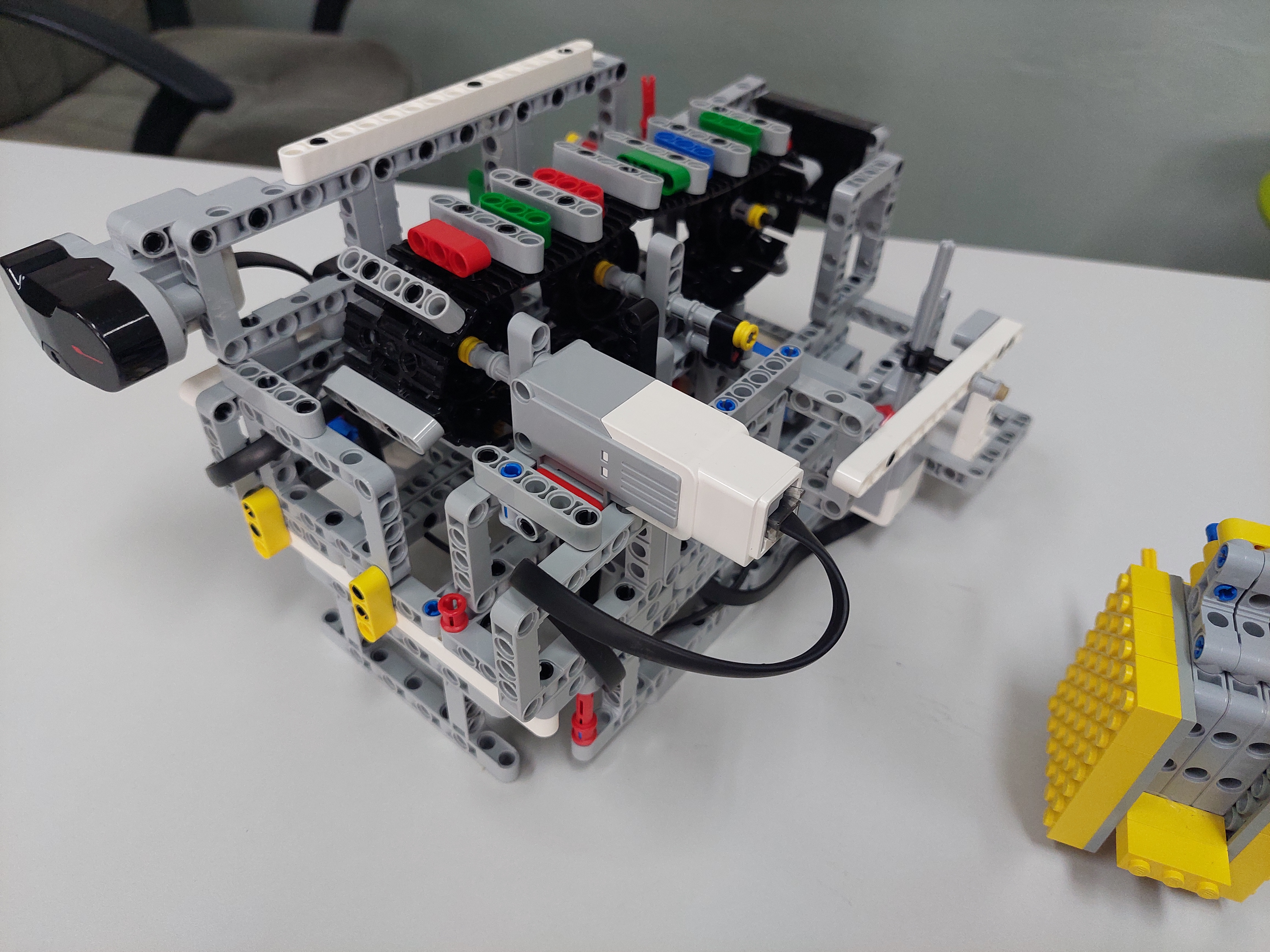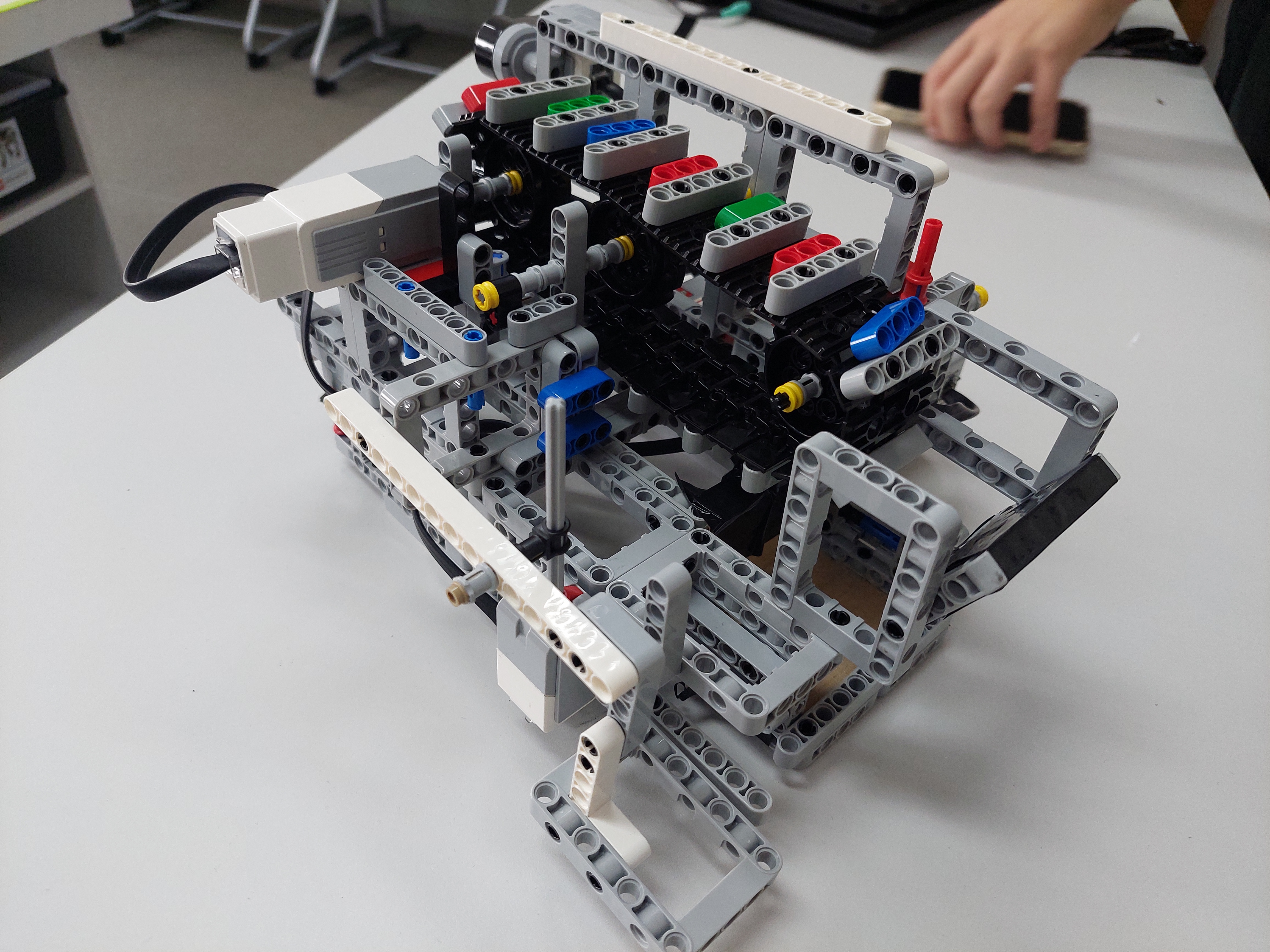 Čo sme vytvorili: Vytvorili sme robota ktorý je poháňaní motormi ktoré poháňajú piesty a vďaka tomu sa nakláňa plošina.