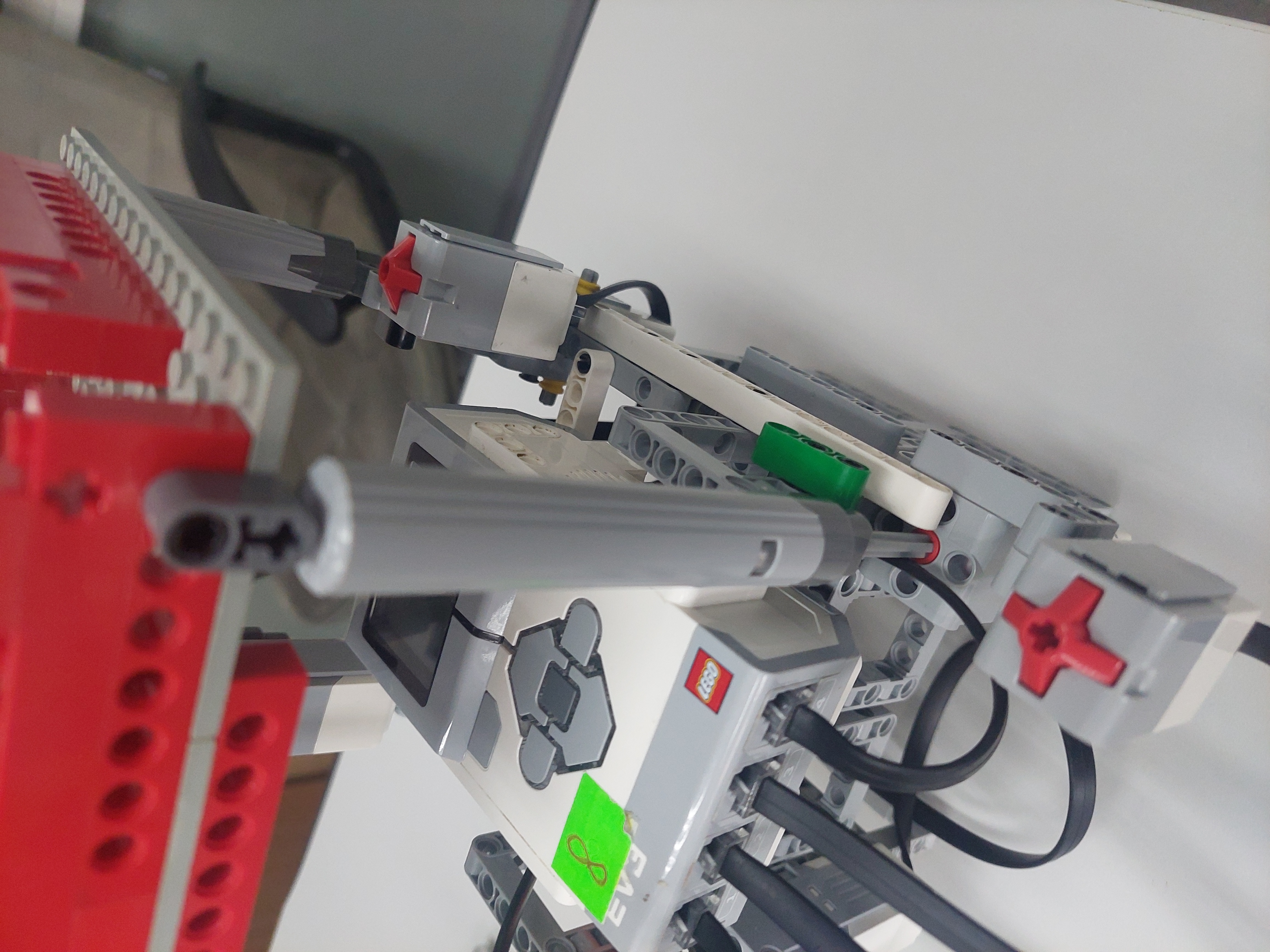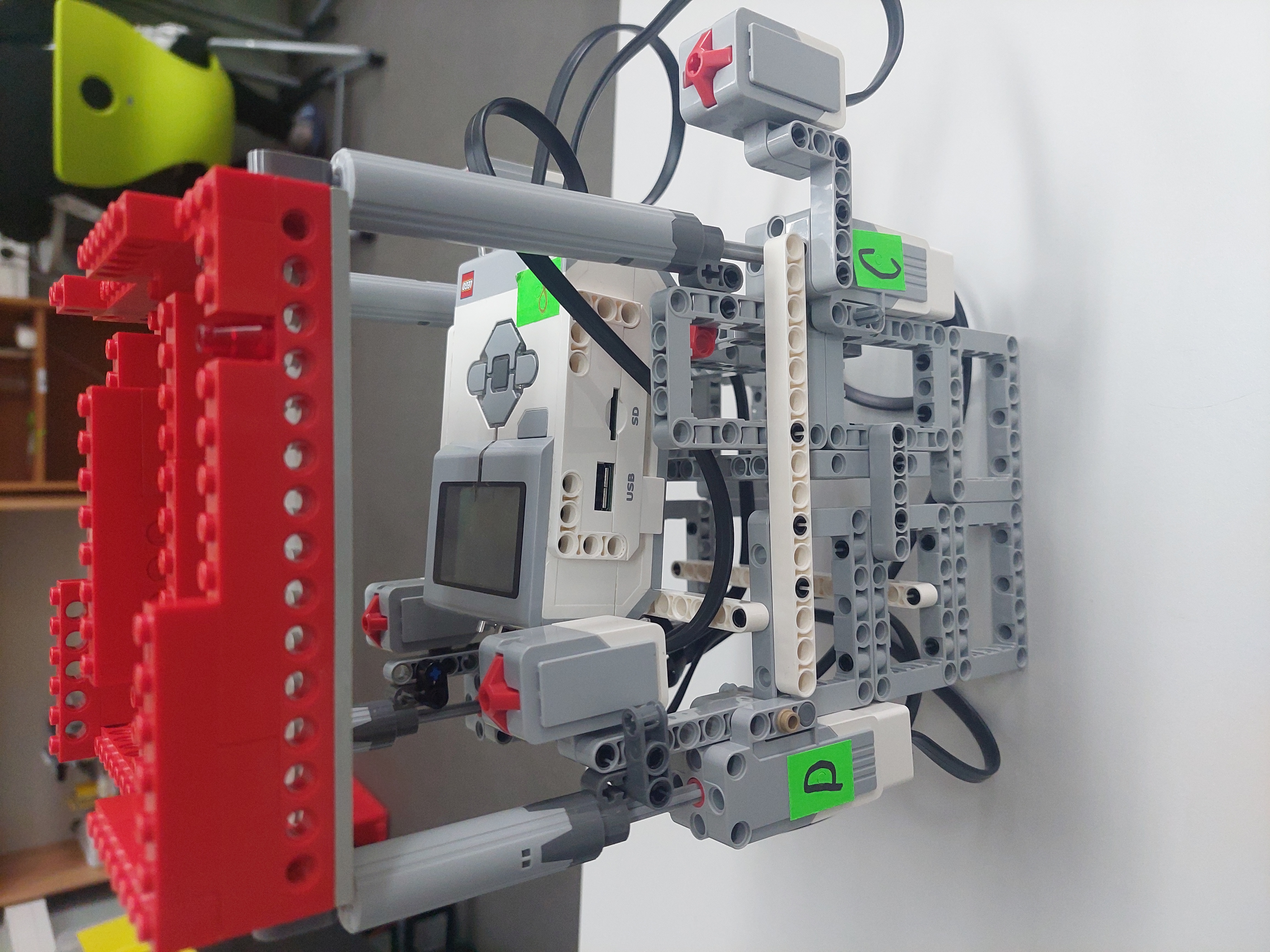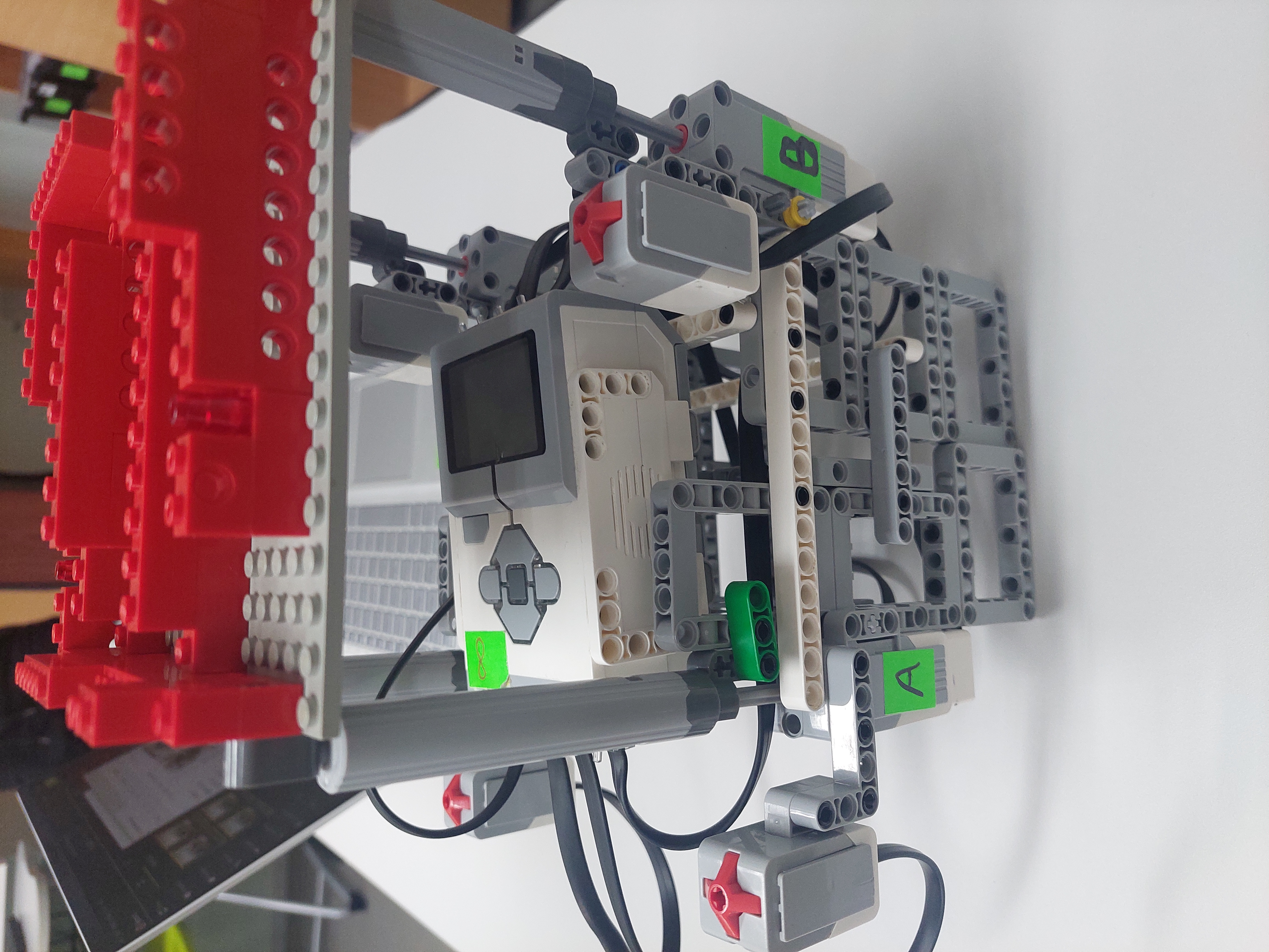 Popis robota: Náš robot slúži na prepravenie guličky z bludiska. Je poháňaný medium servo motormi ktoré poháňajú piesty ktoré keď sa vysunú tak naklonia plošinu.